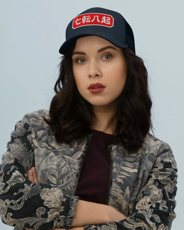 Fall Down Seven Times Stand Up Eight Japanese Embroidered Distressed Dad Hat
