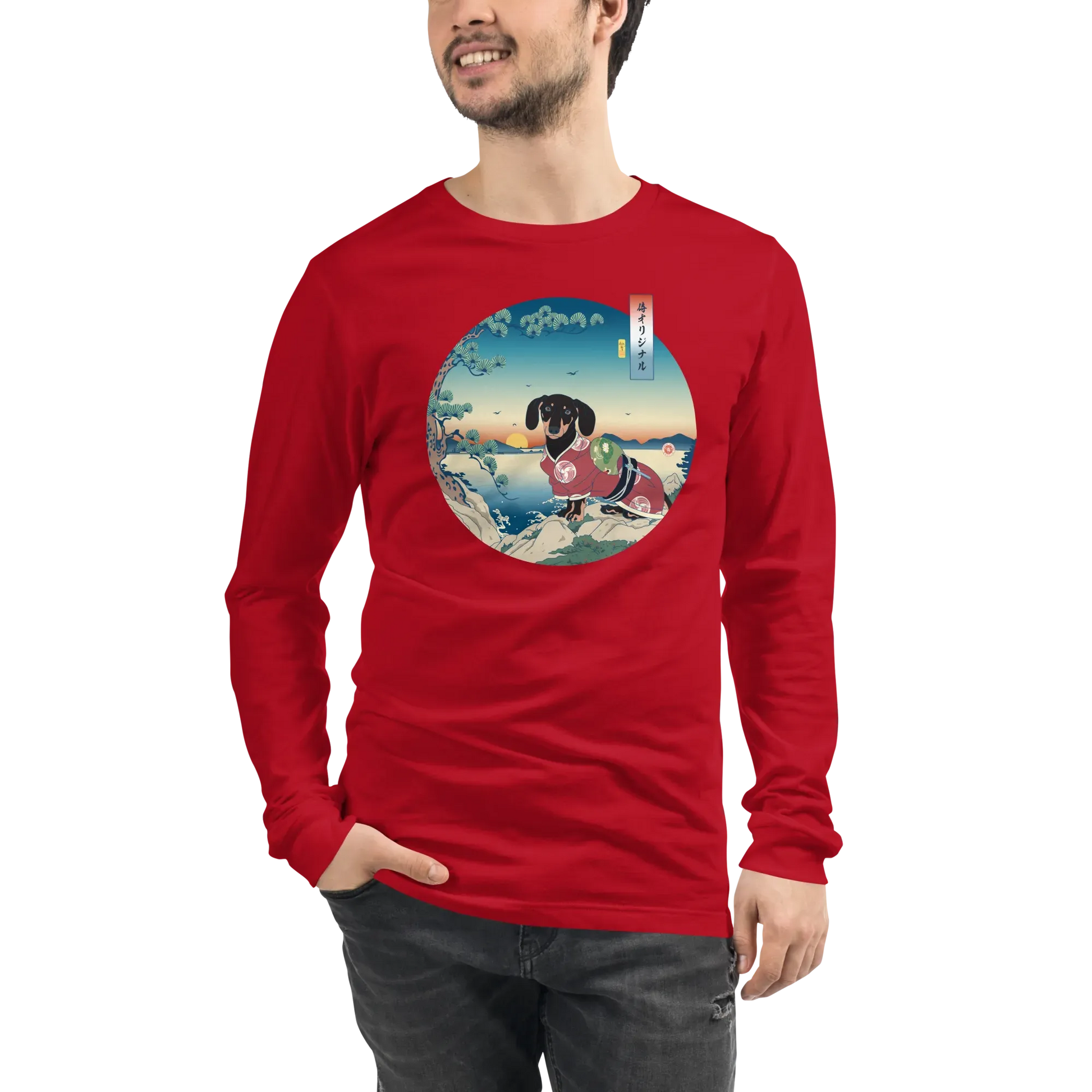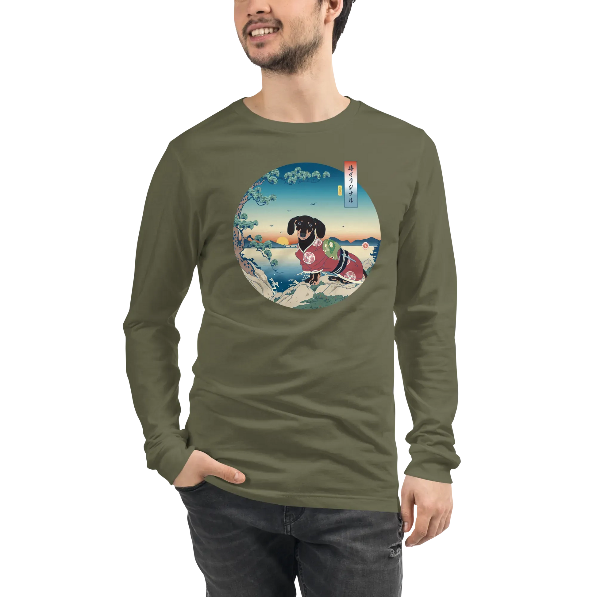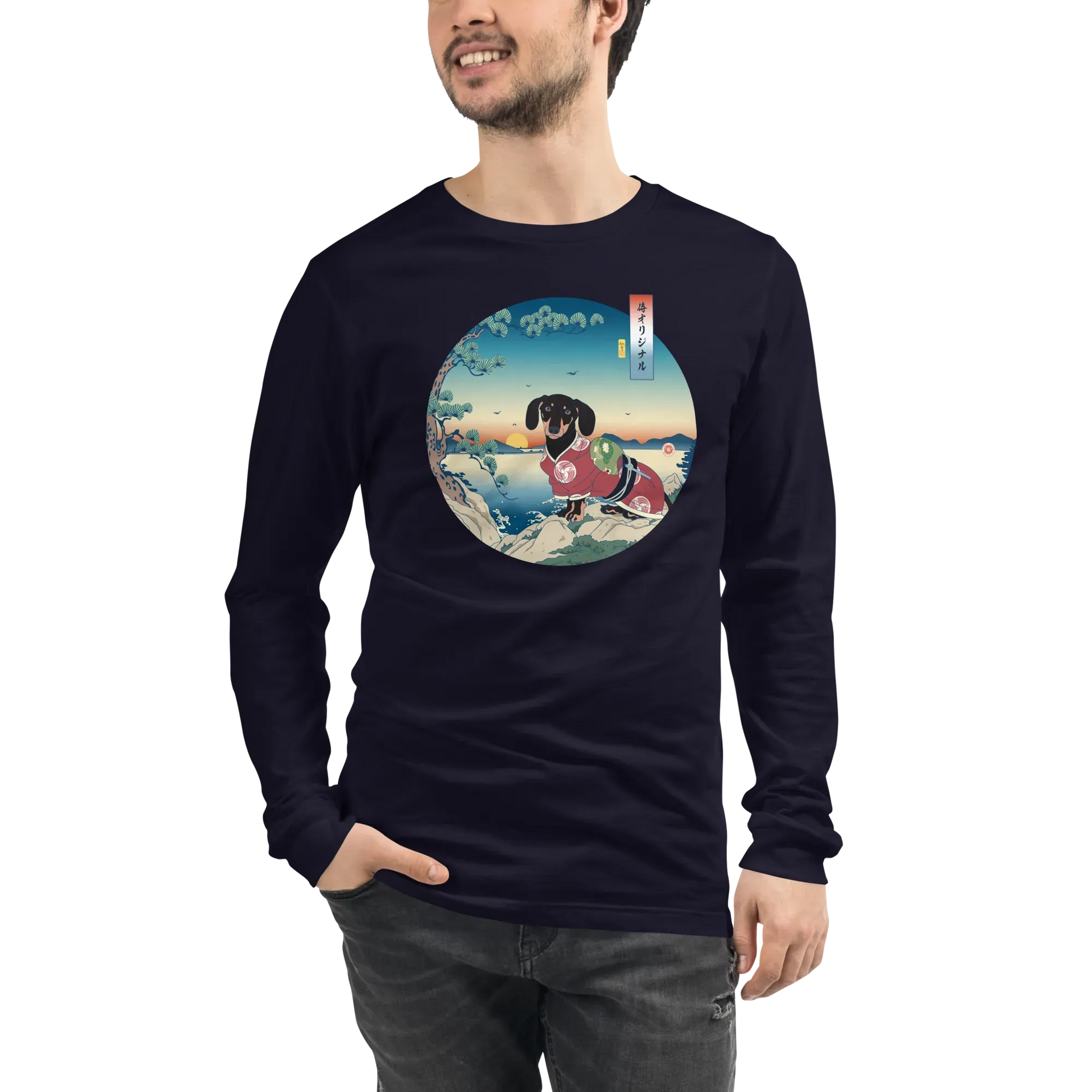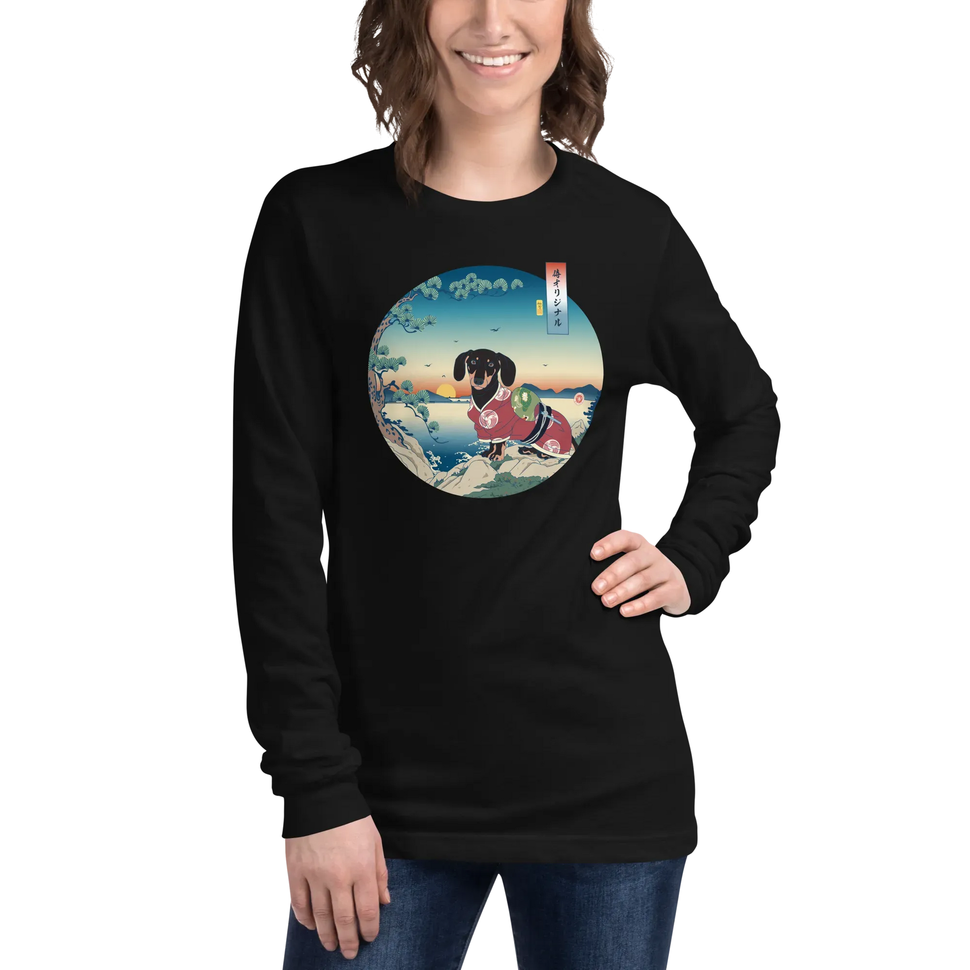 Dachshund Dog Funny Japanese Ukiyo-e Unisex Long Sleeve Tee