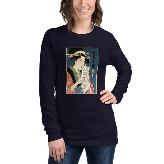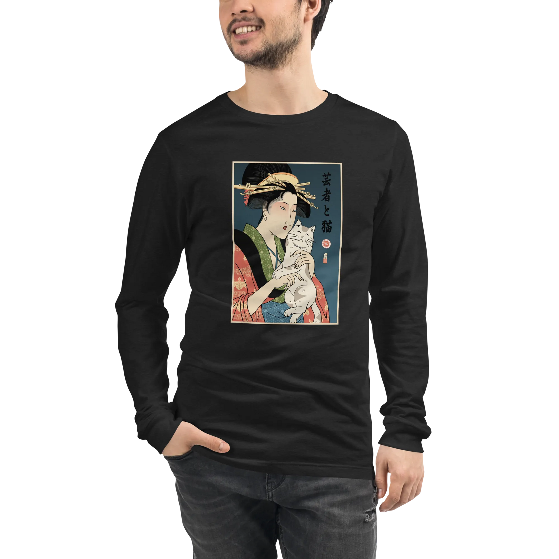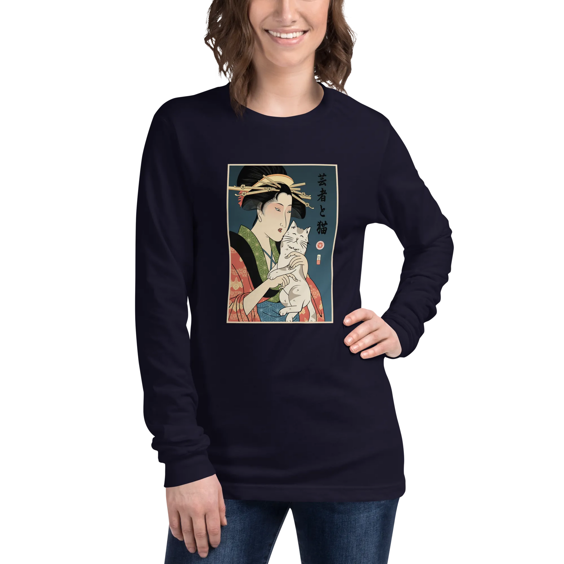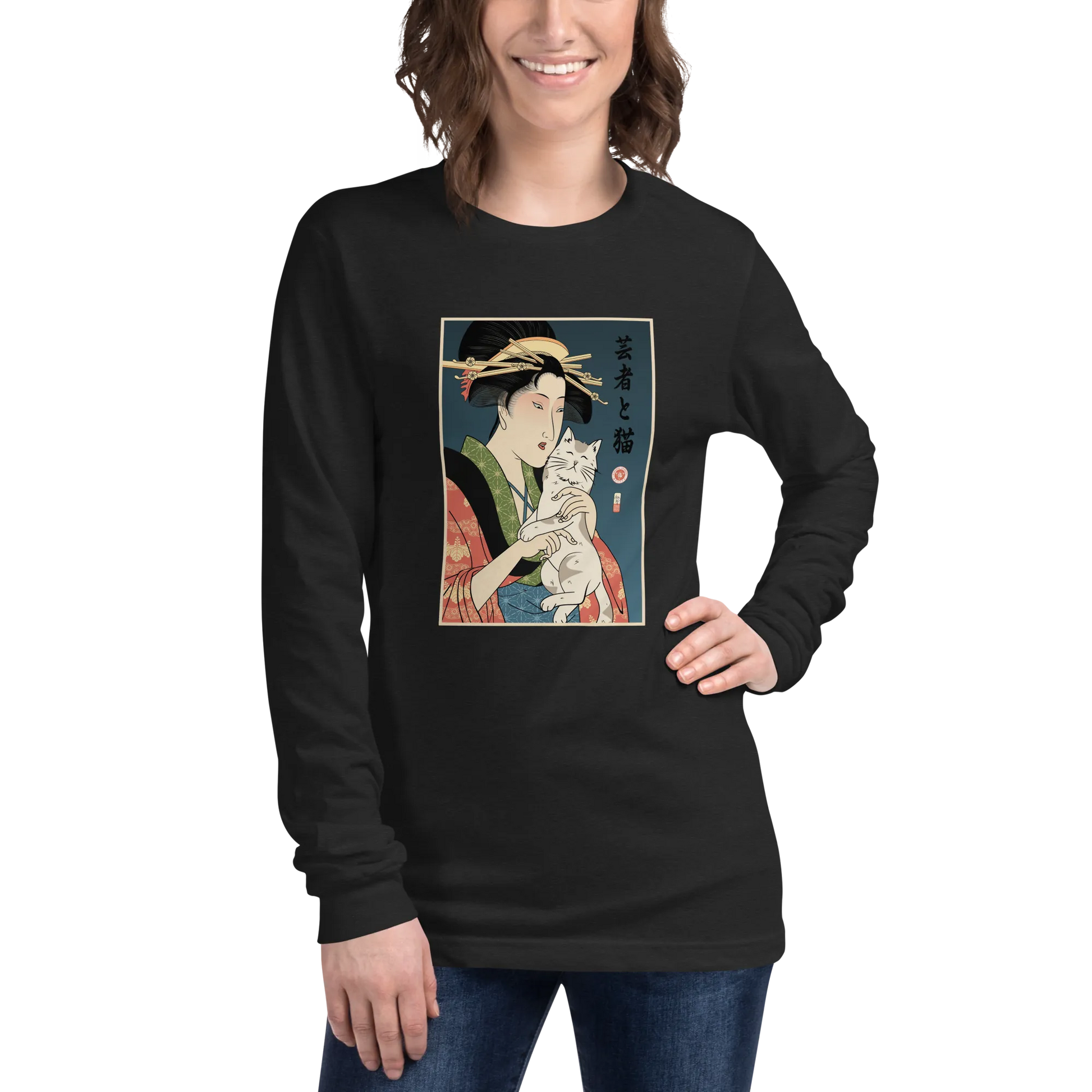 Geisha and Cat 1 Ukiyo-e Unisex Long Sleeve Tee