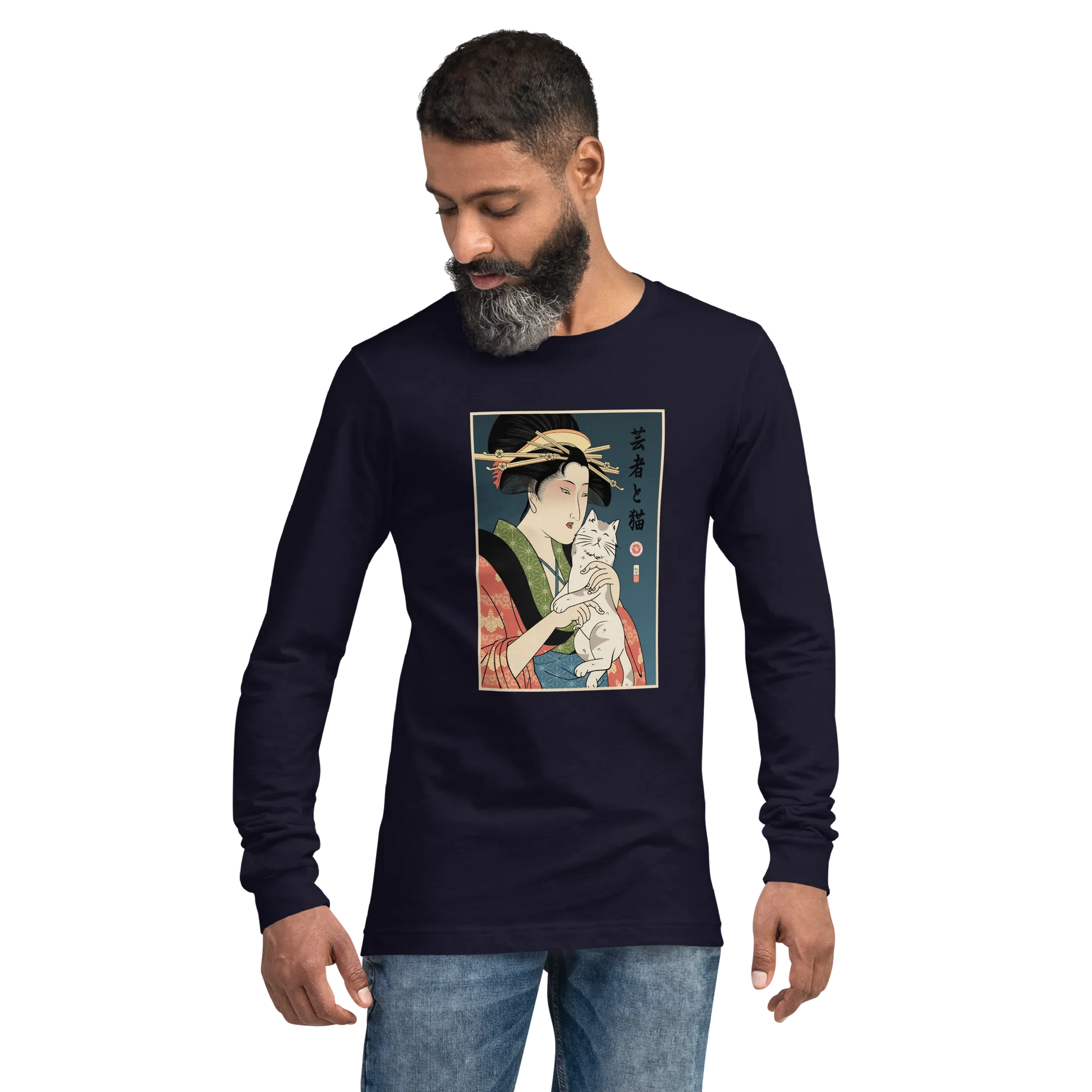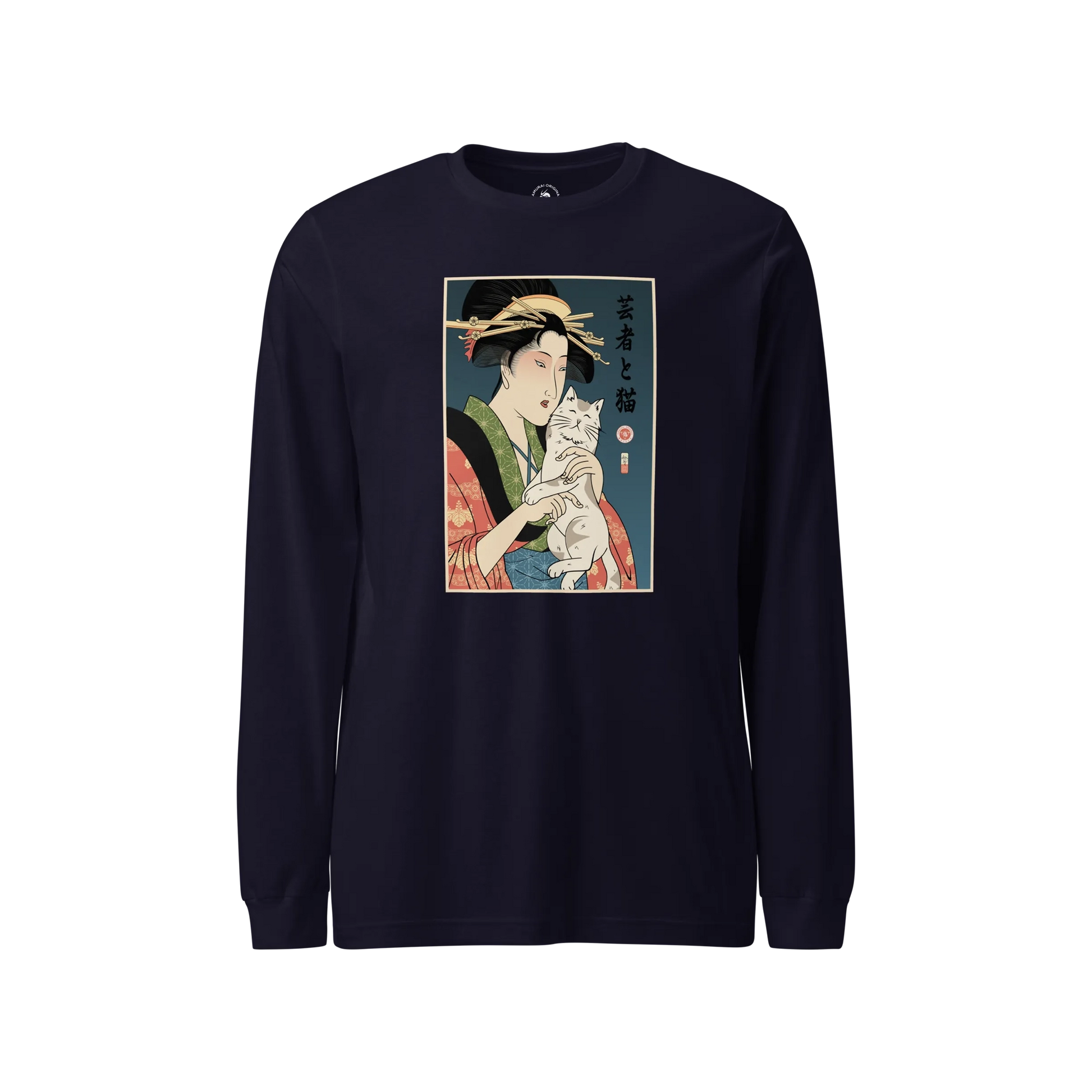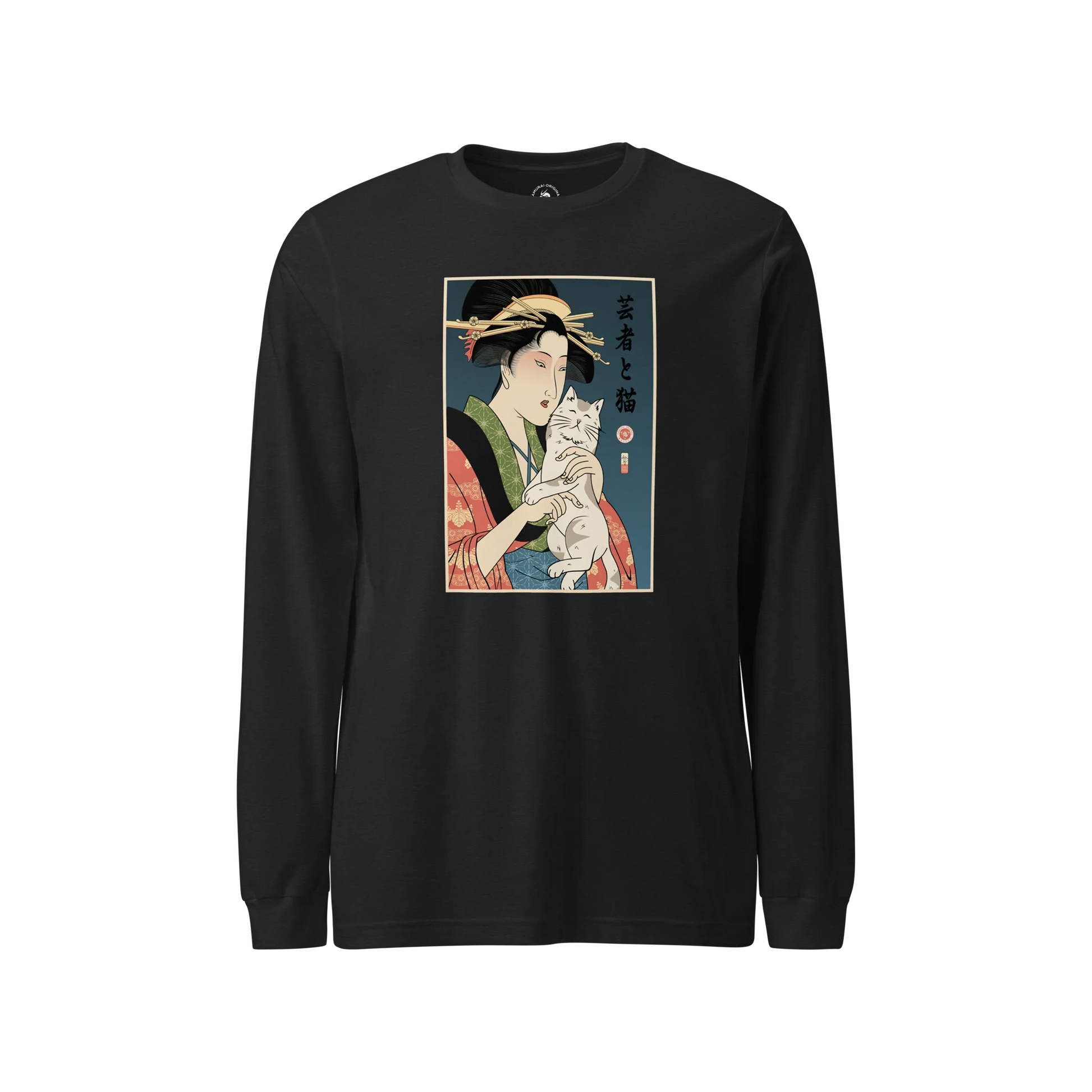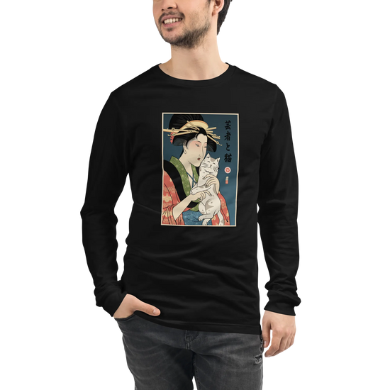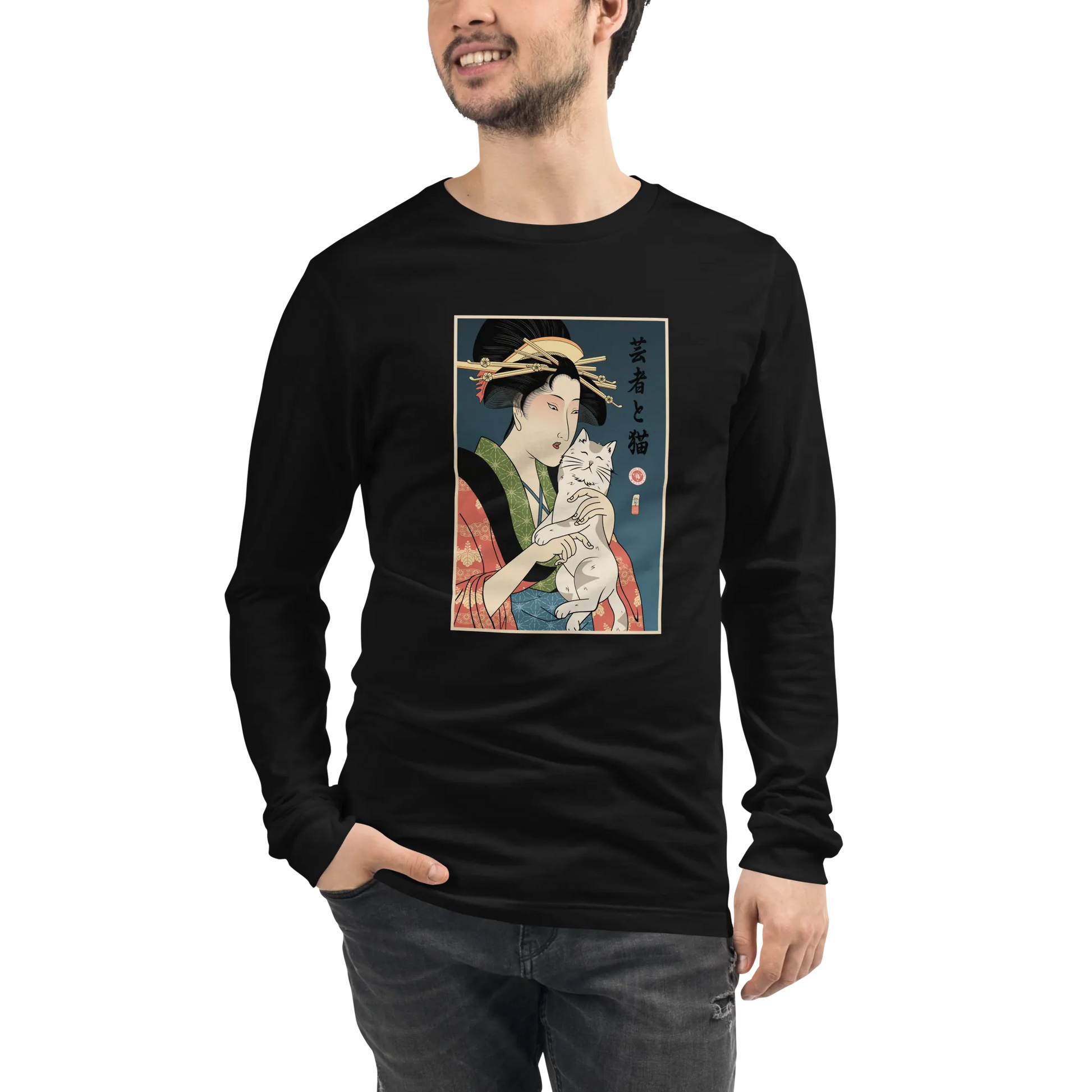 Geisha and Cat 1 Ukiyo-e Unisex Long Sleeve Tee