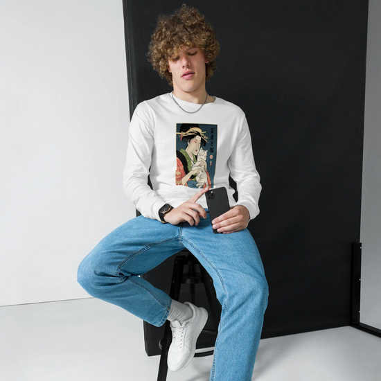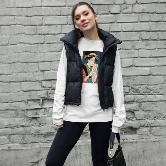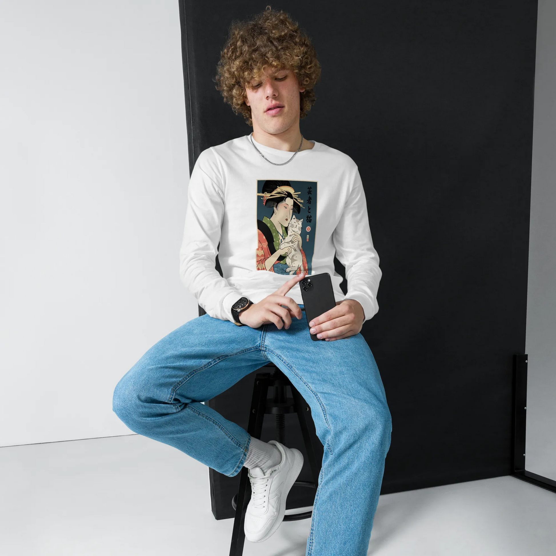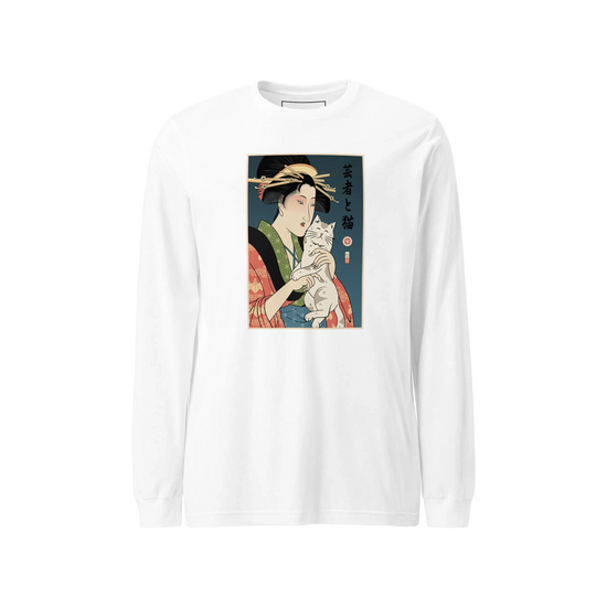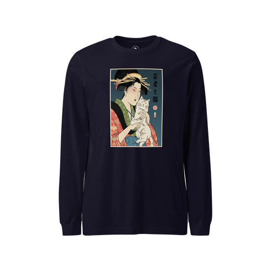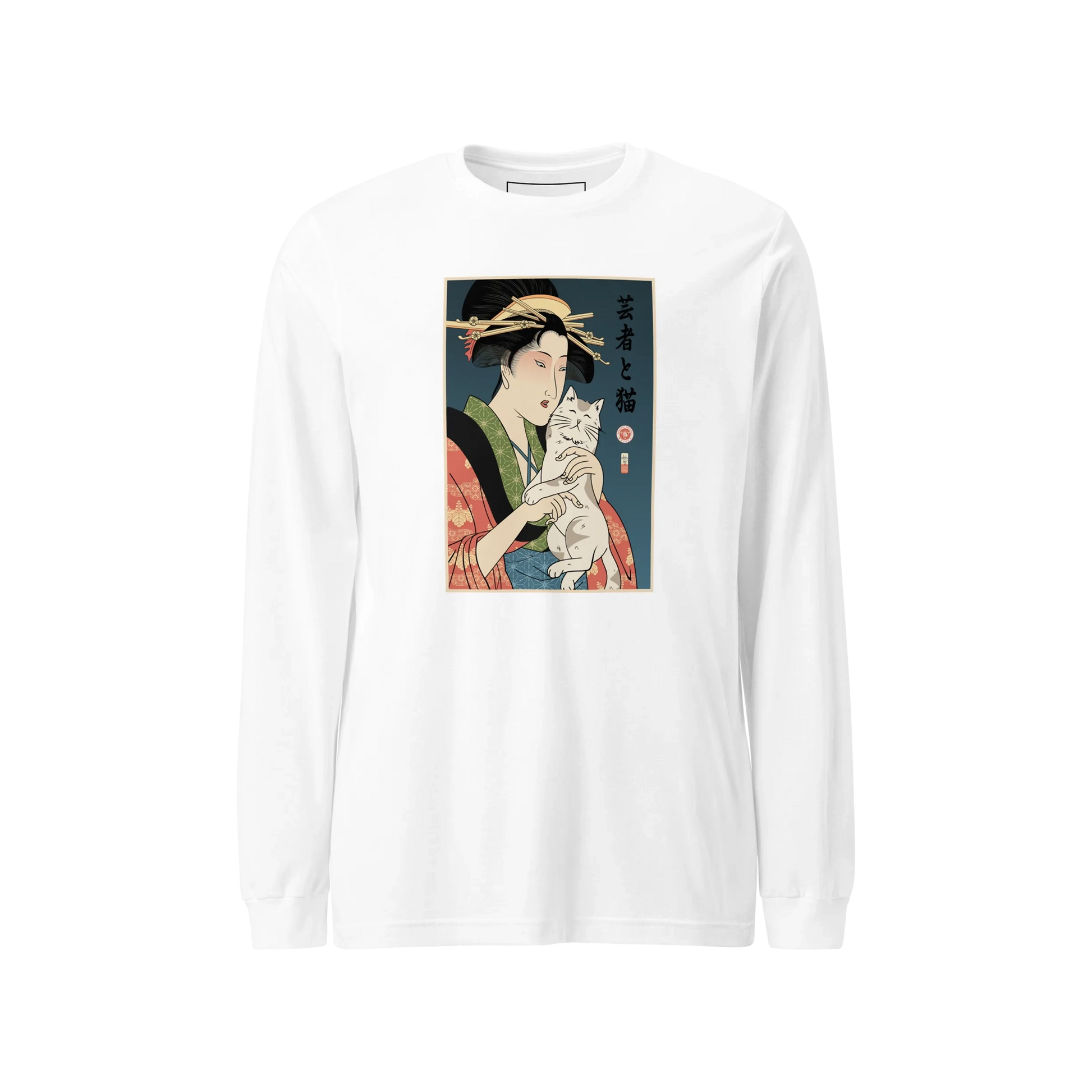 Geisha and Cat 1 Ukiyo-e Unisex Long Sleeve Tee