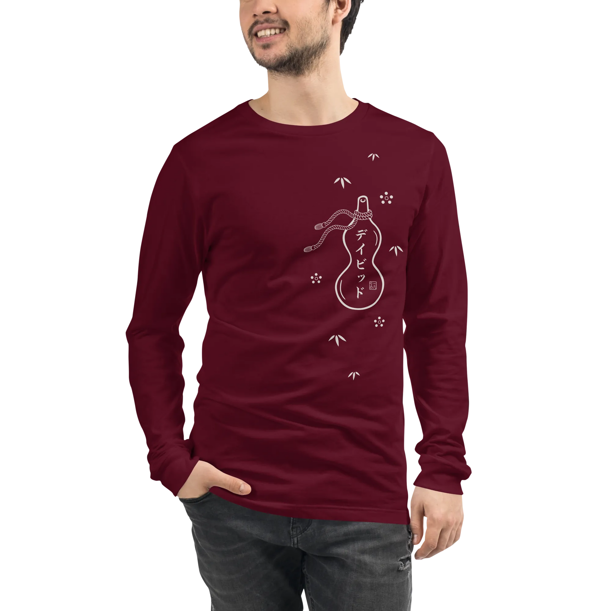 Japanese Custom Name Lucky Gourd Crest Unisex Long Sleeve Tee