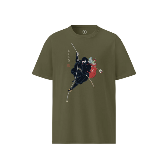Ninja Santa Christmas Japanese Ukiyo-e Unisex Organic T-shirt