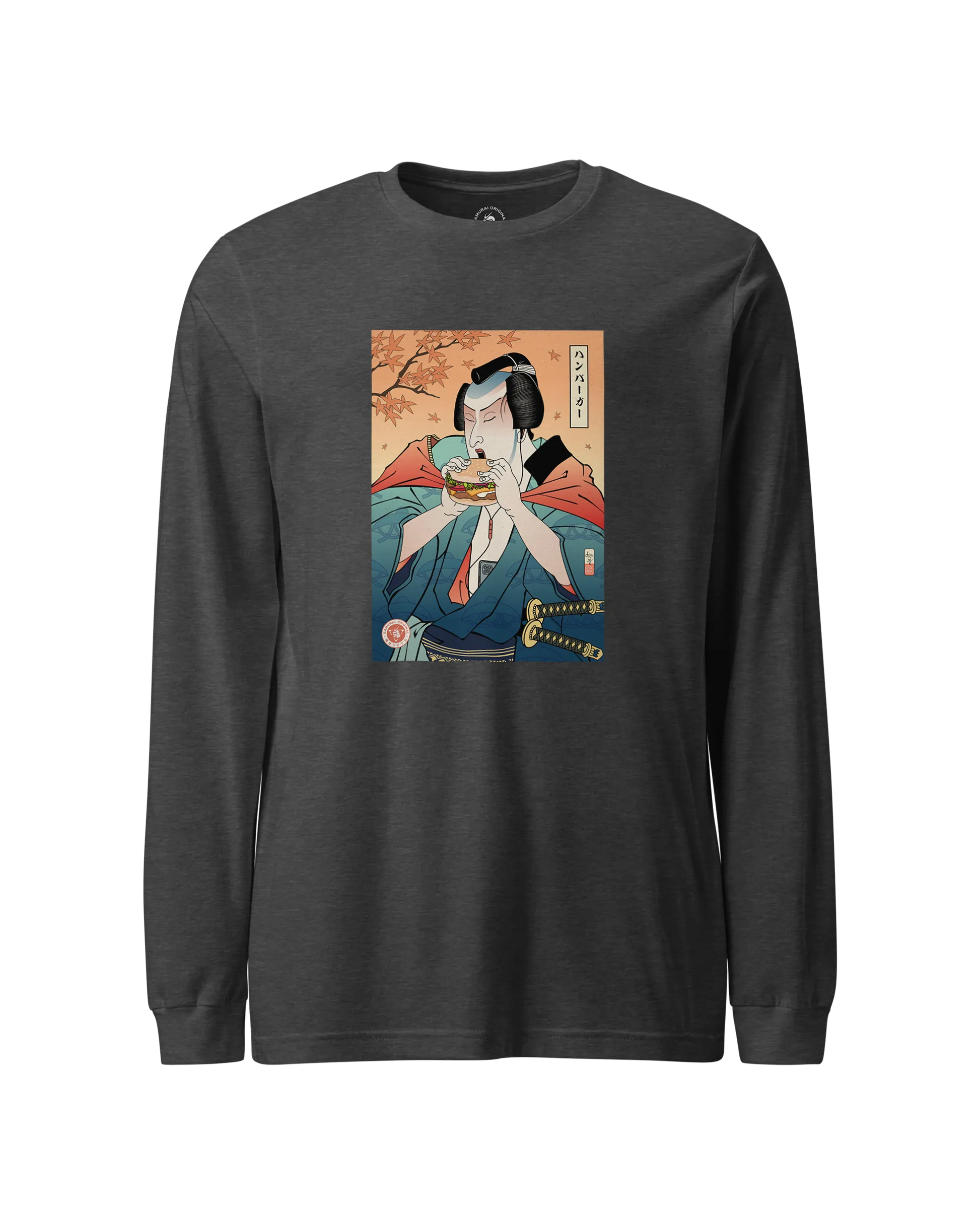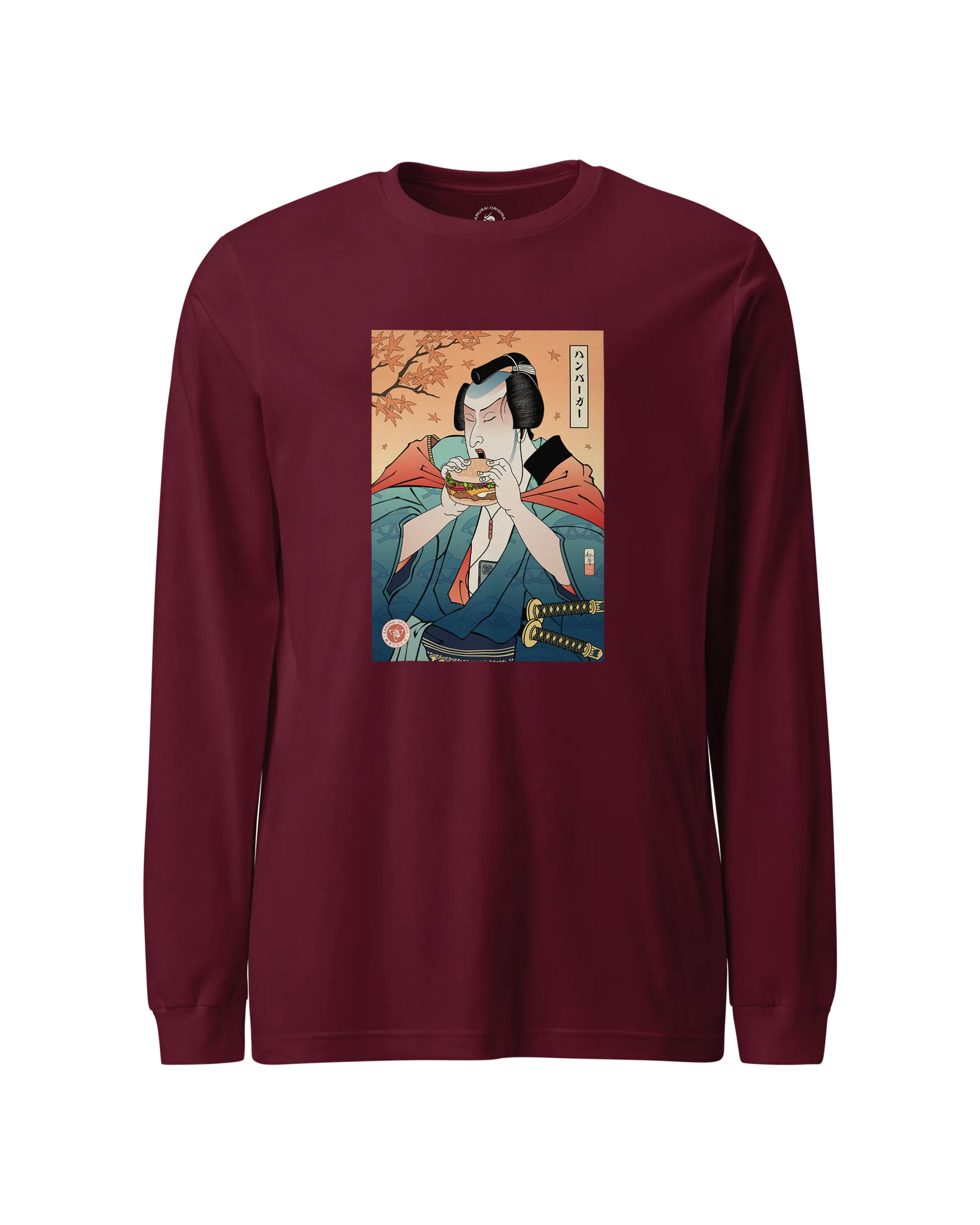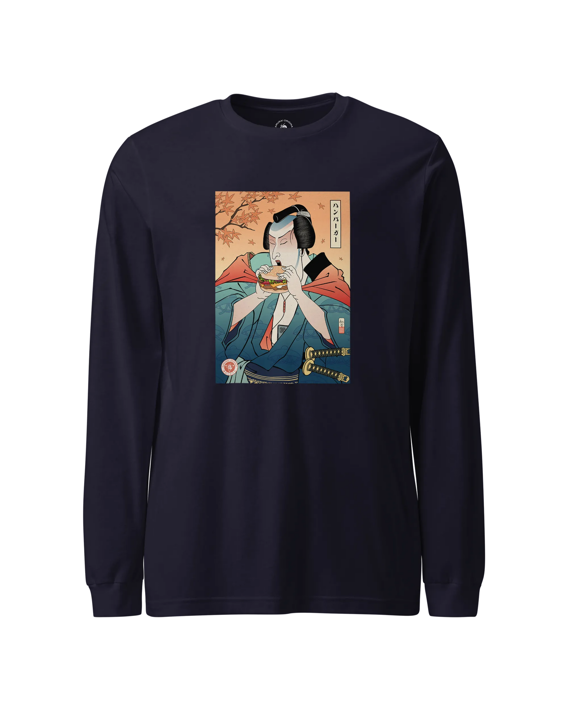 Samurai & Burger Fast Food Japanese Ukiyo-e Unisex Long Sleeve Tee