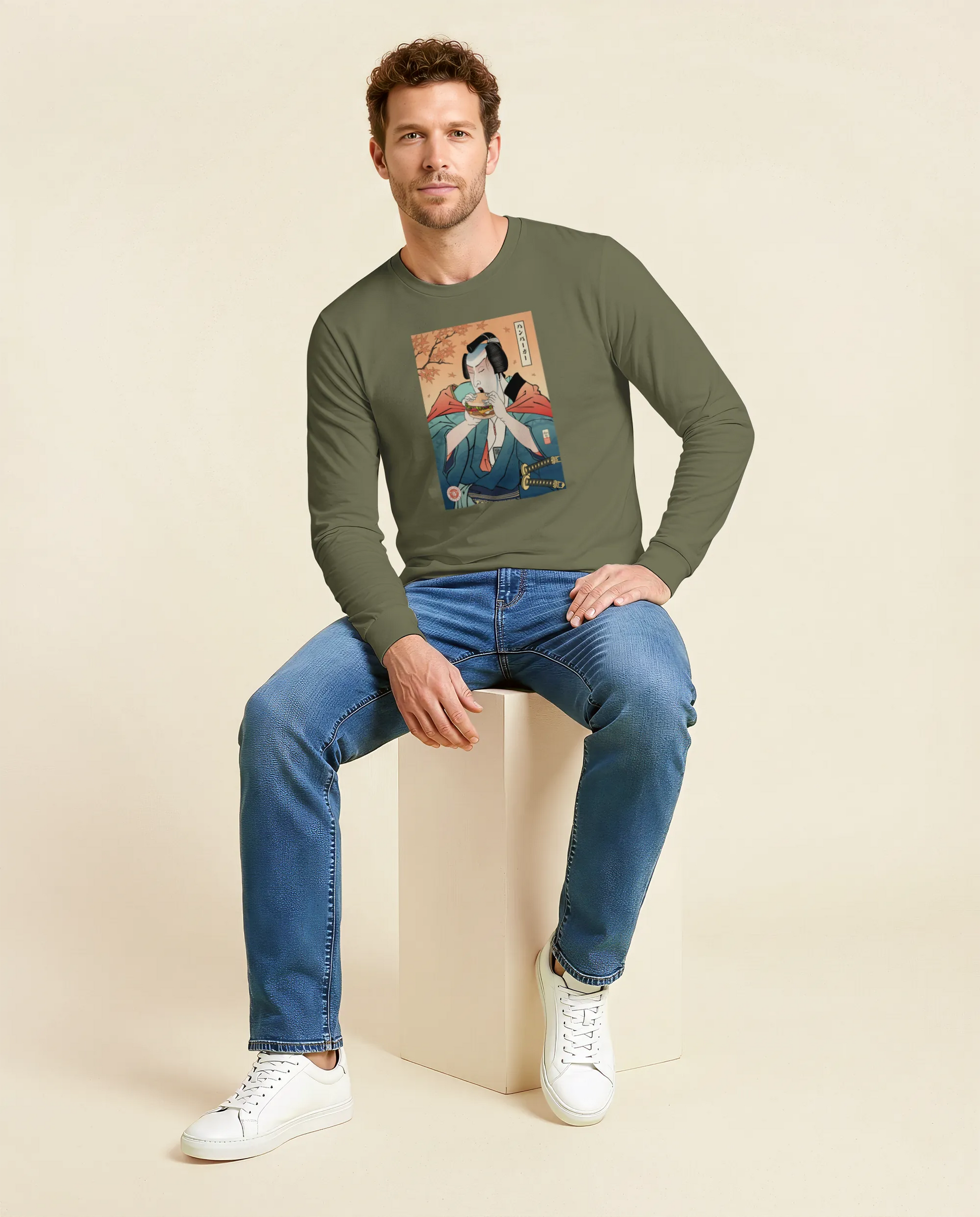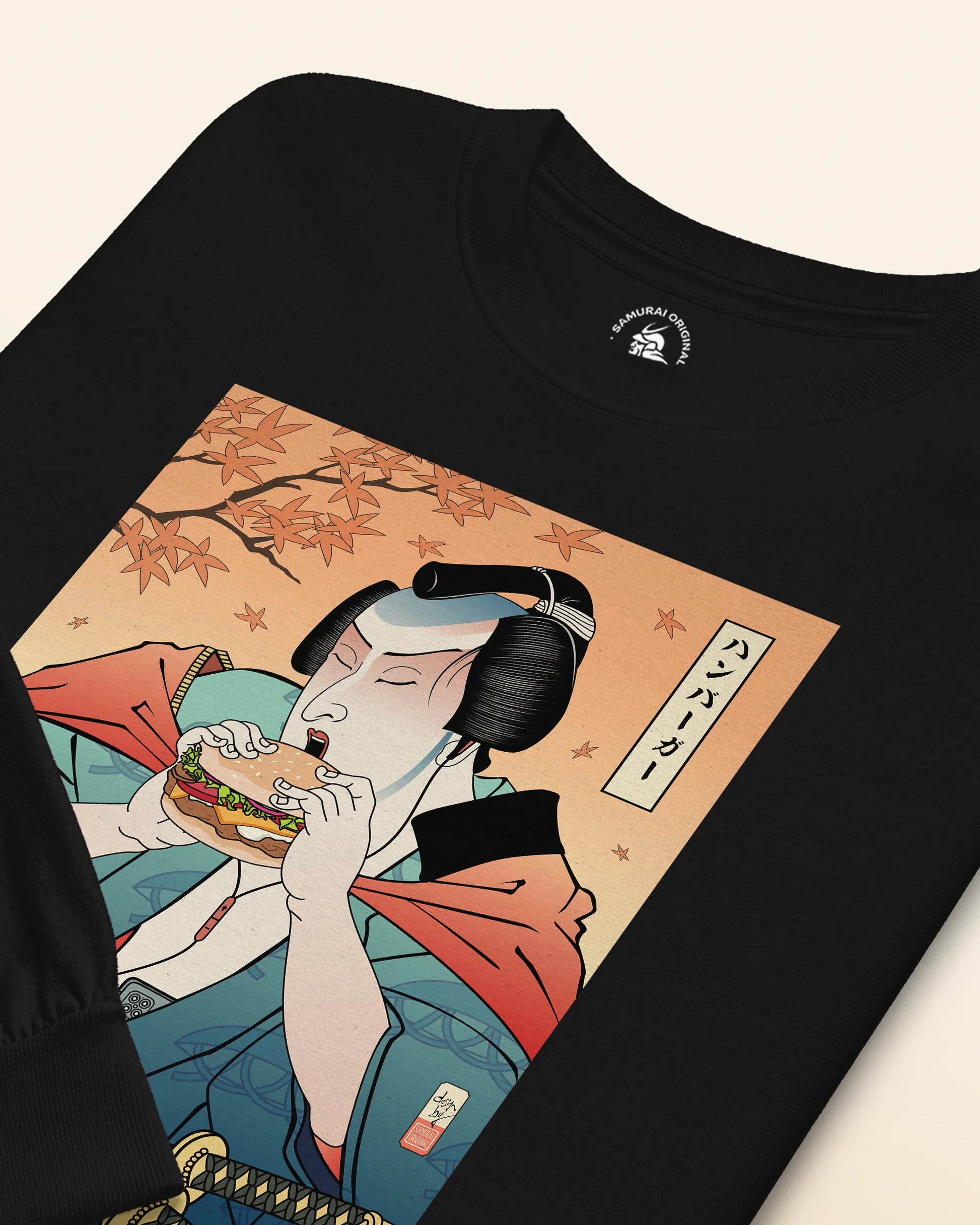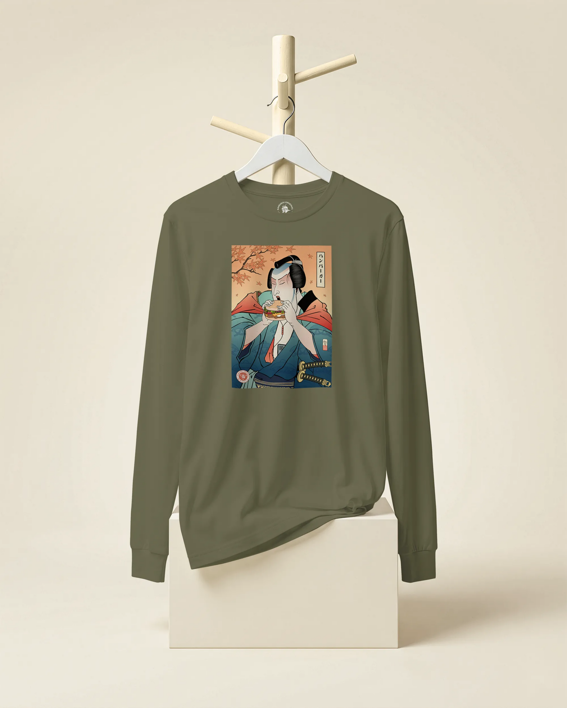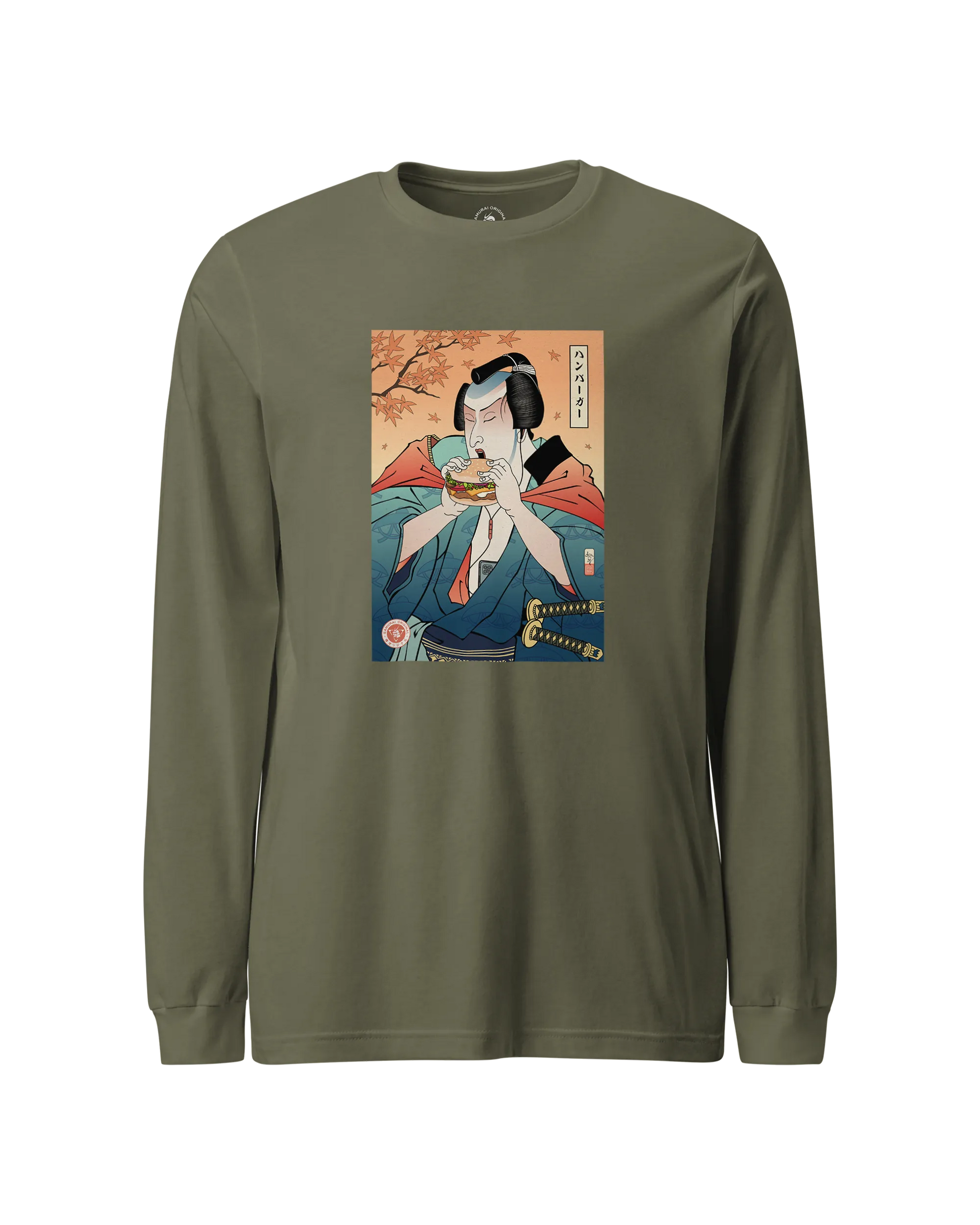 Samurai & Burger Fast Food Japanese Ukiyo-e Unisex Long Sleeve Tee
