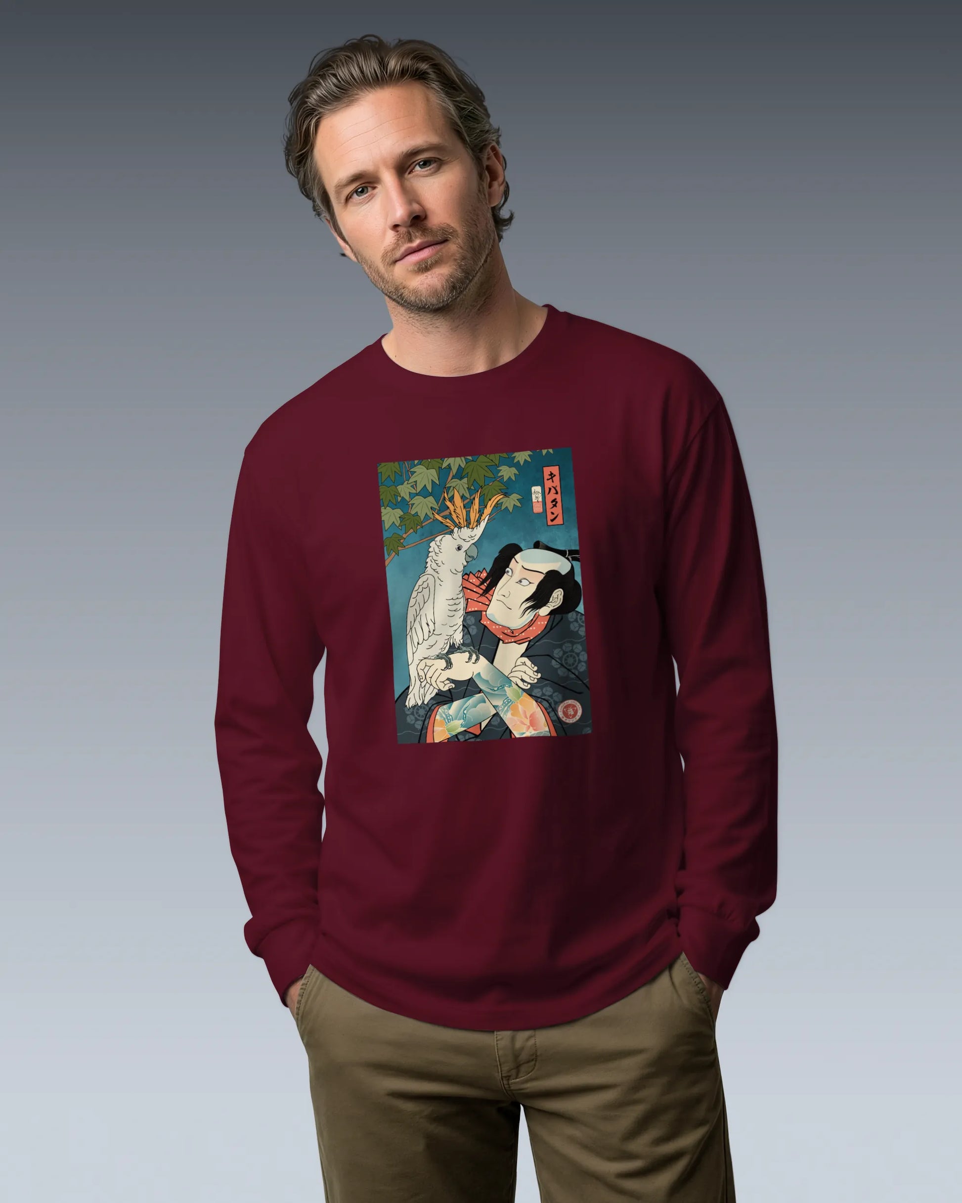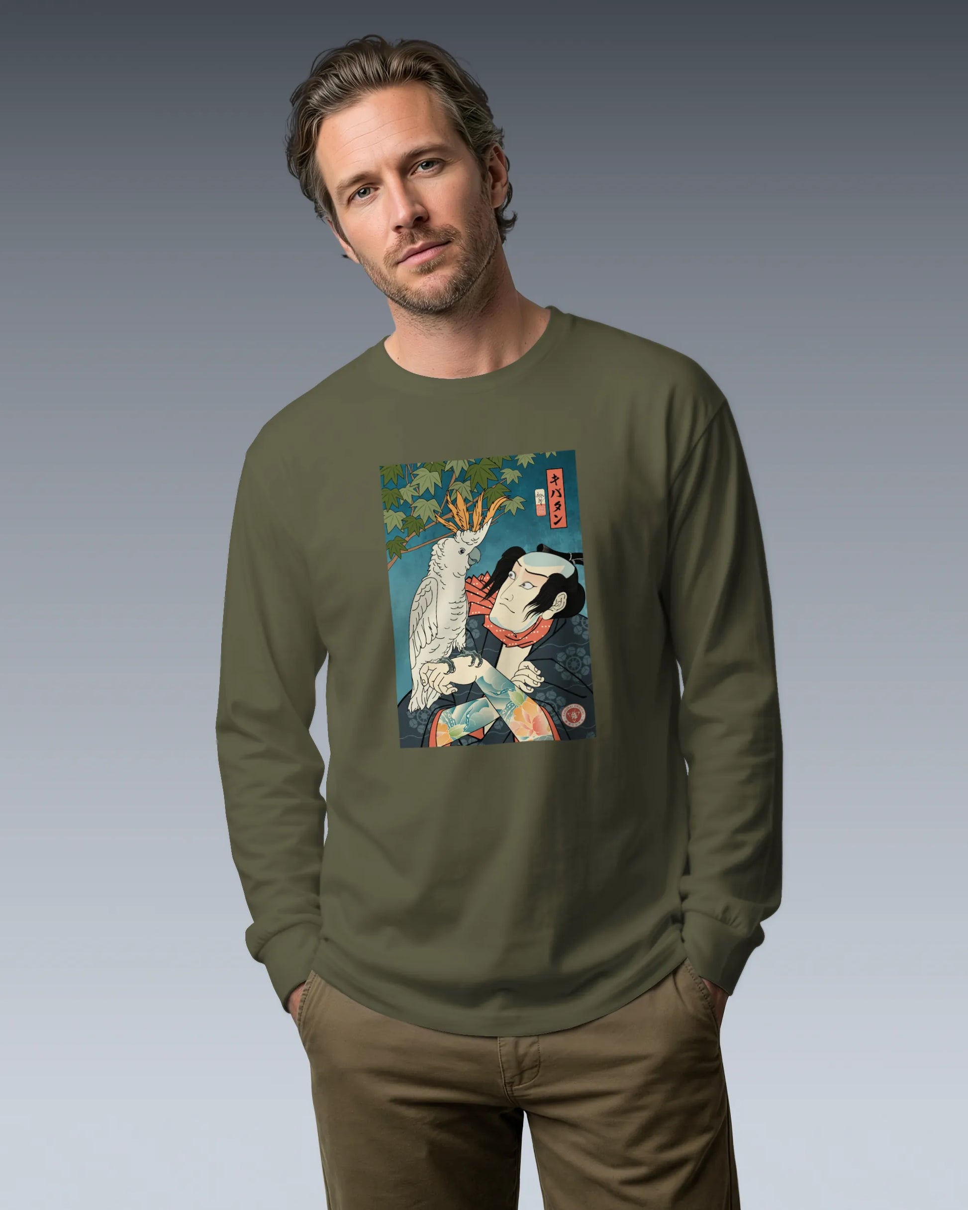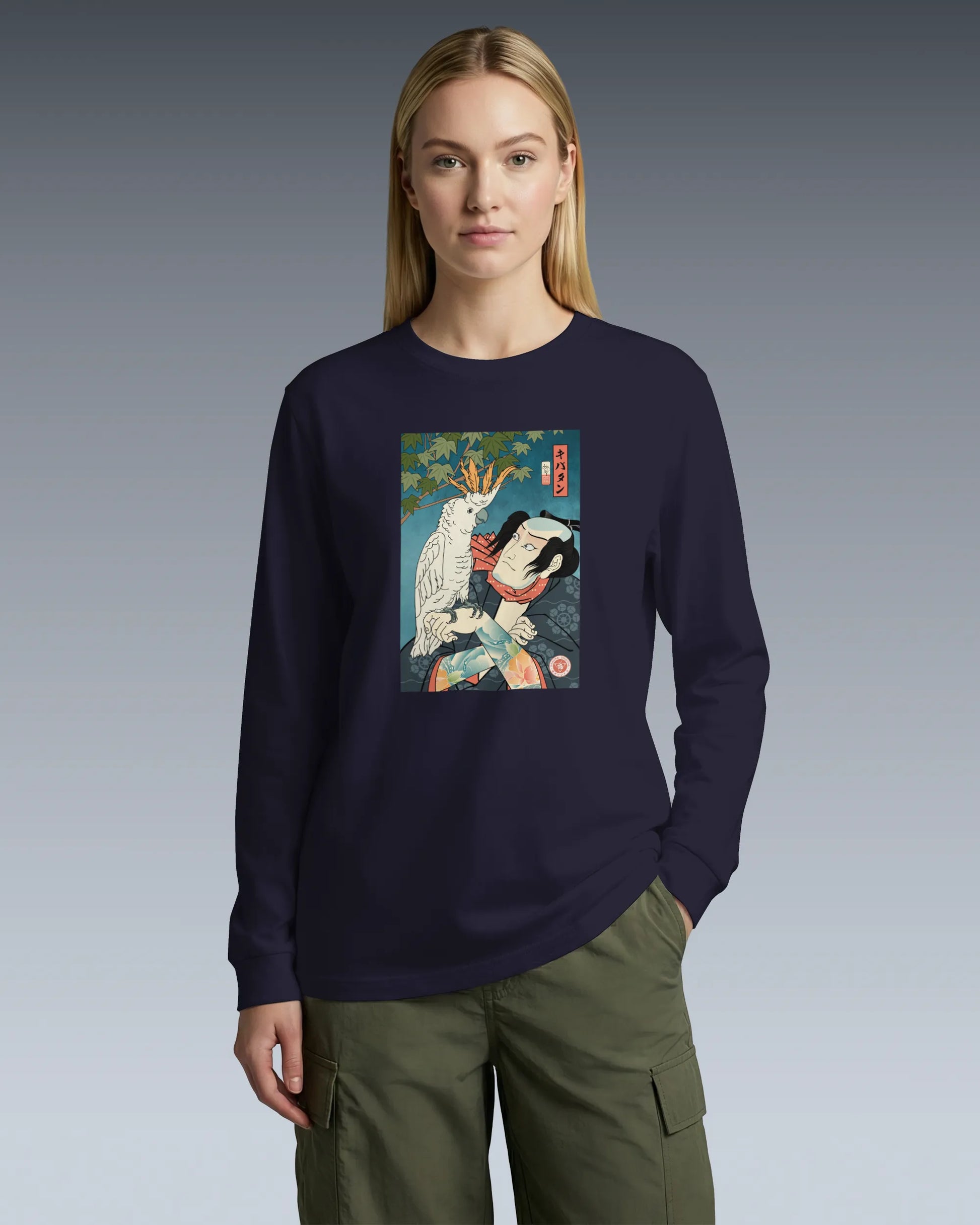 Samurai & Cockatoo Ukiyo-e Unisex Long Sleeve Tee