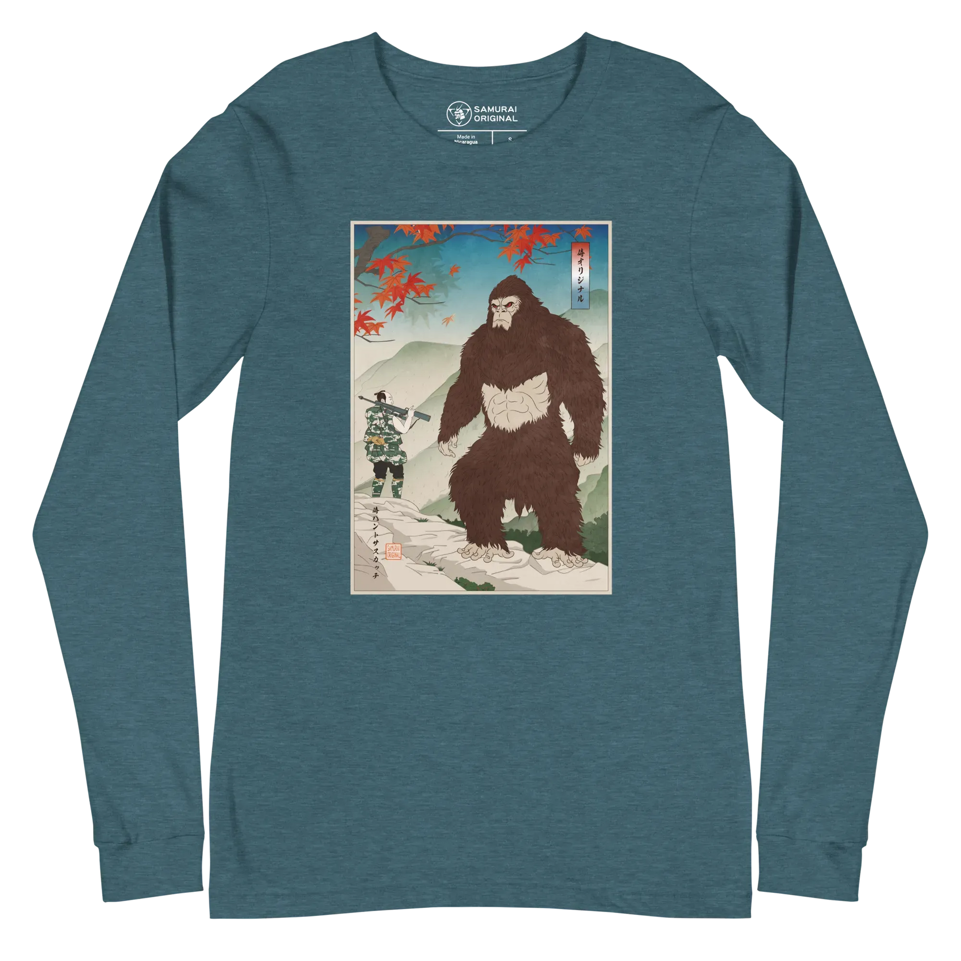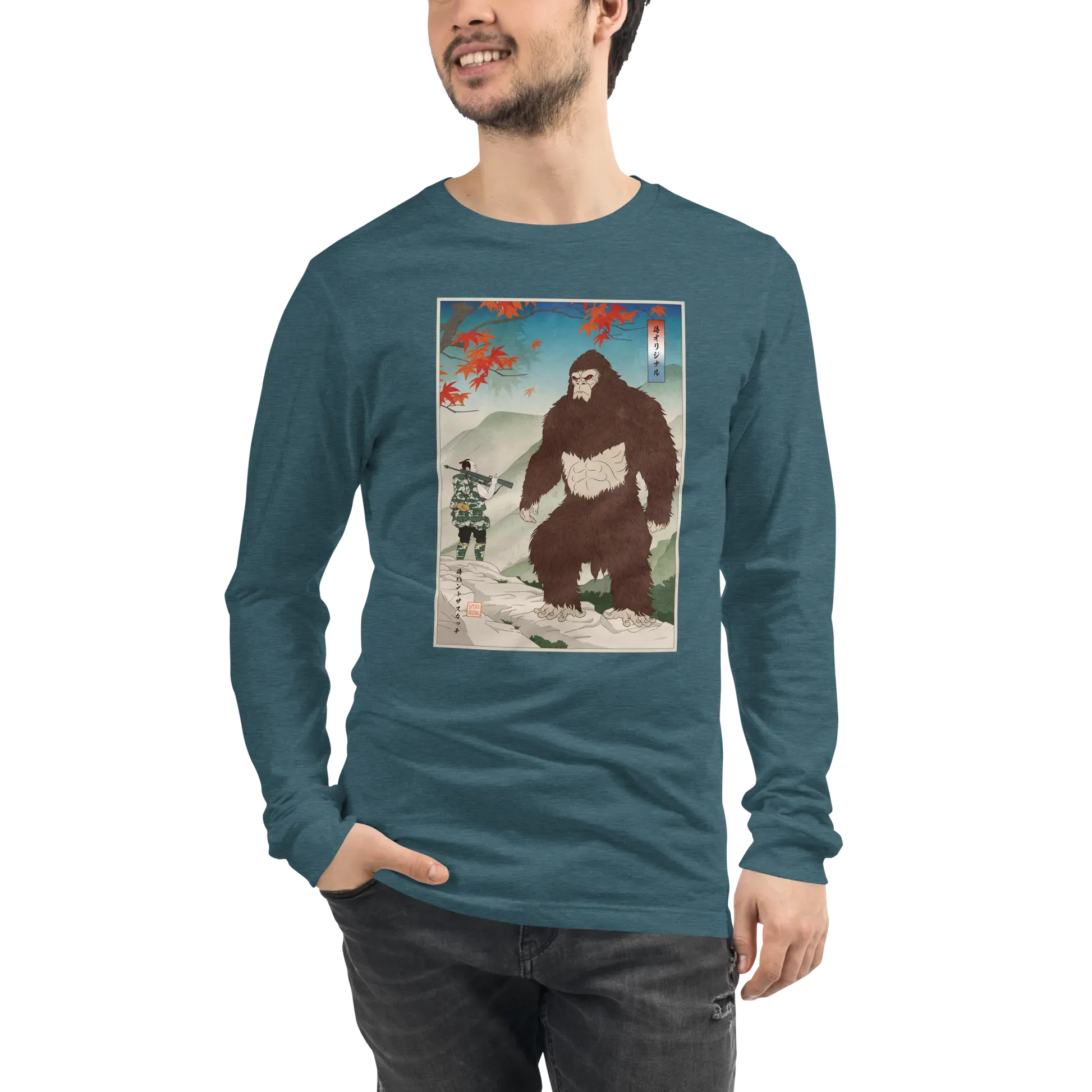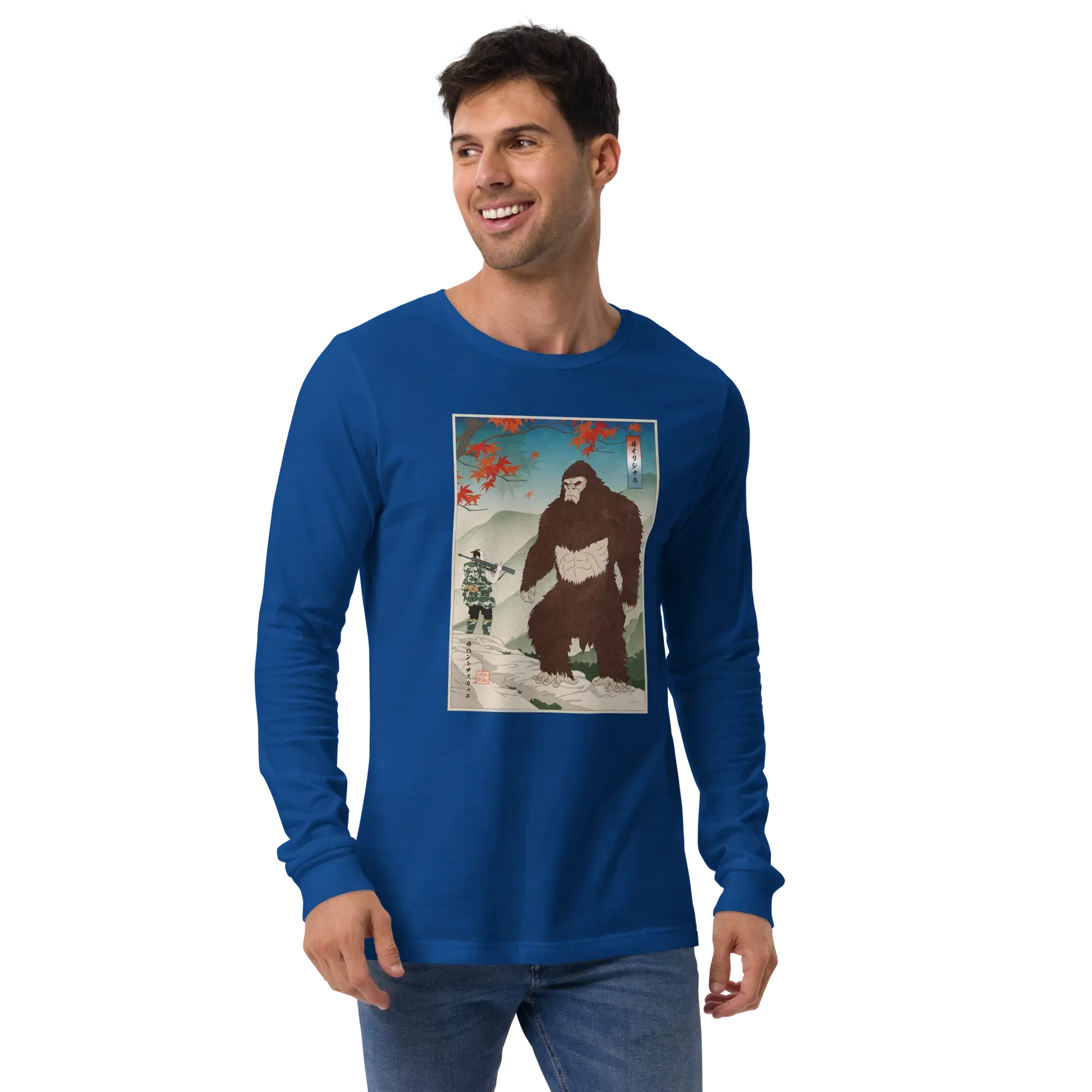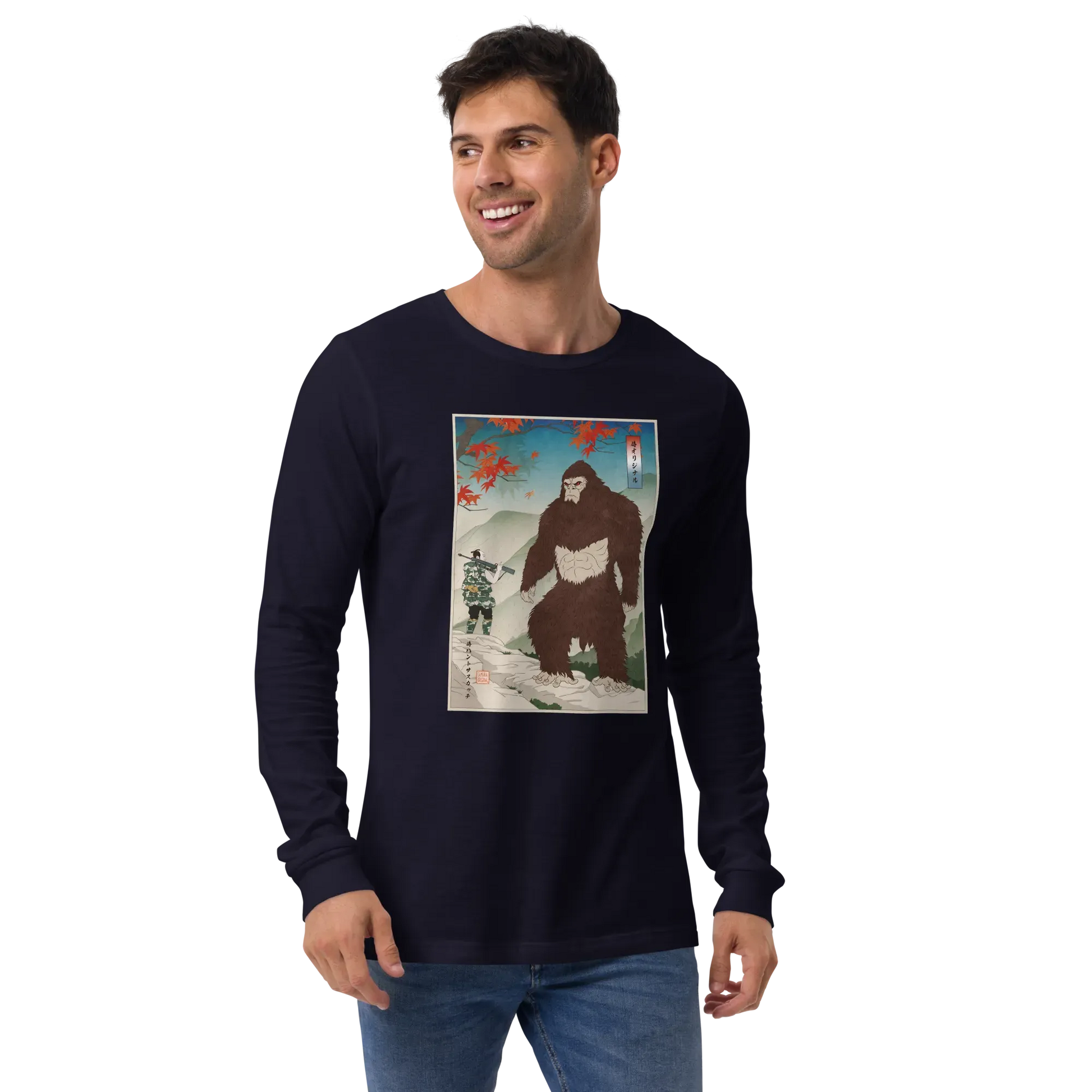 Samurai Hunts Sasquatch Japanese Ukiyo-e Unisex Long Sleeve Tee