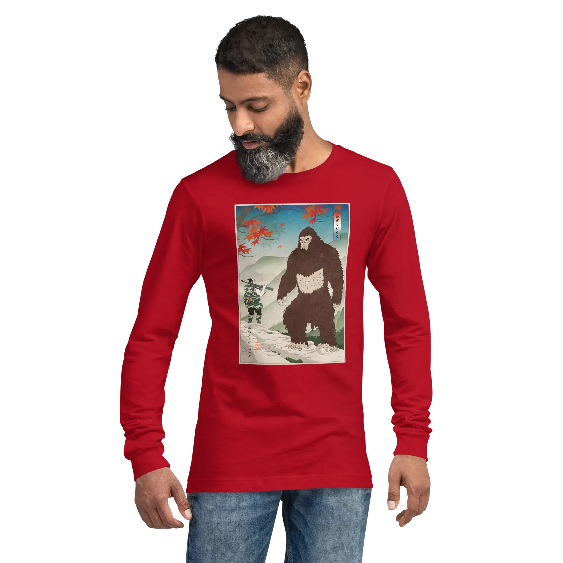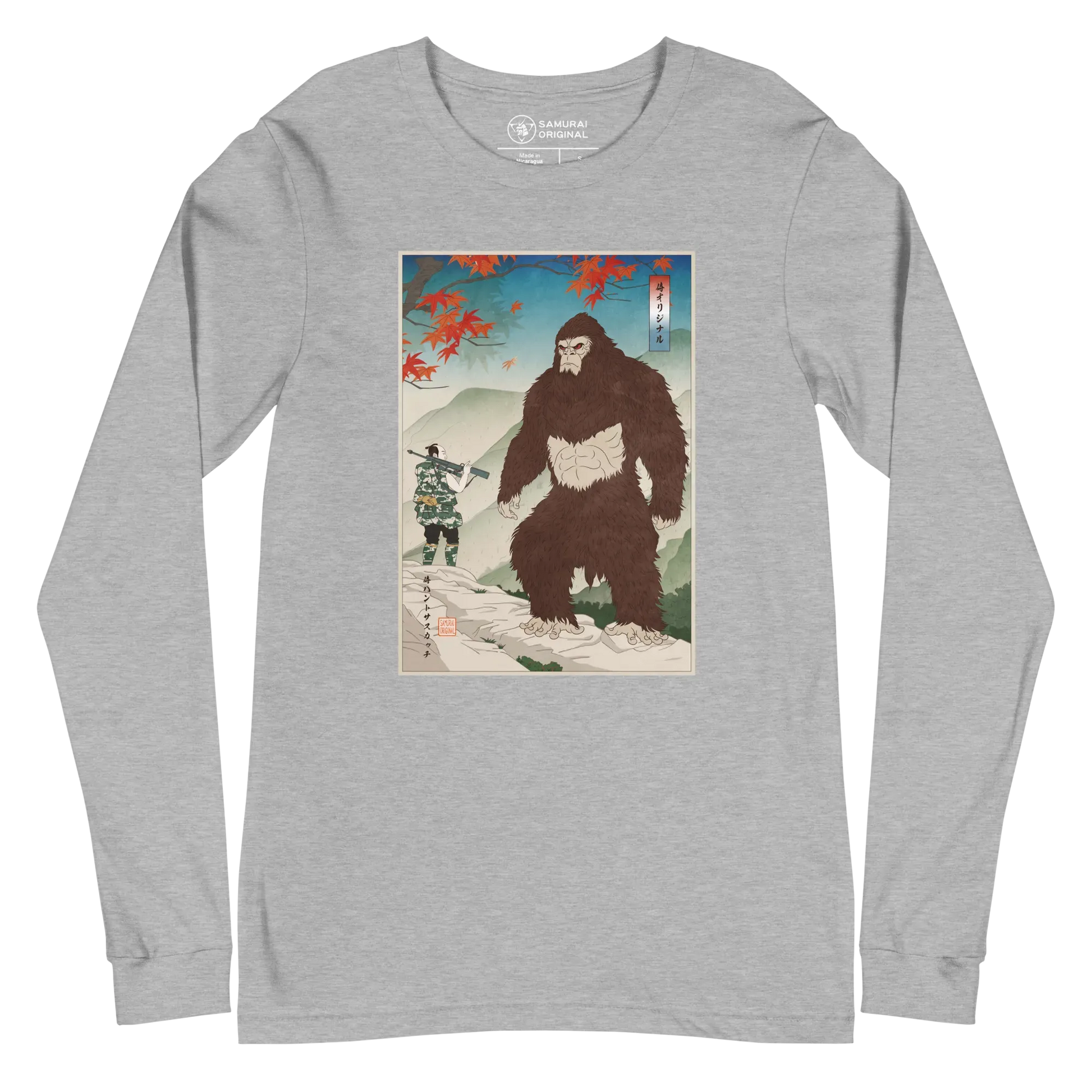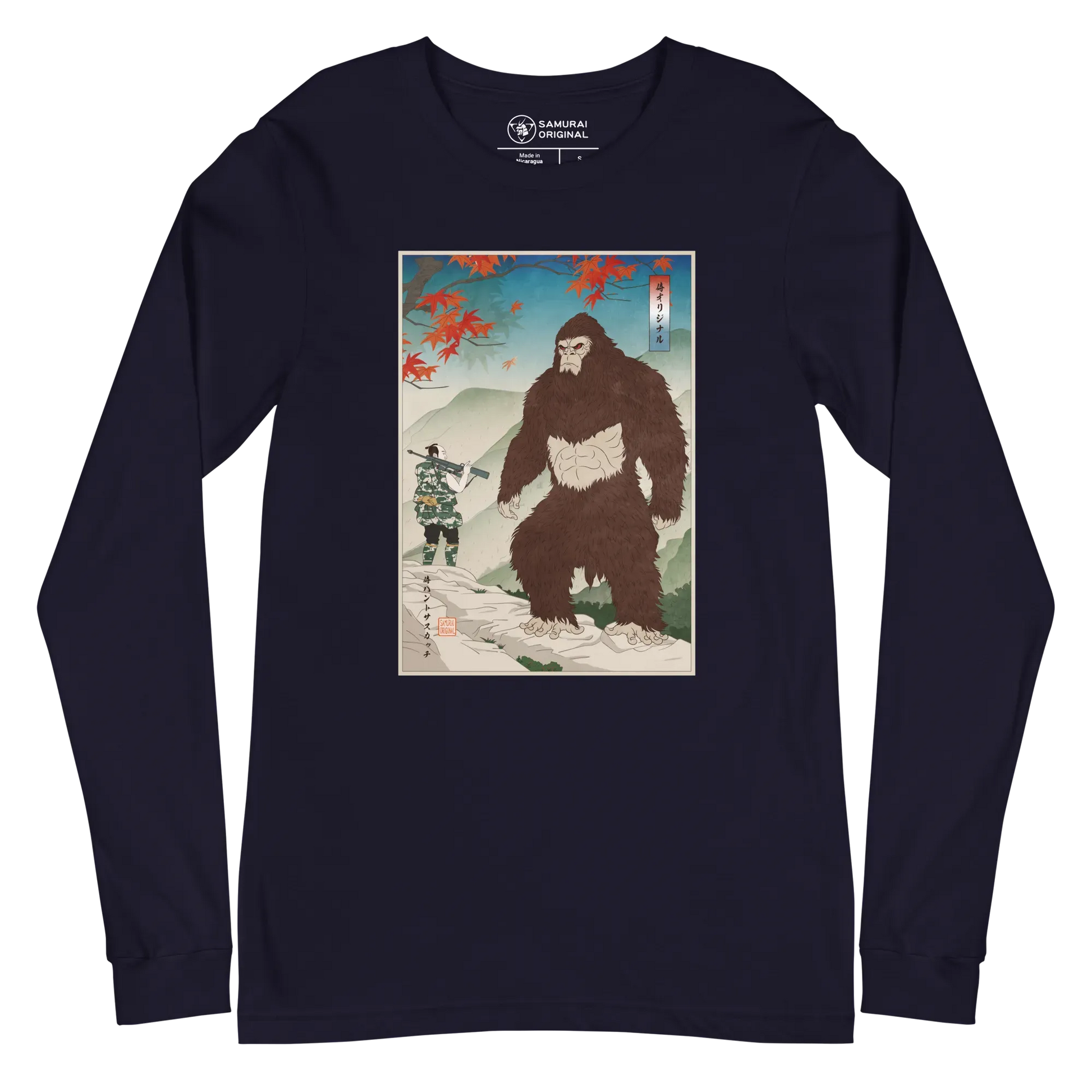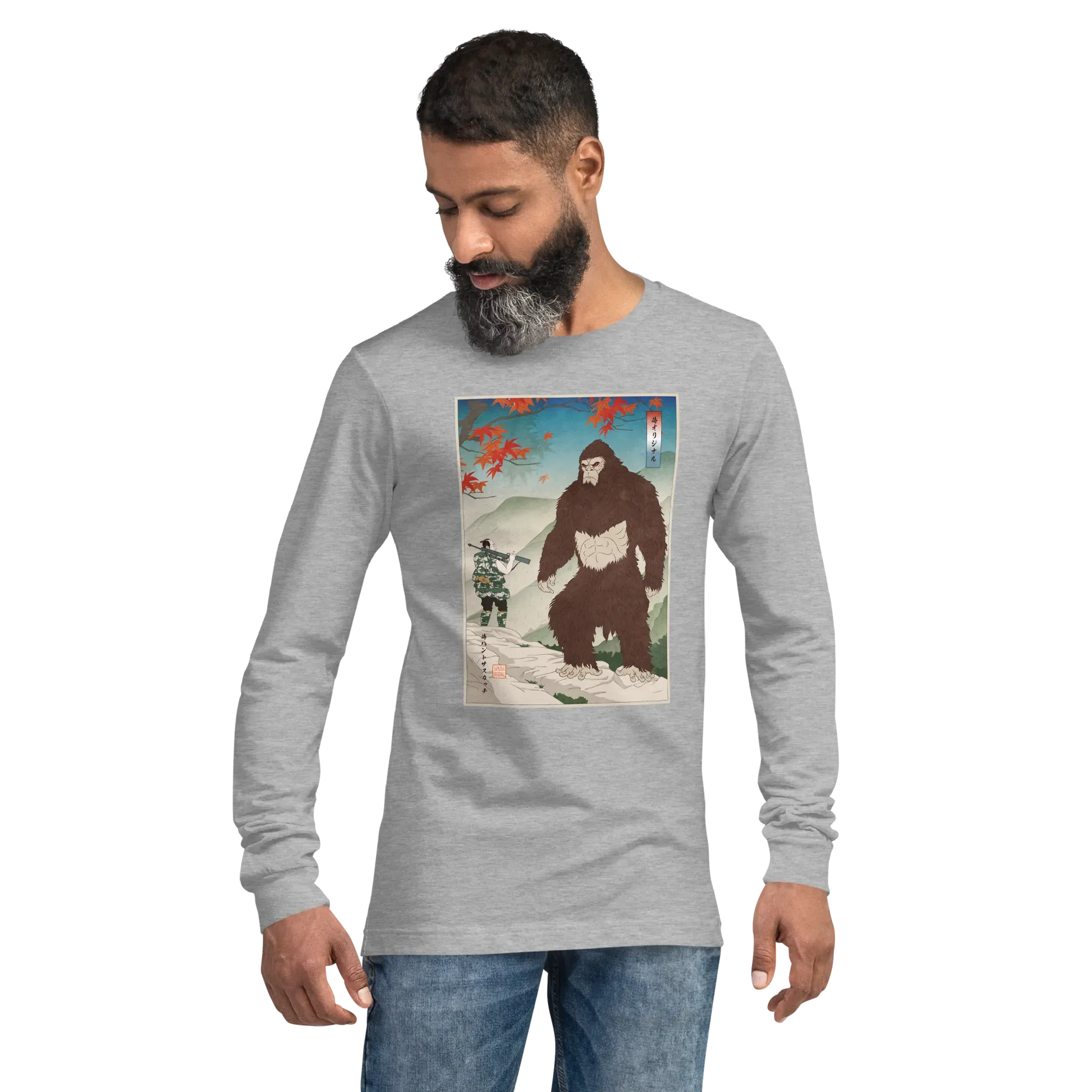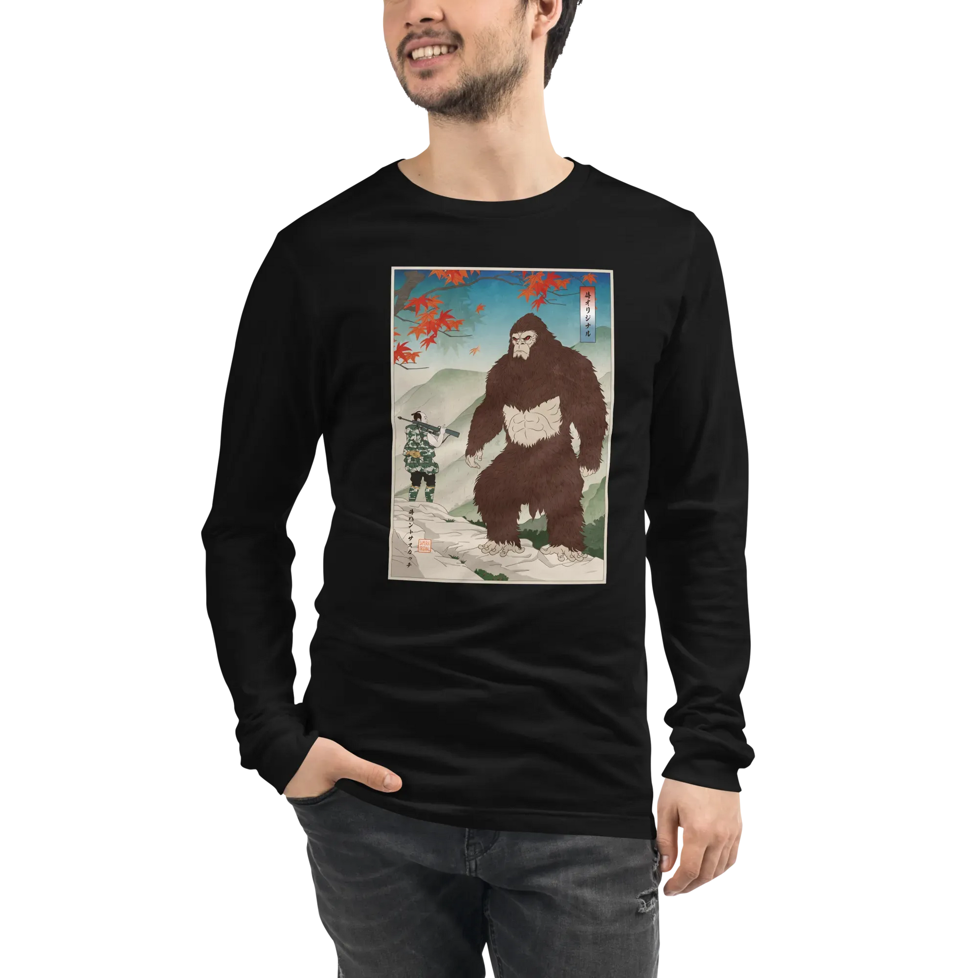 Samurai Hunts Sasquatch Japanese Ukiyo-e Unisex Long Sleeve Tee