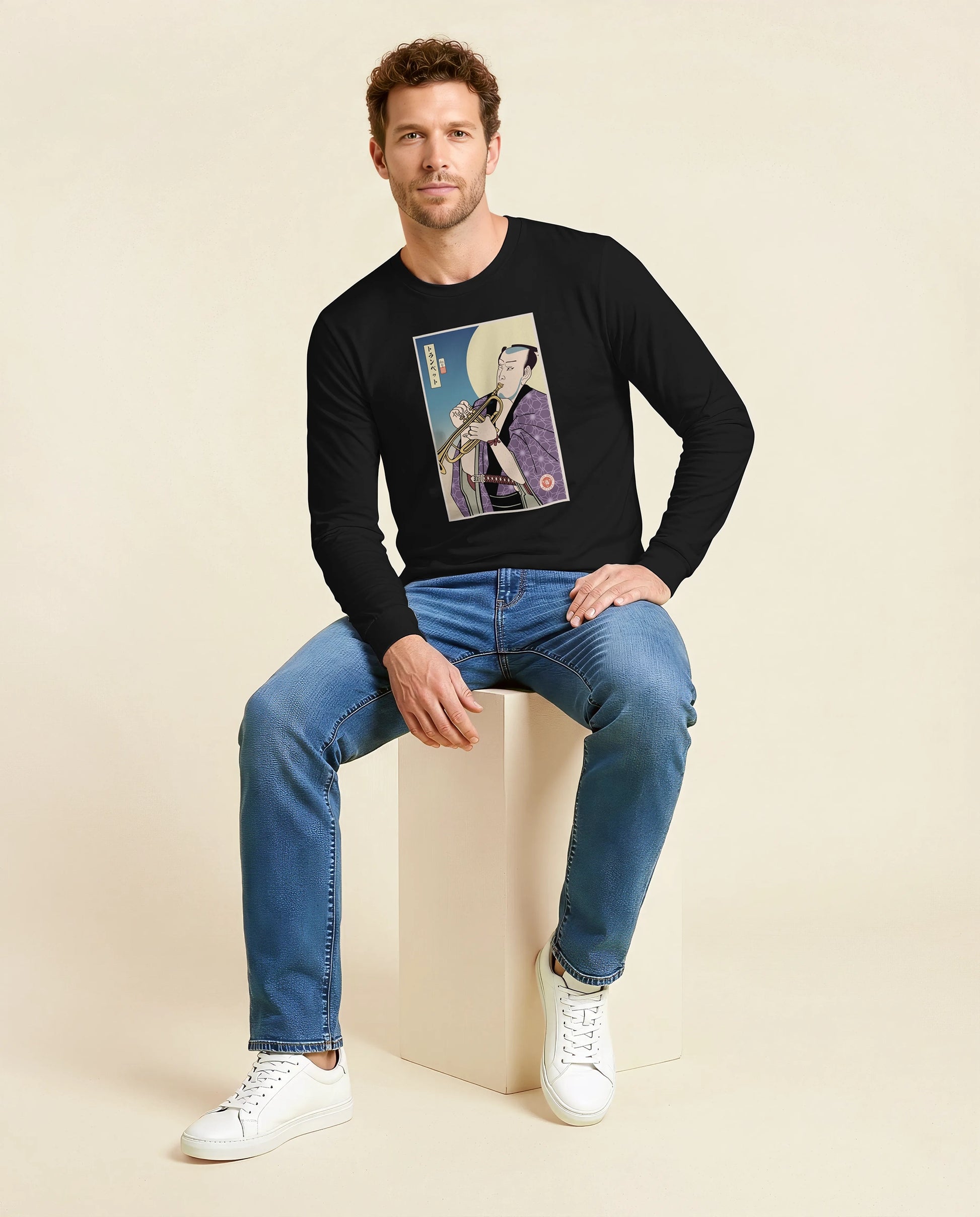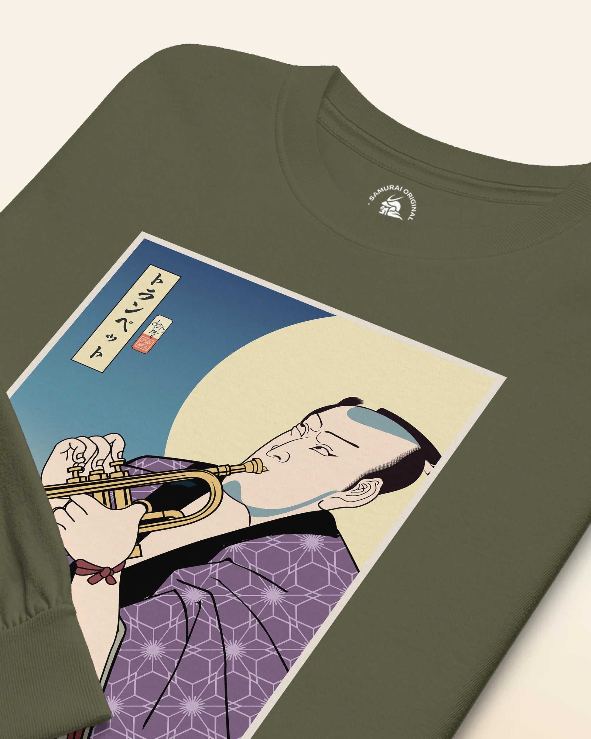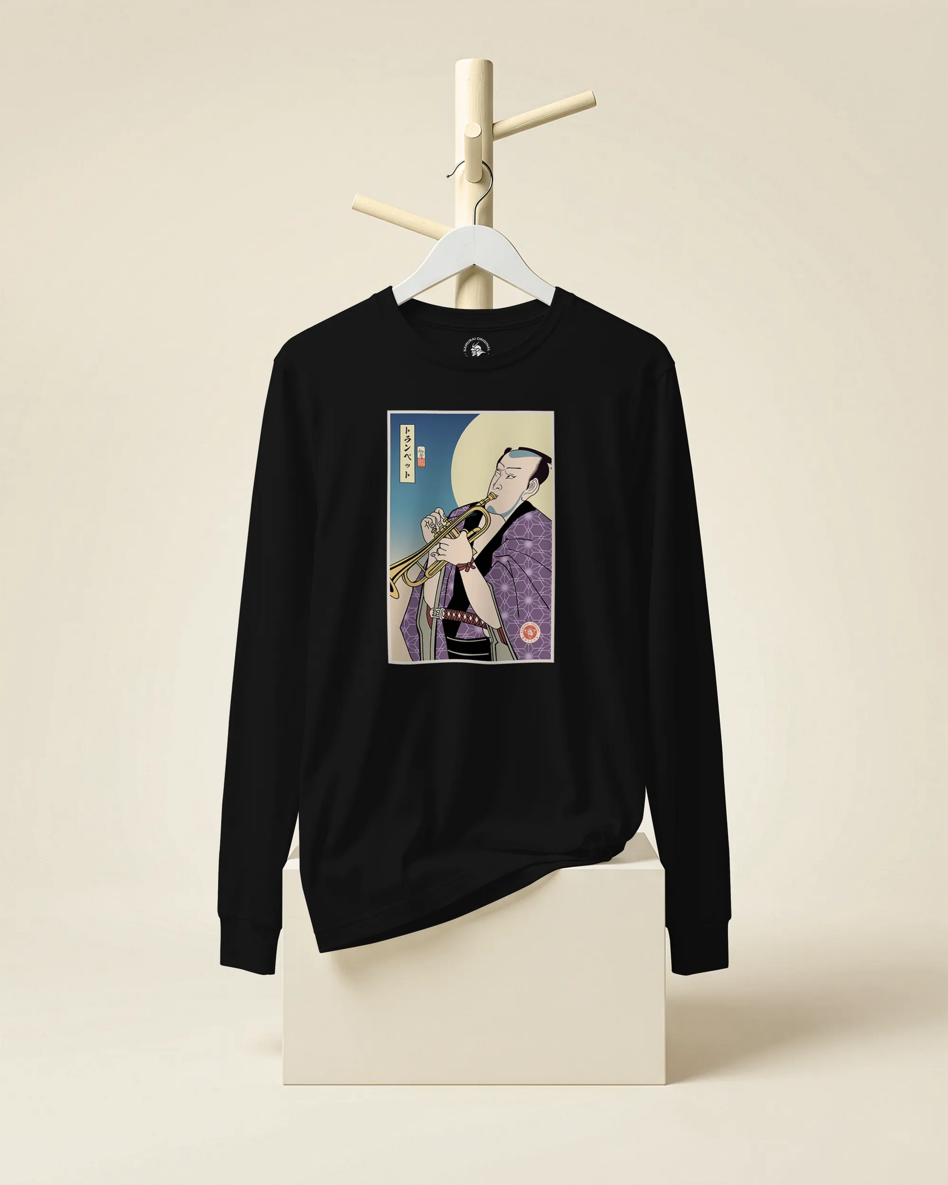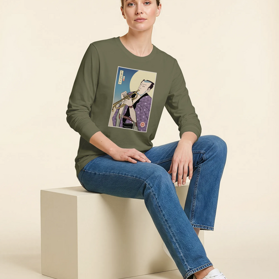 Samurai Trumpet Brass Instrument Ukiyo-e Unisex Long Sleeve Tee