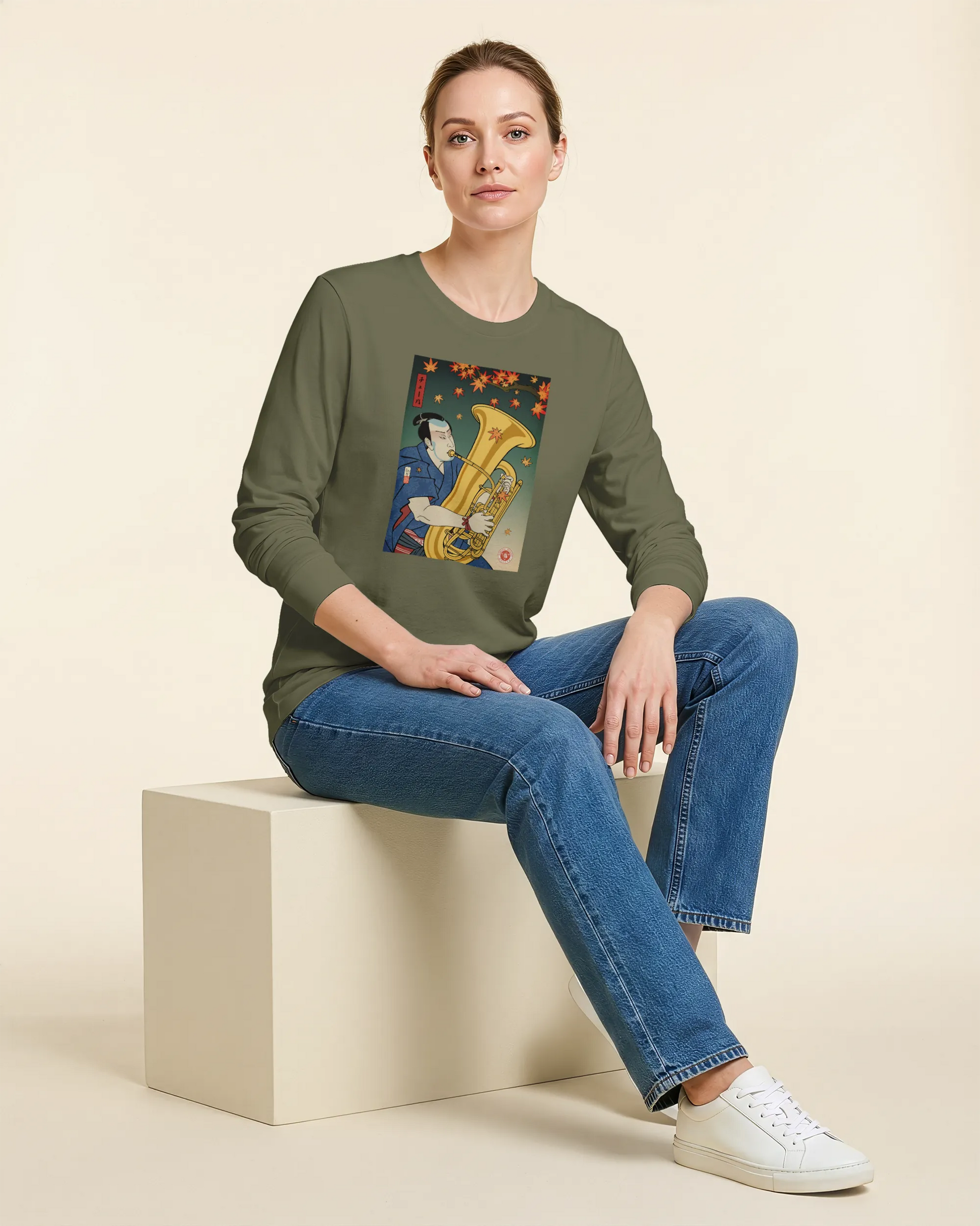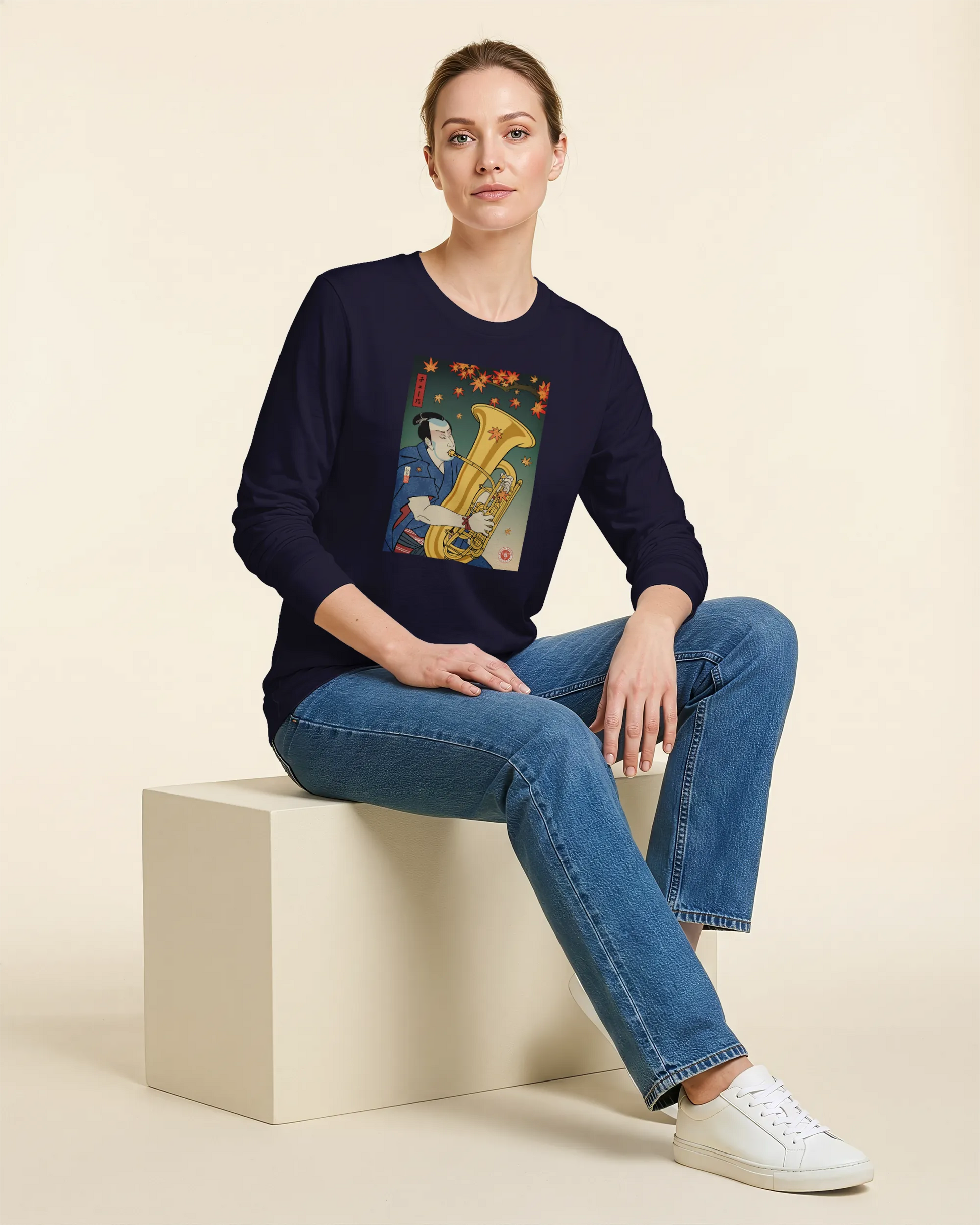 Samurai Tuba Music Ukiyo-e Unisex Long Sleeve Tee