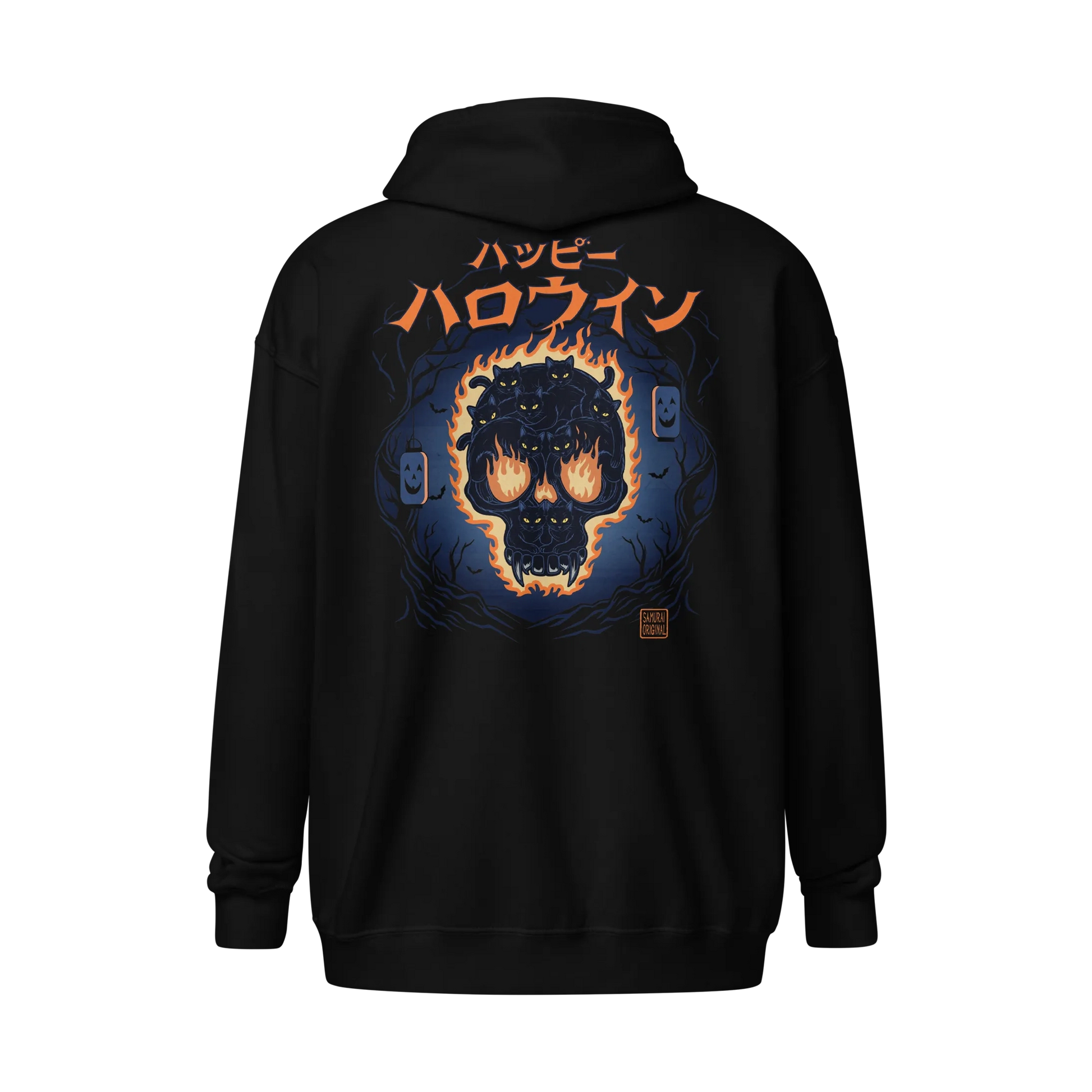 Skull of Black Cats Ukiyo-e Unisex heavy blend zip hoodie