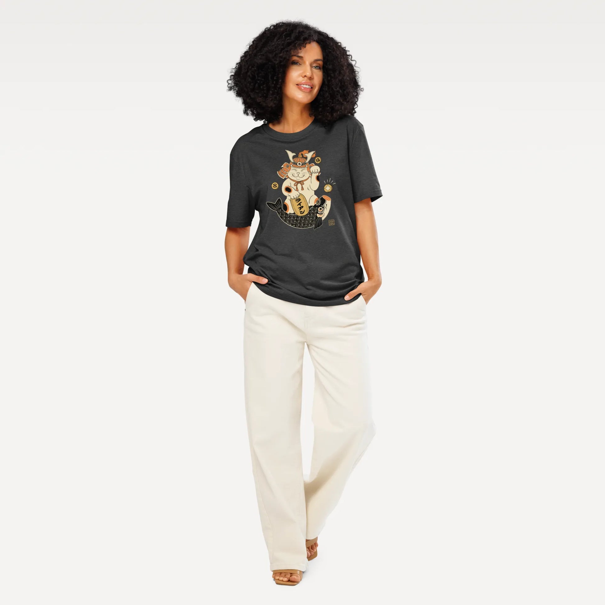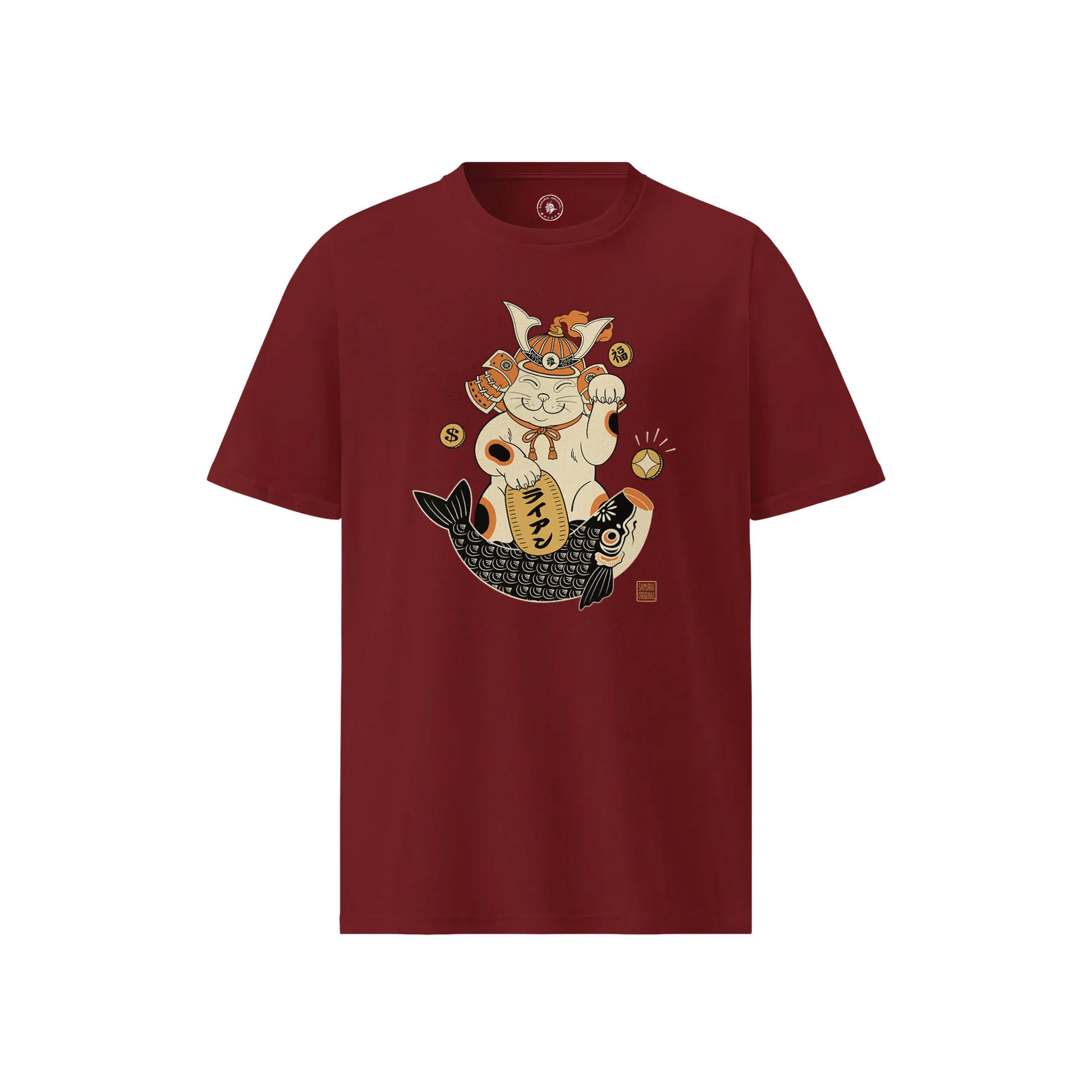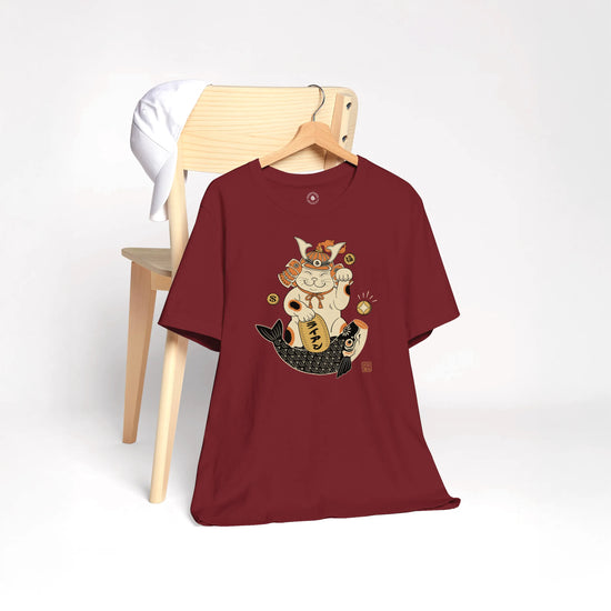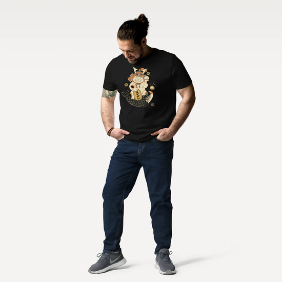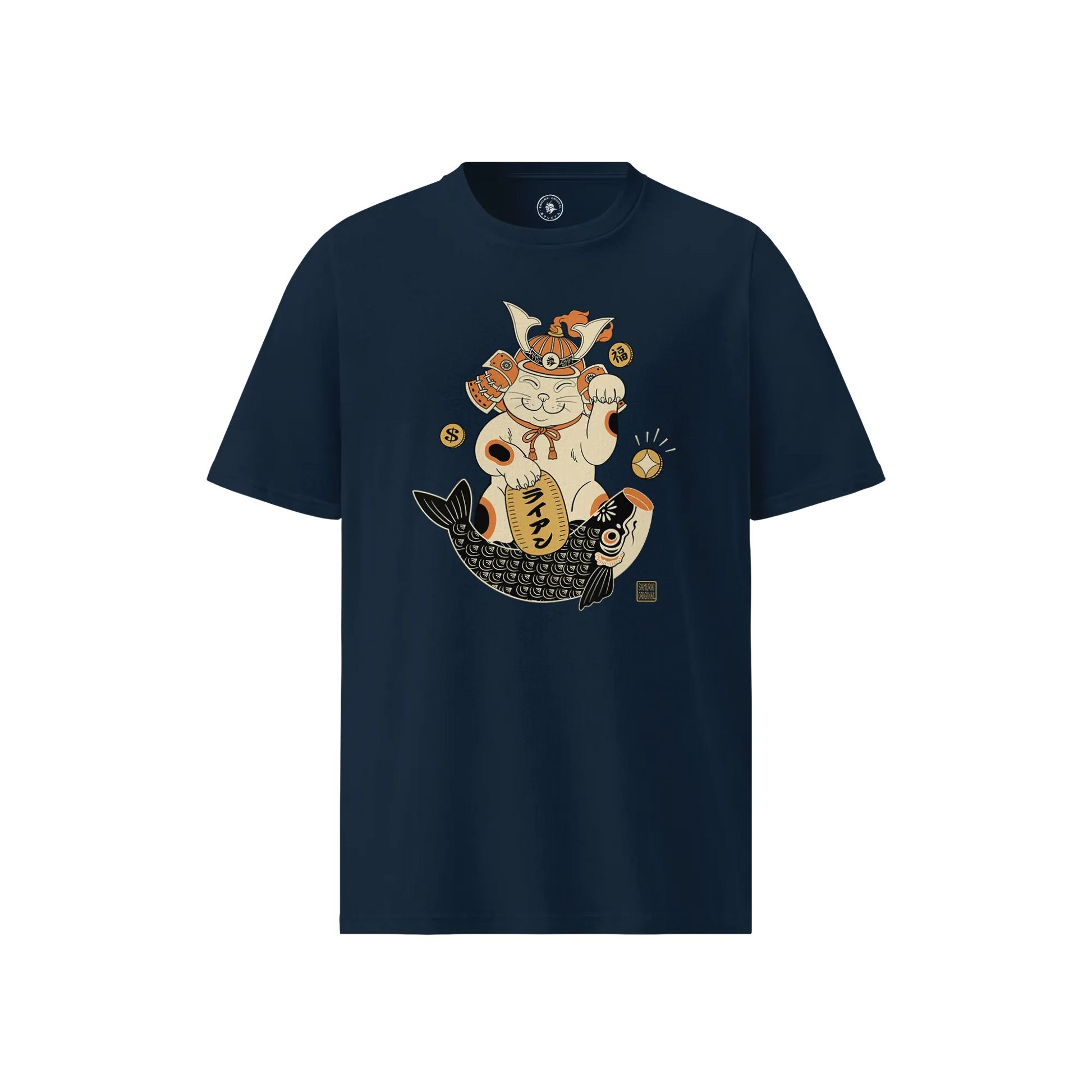 The Custom Name Maneki Neko Unisex Organic T-shirt No.1 blends Japanese tradition with a modern twist. Featuring the iconic 招き猫 (Maneki Neko) — the Lucky Cat — holding a koi fish and surrounded by gold coins, this design symbolizes prosperity and good fortune. What makes it special? You can personalize the design with your own name for a unique and meaningful touch.