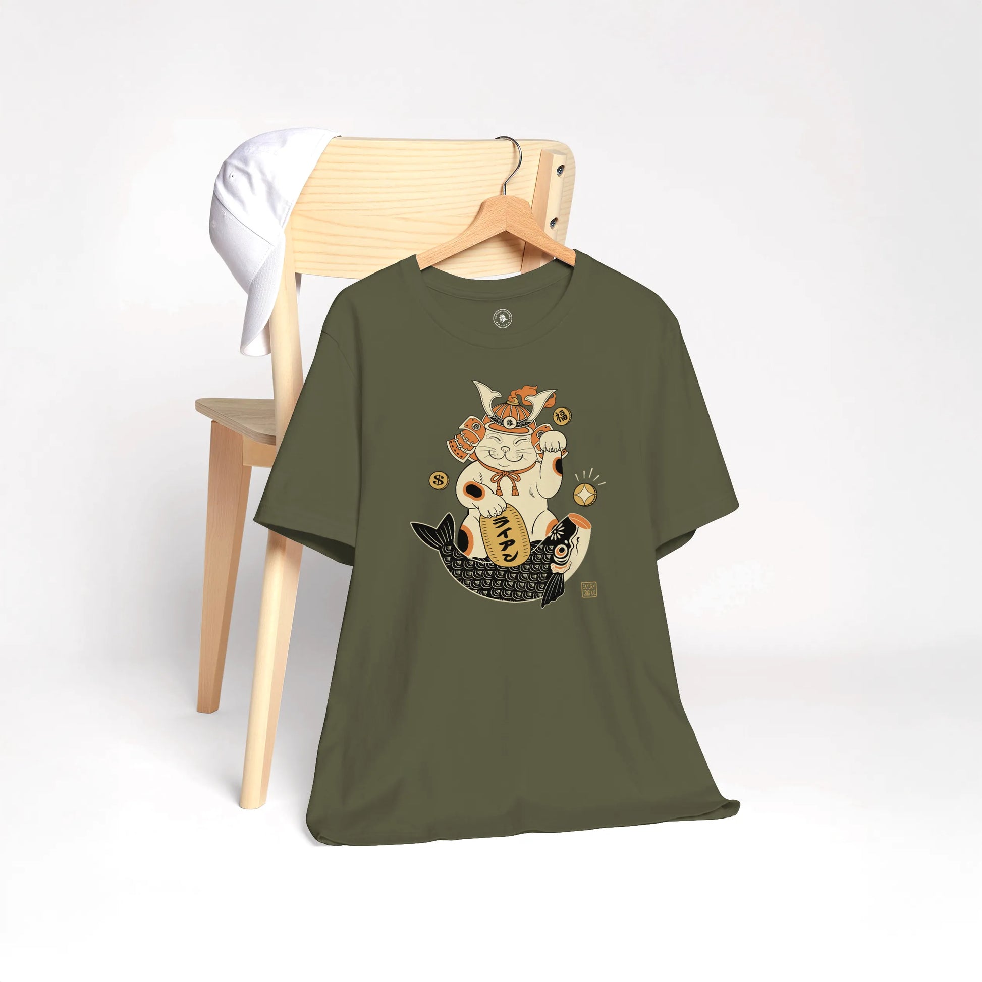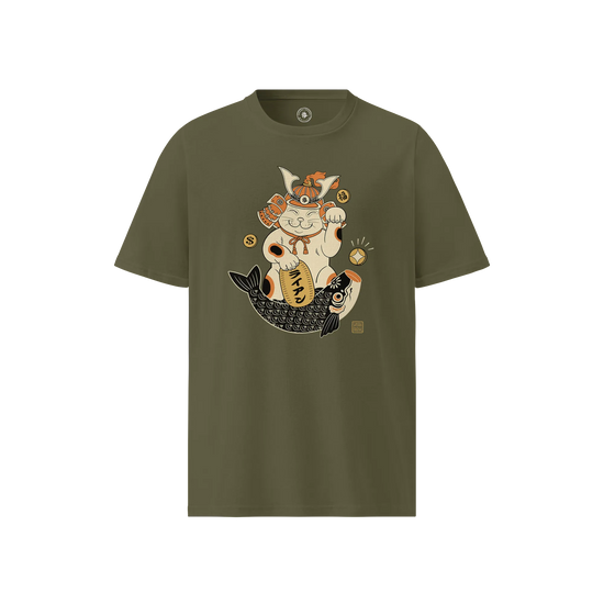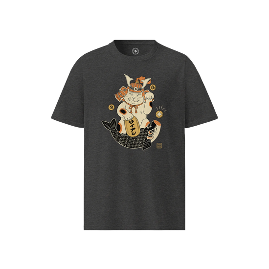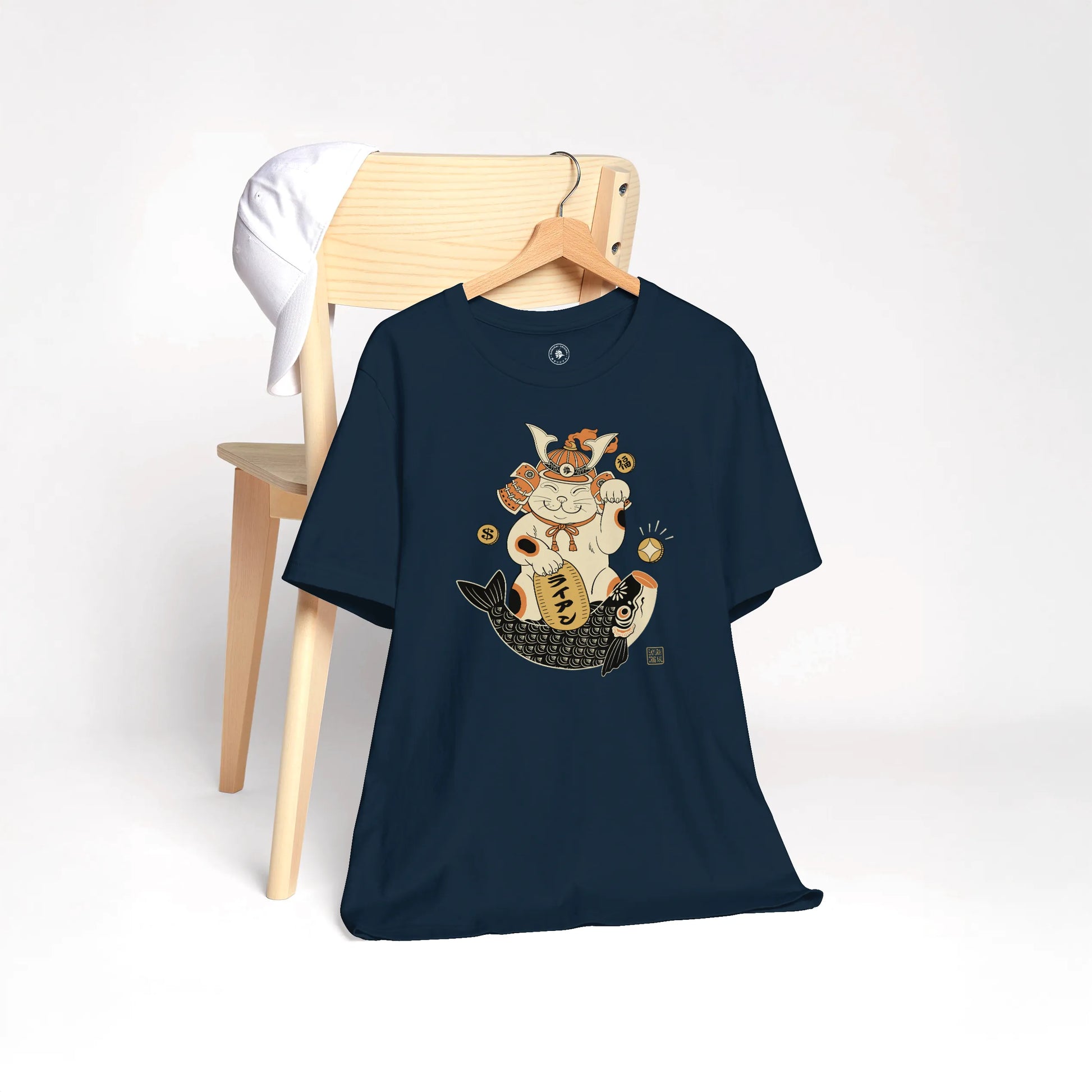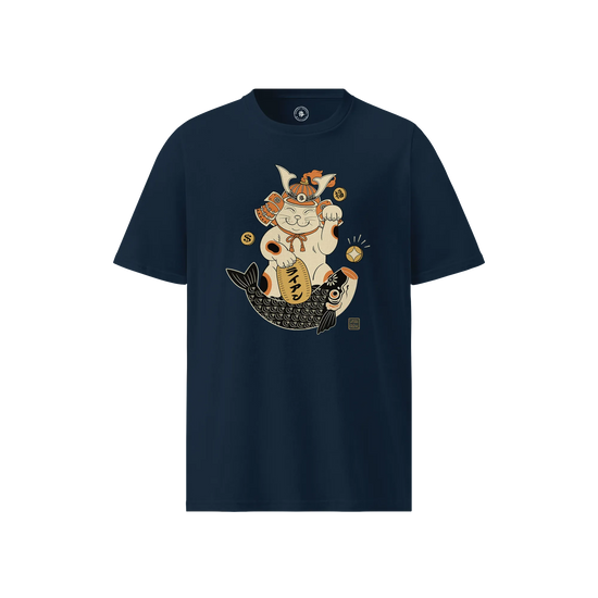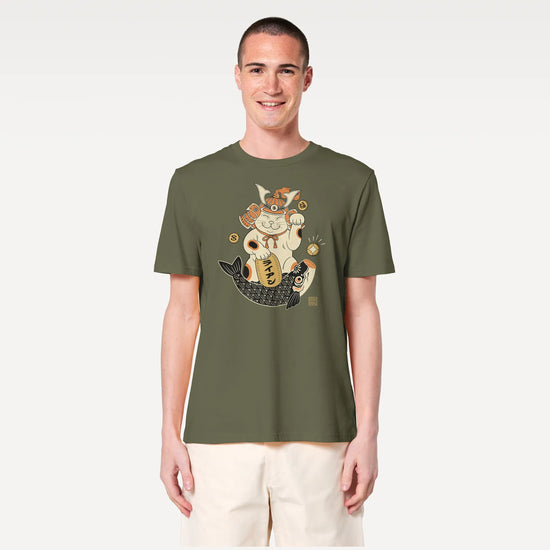 The Custom Name Maneki Neko Unisex Organic T-shirt No.1 blends Japanese tradition with a modern twist. Featuring the iconic 招き猫 (Maneki Neko) — the Lucky Cat — holding a koi fish and surrounded by gold coins, this design symbolizes prosperity and good fortune. What makes it special? You can personalize the design with your own name for a unique and meaningful touch.