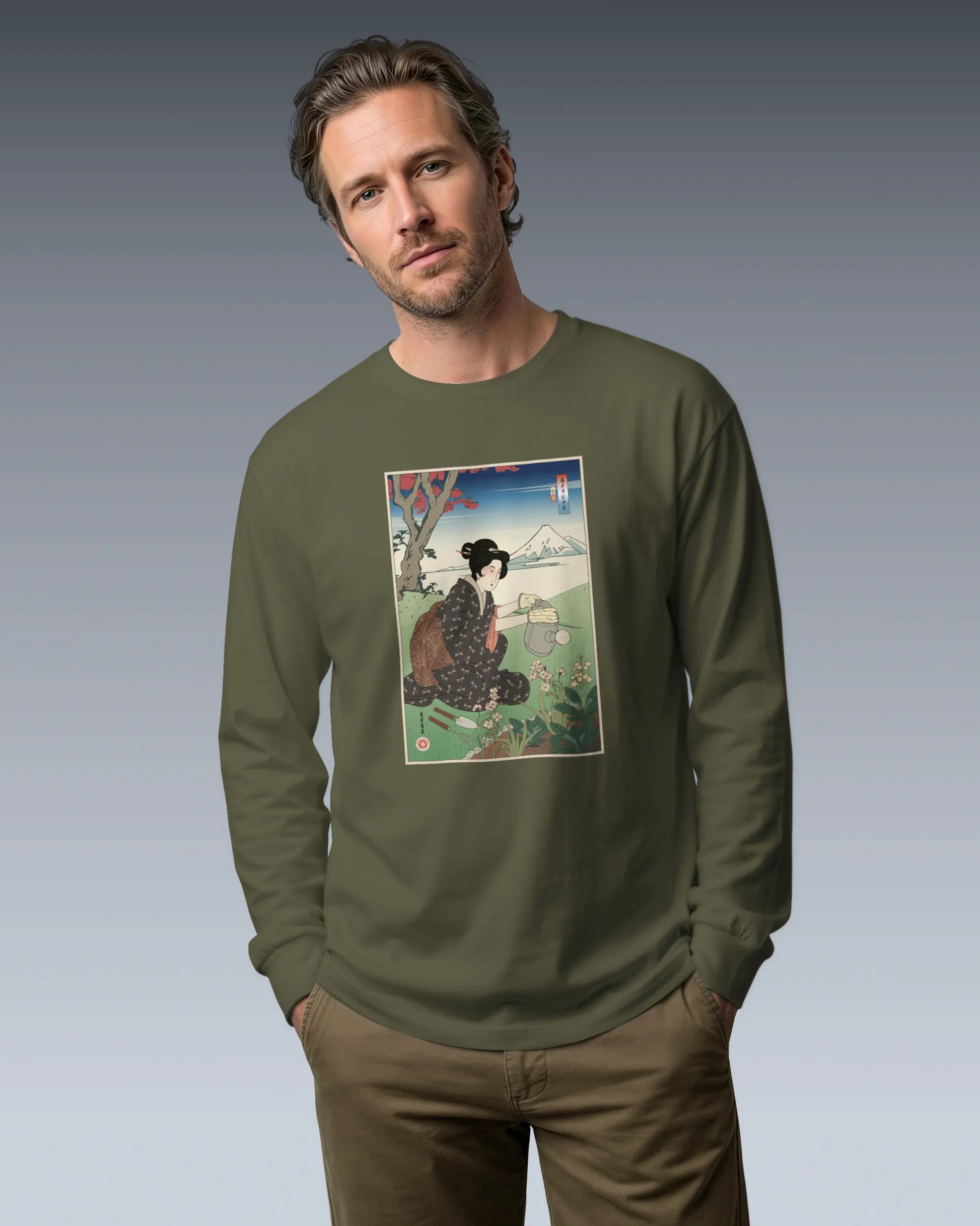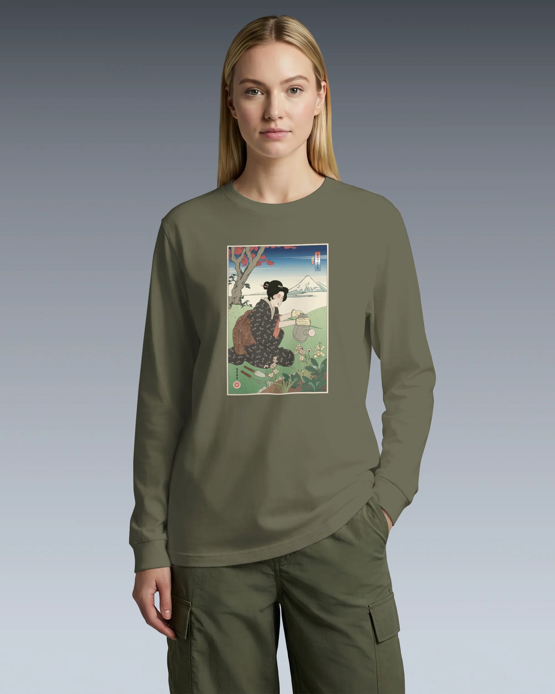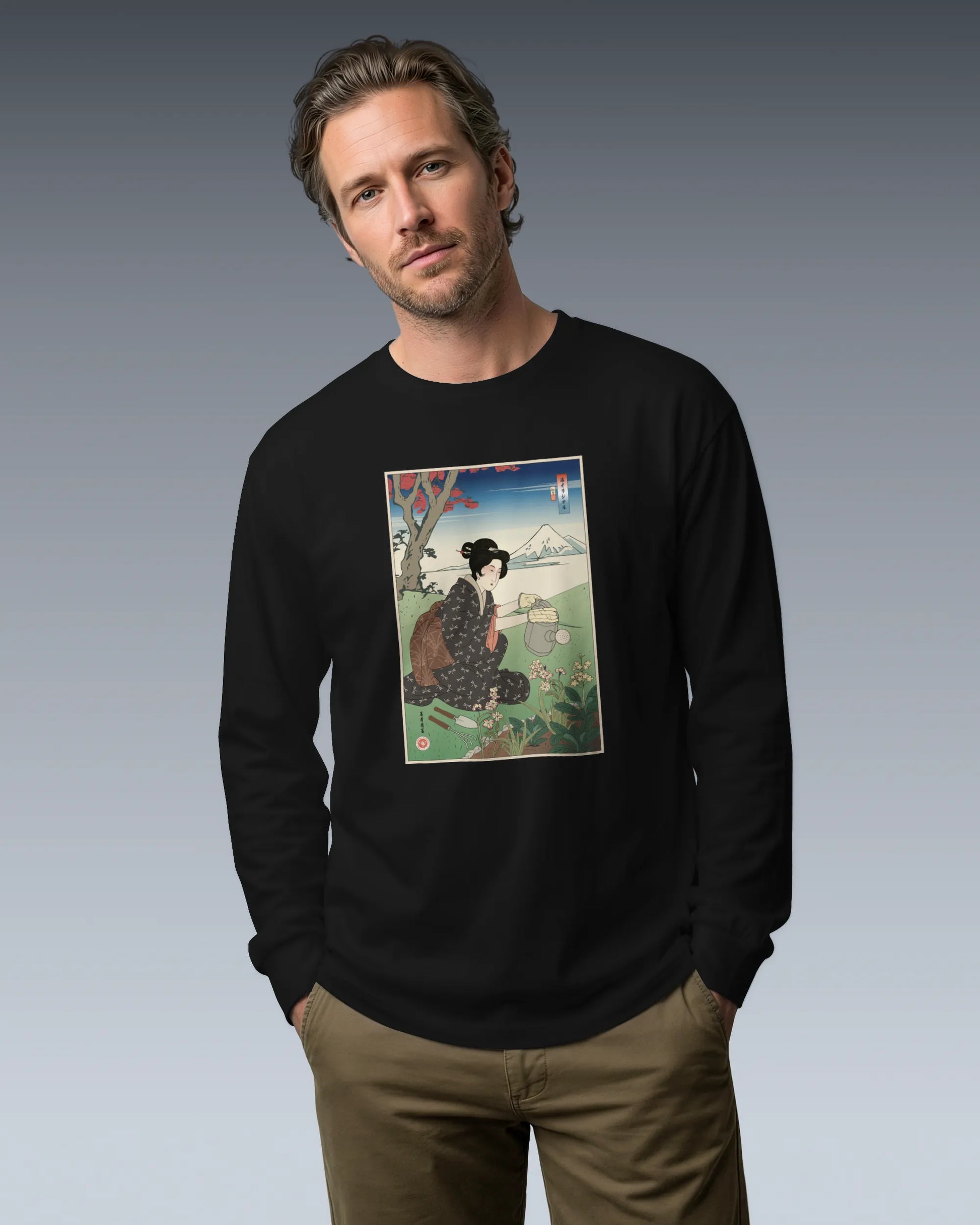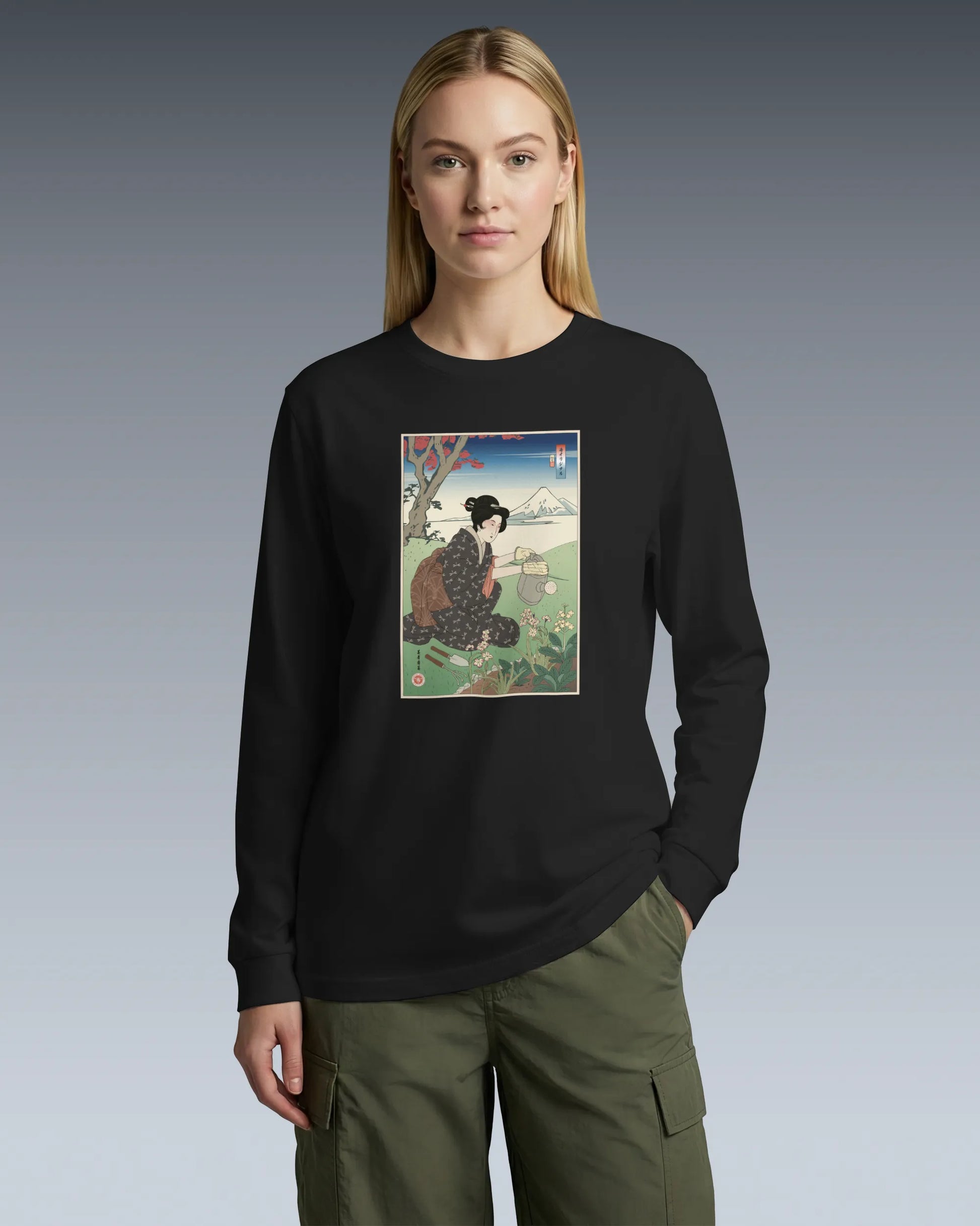 Geisha Gardening Ukiyo-e Unisex Long Sleeve Tee