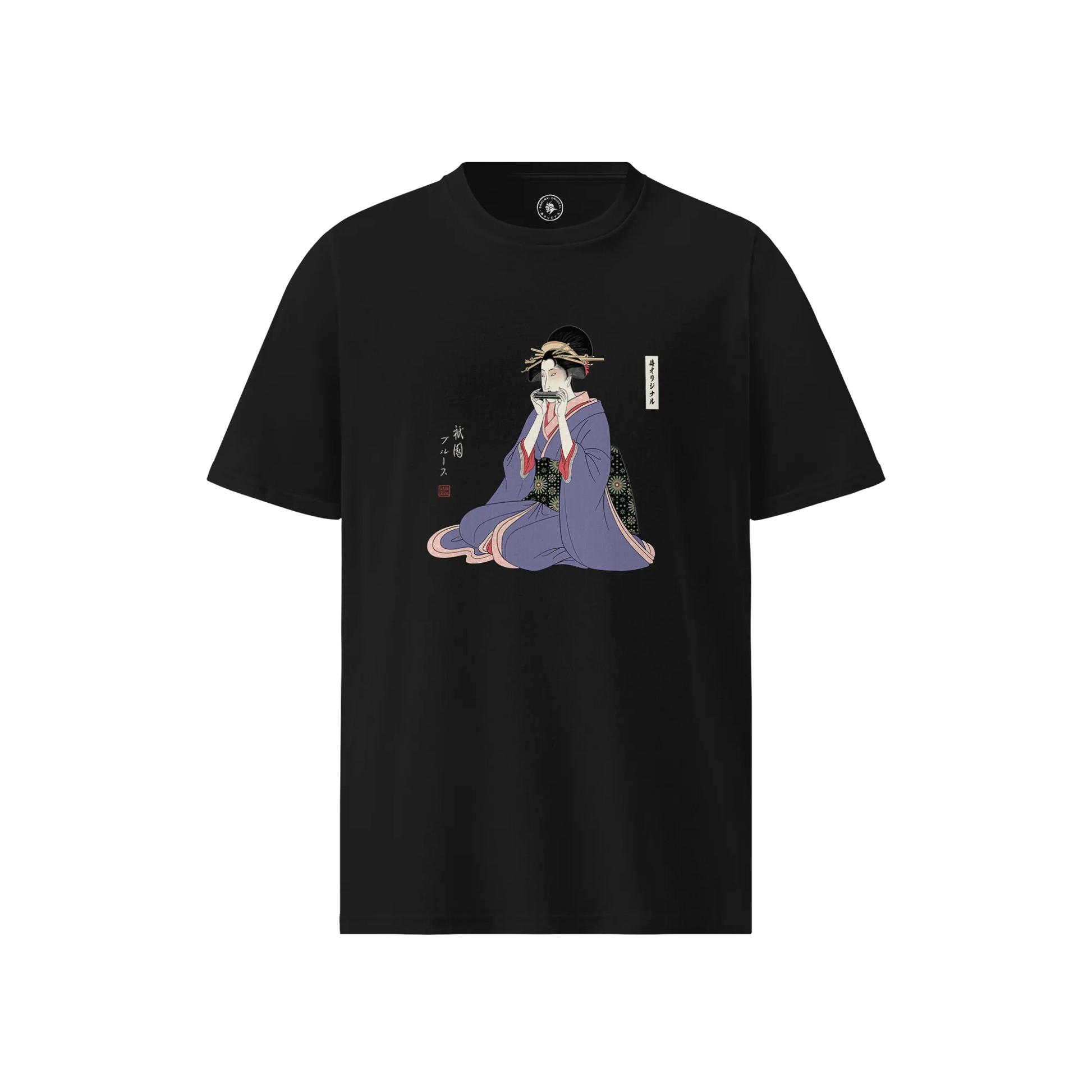 Geisha Harmonica Japanese Ukiyo-e Unisex Organic T-shirt