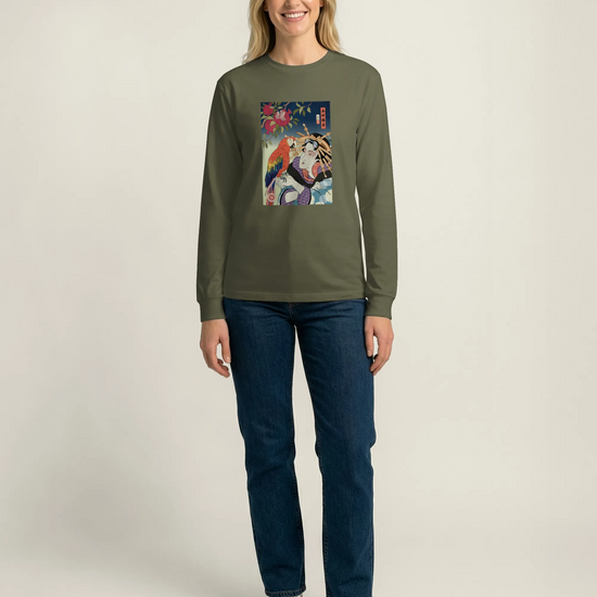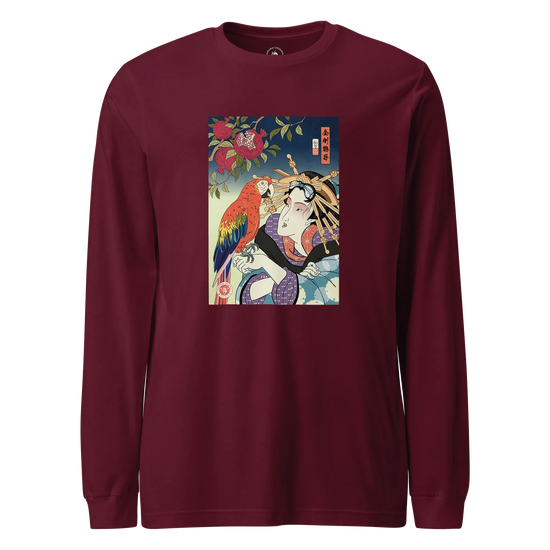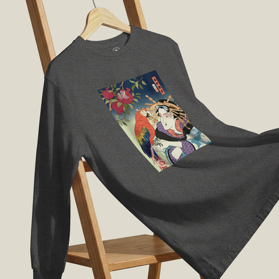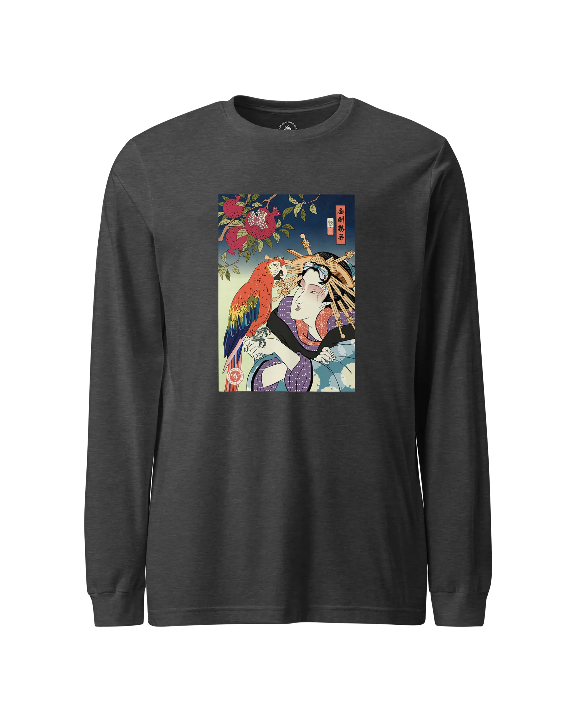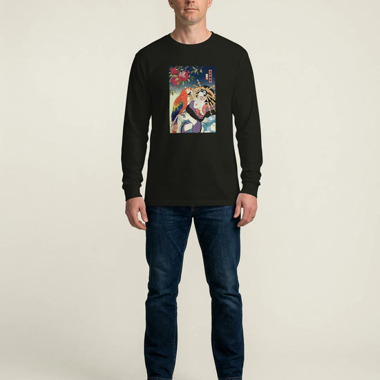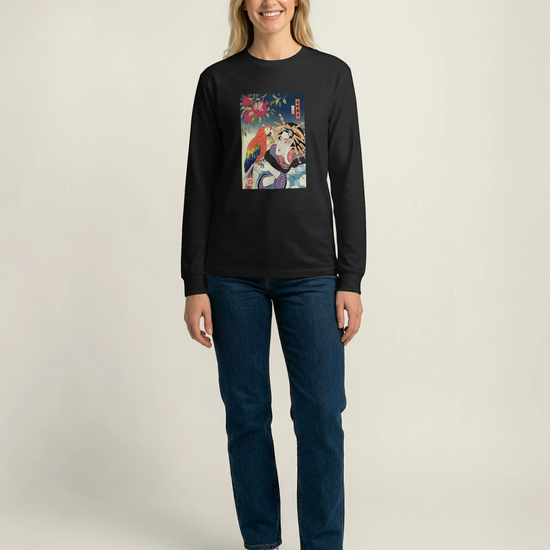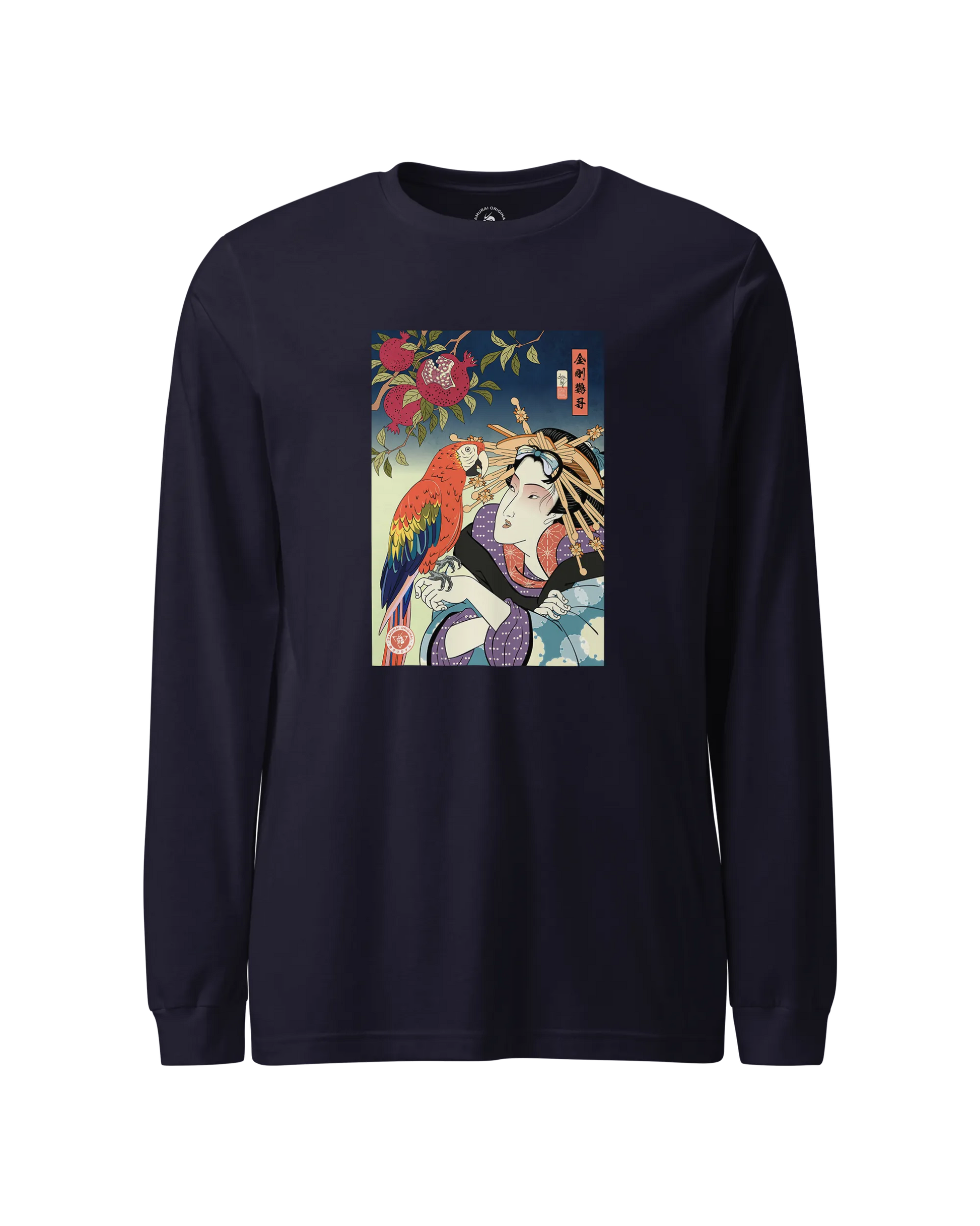 Geisha & Macaw Parrot Ukiyo-e Unisex Long Sleeve Tee