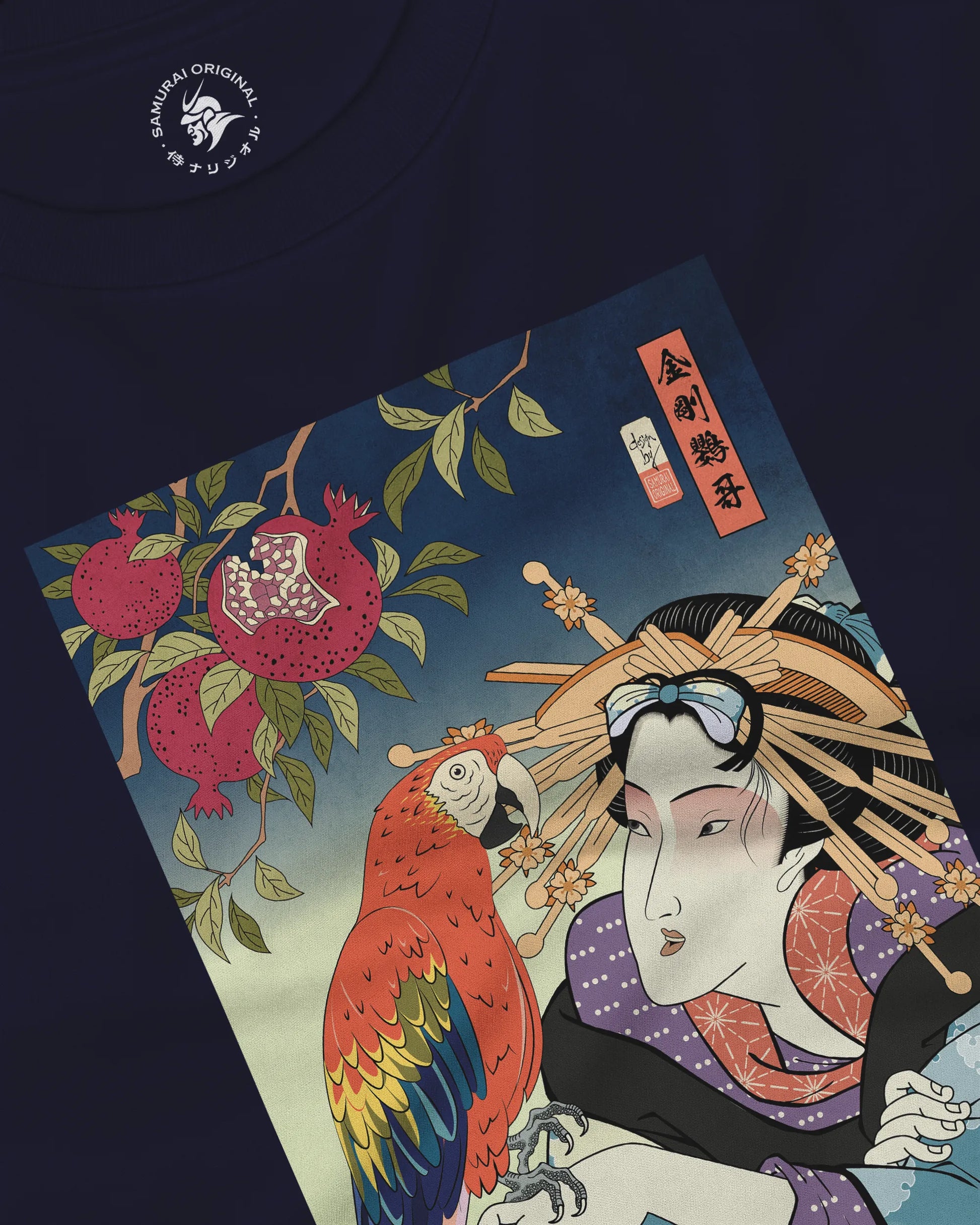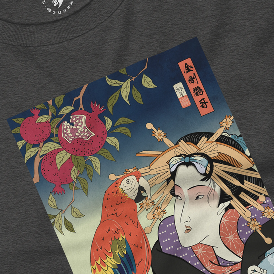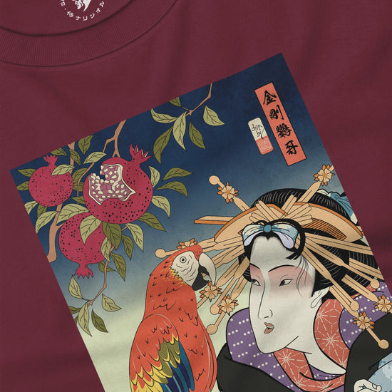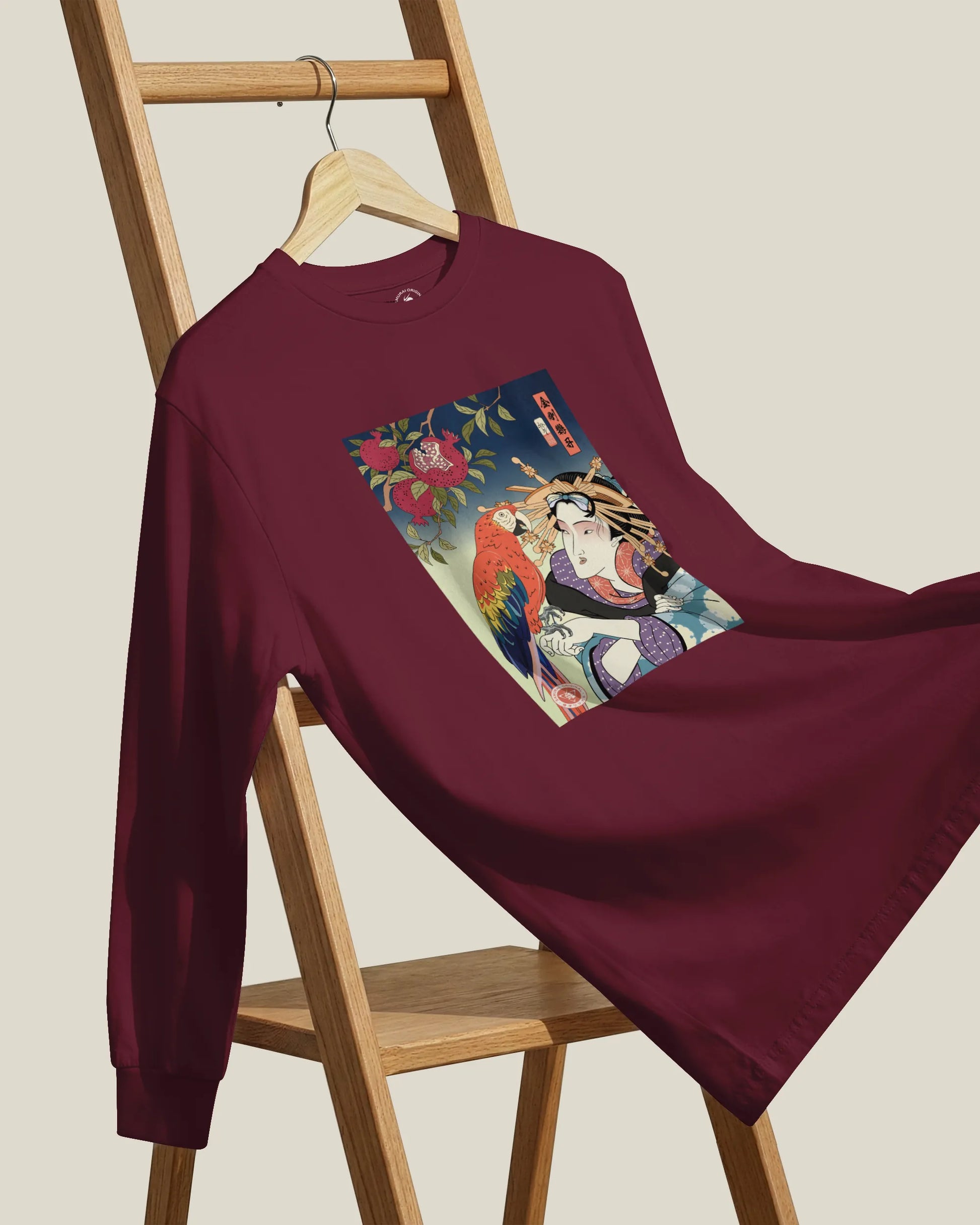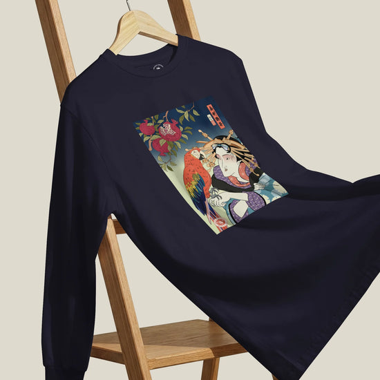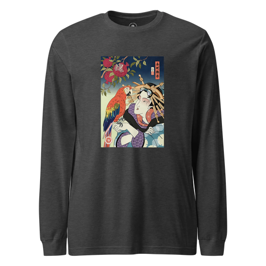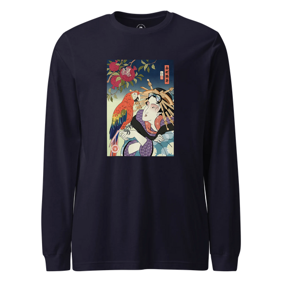Geisha & Macaw Parrot Ukiyo-e Unisex Long Sleeve Tee