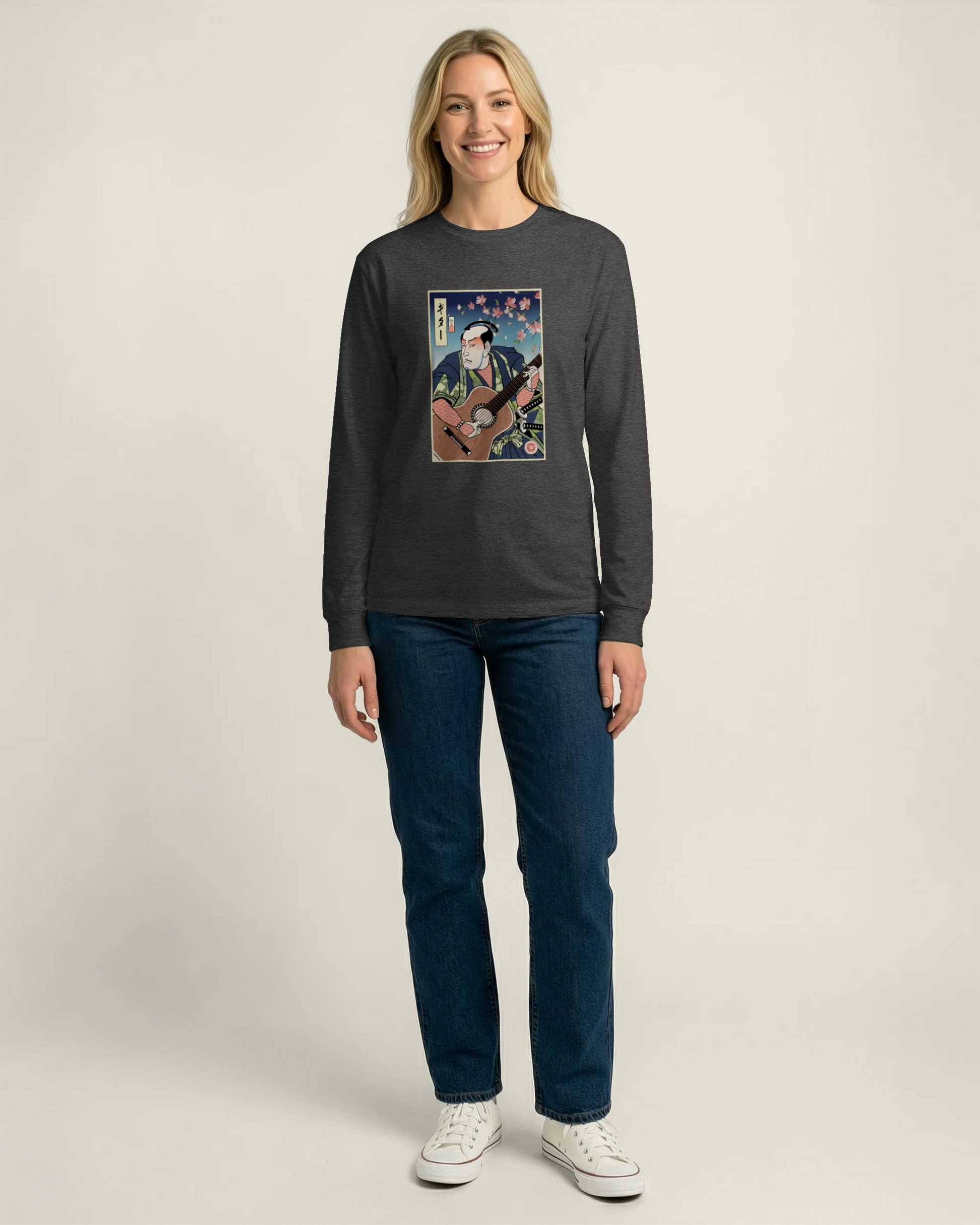 Samurai Guitar Player 2 Music Ukiyo-e Unisex Long Sleeve Tee