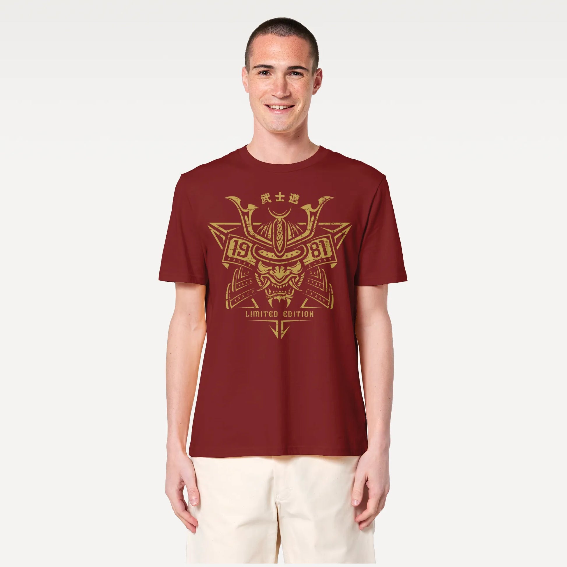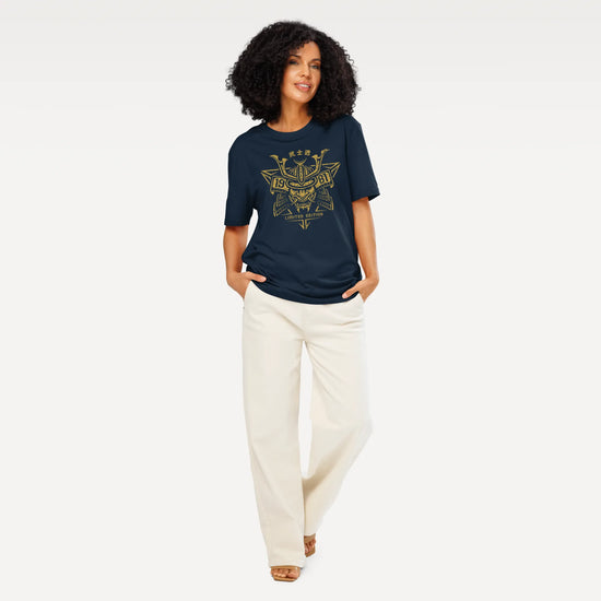 The Japanese Custom Year of Birth Unisex Organic T-shirt lets you personalize your tee with your own year, framed in bold Japanese samurai armor design. Whether you’re a fan of Japanese art, warrior culture, or simply want a unique birthday gift, this shirt makes a striking statement.