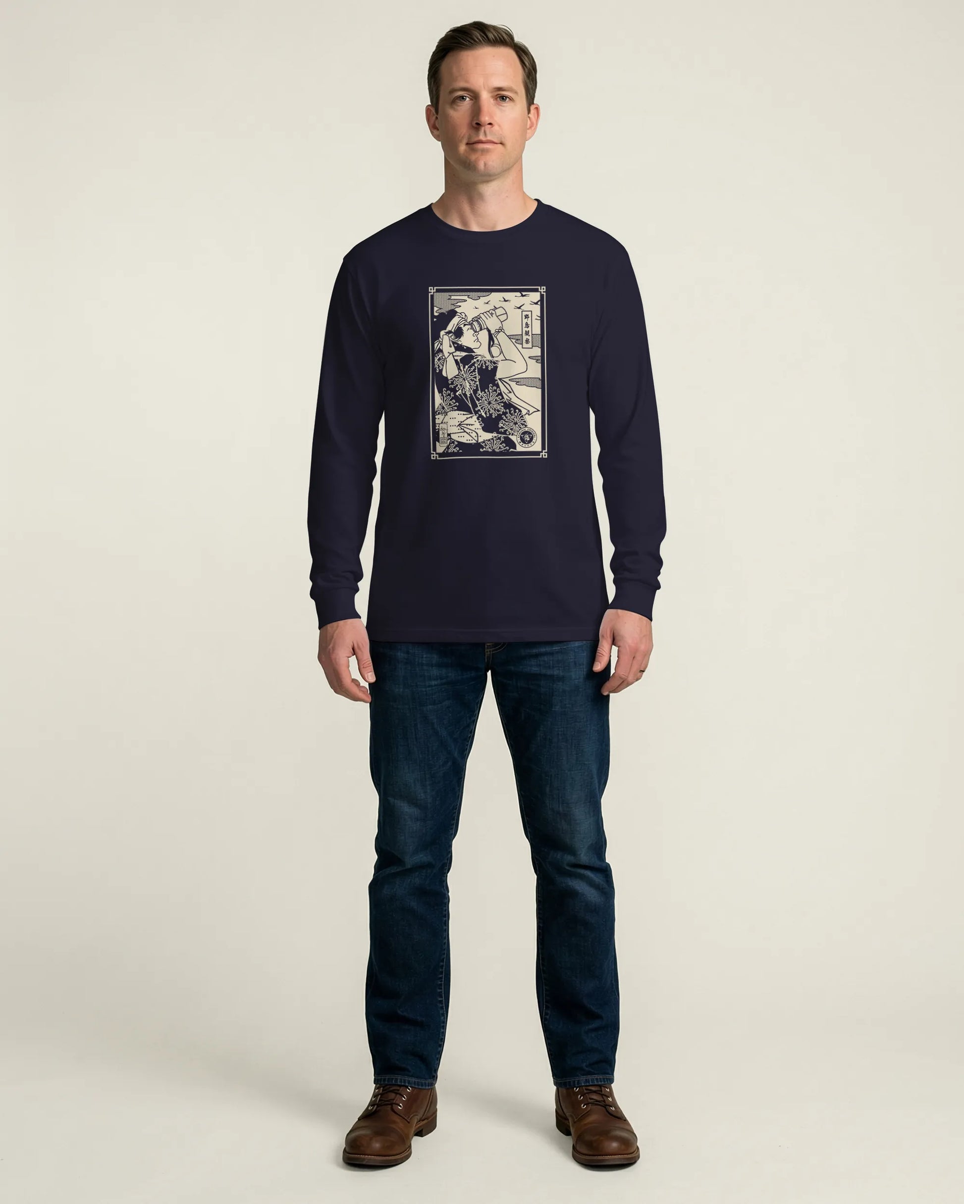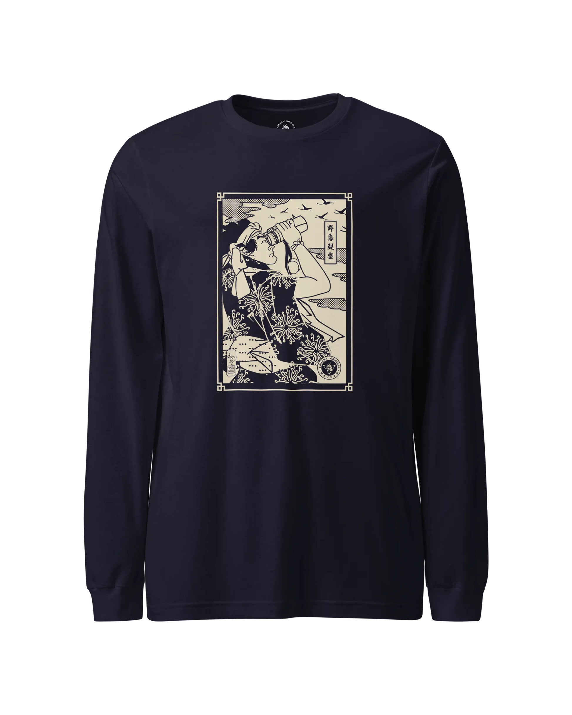 Samurai Birdwatching Bird Lover Ukiyo-e Unisex Long Sleeve Tee