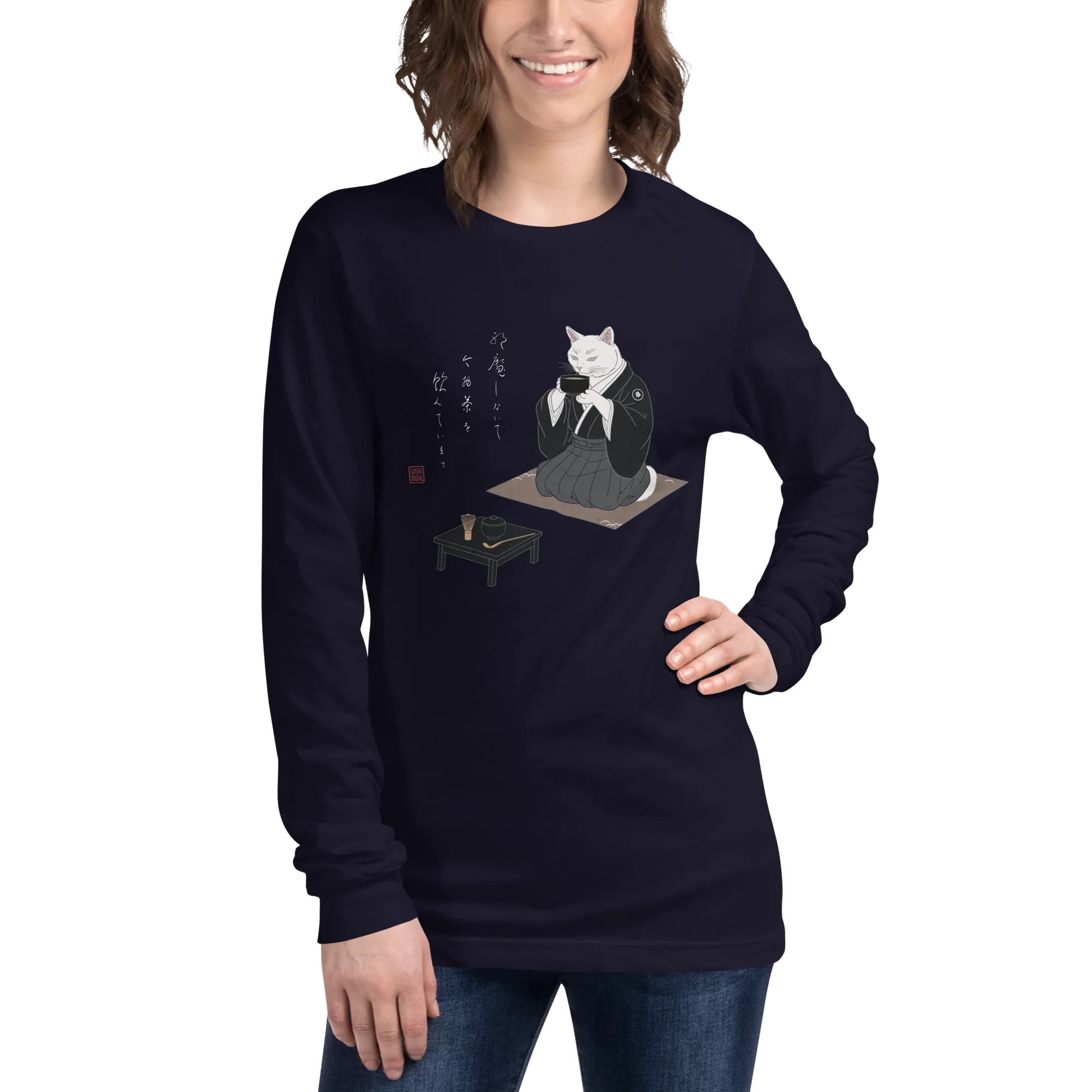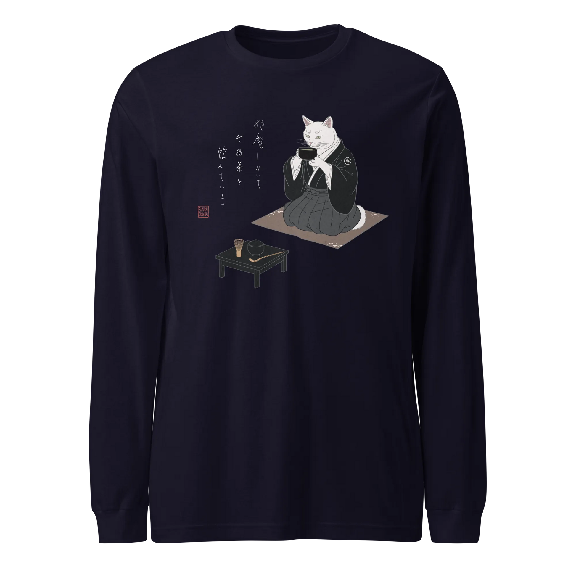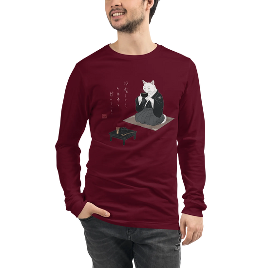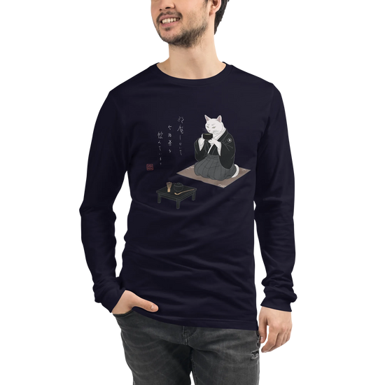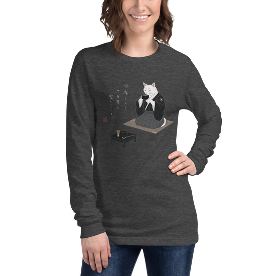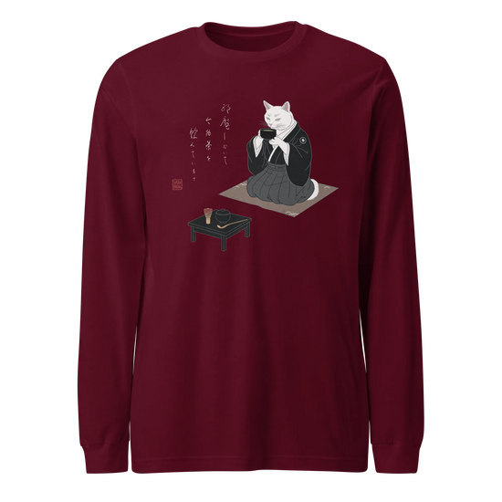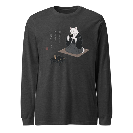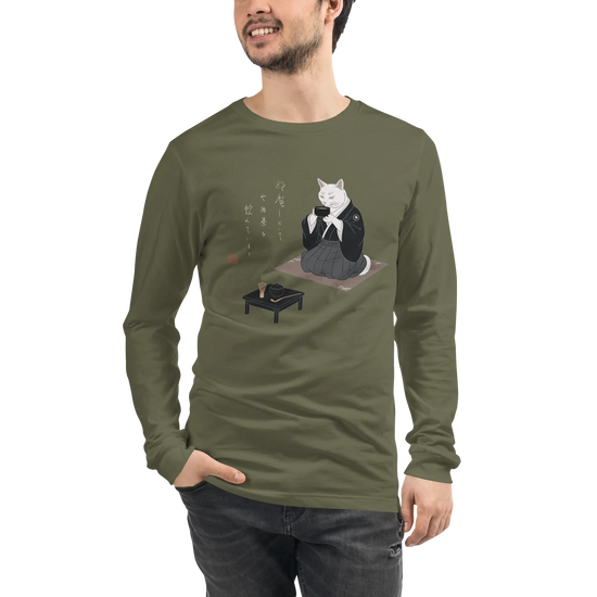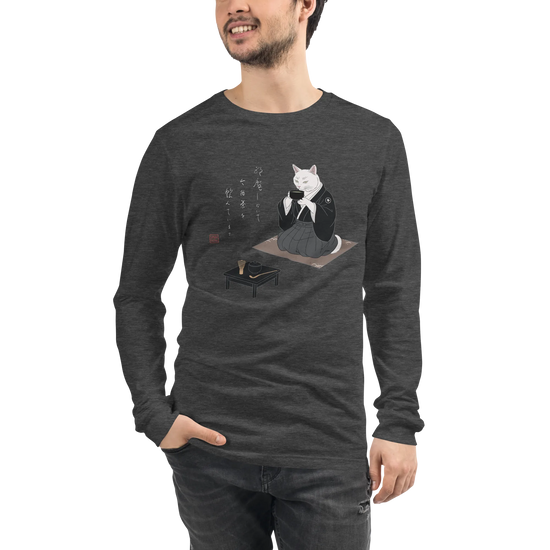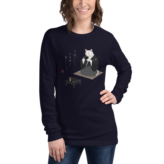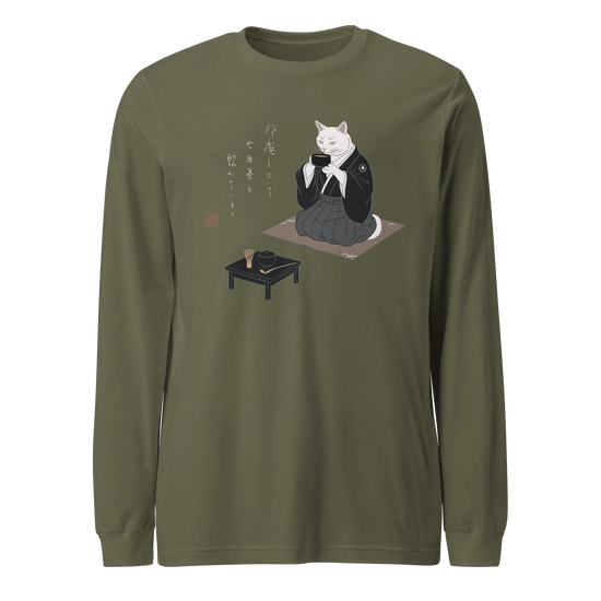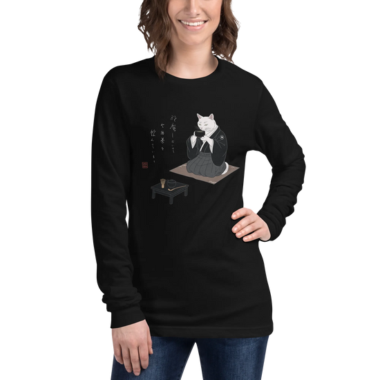 Samurai Cat Tea Time Tee Japanese Ukiyo-e Unisex Long Sleeve Tee