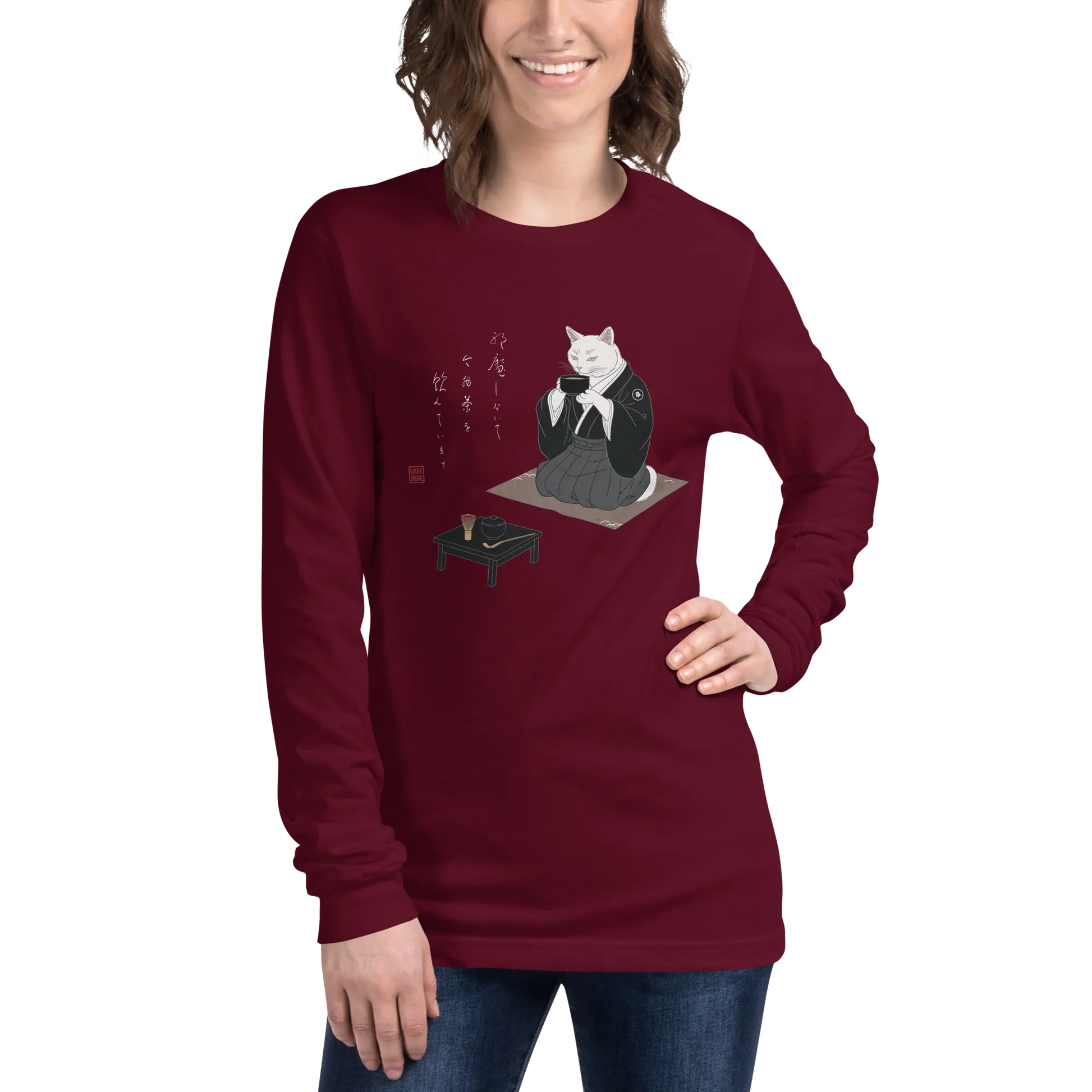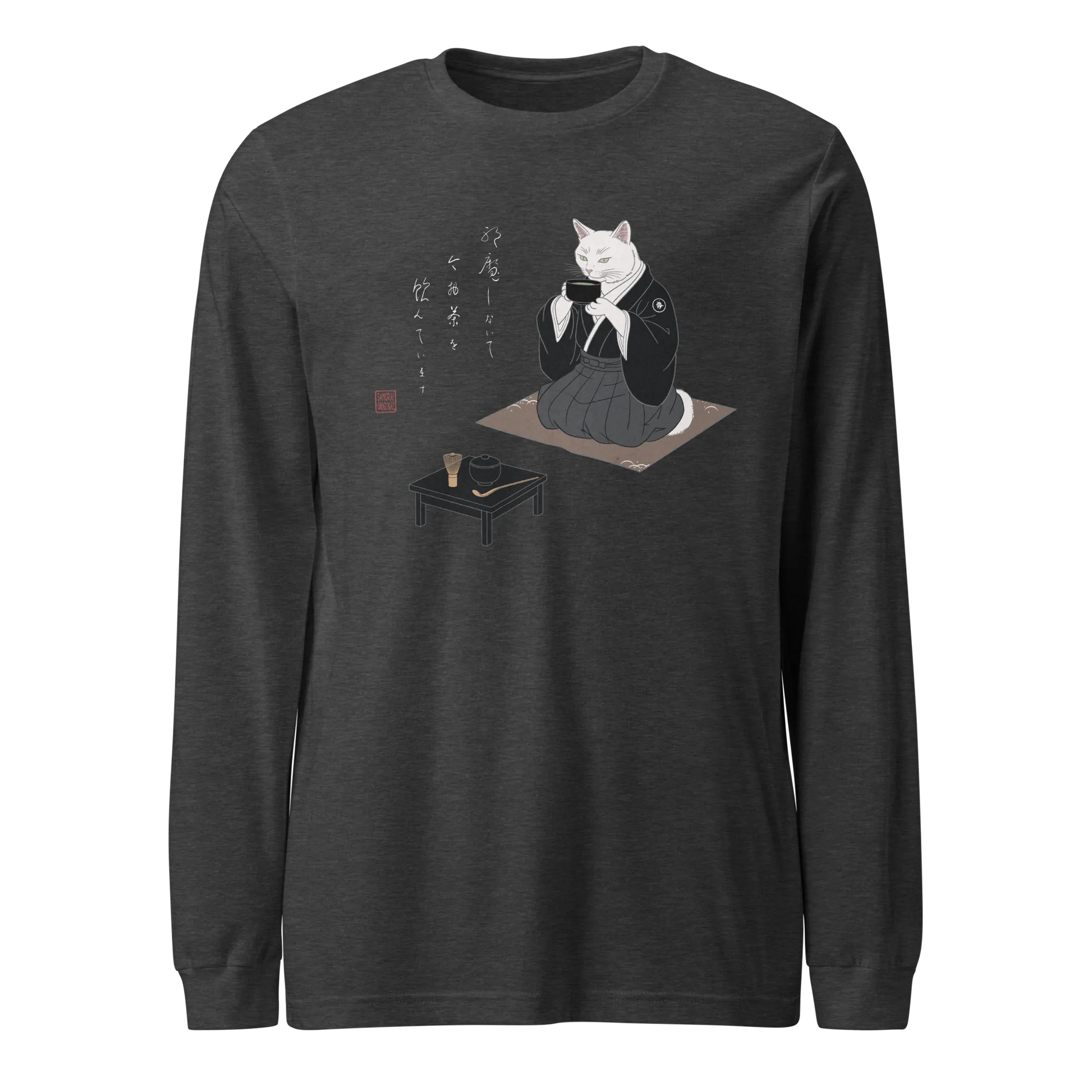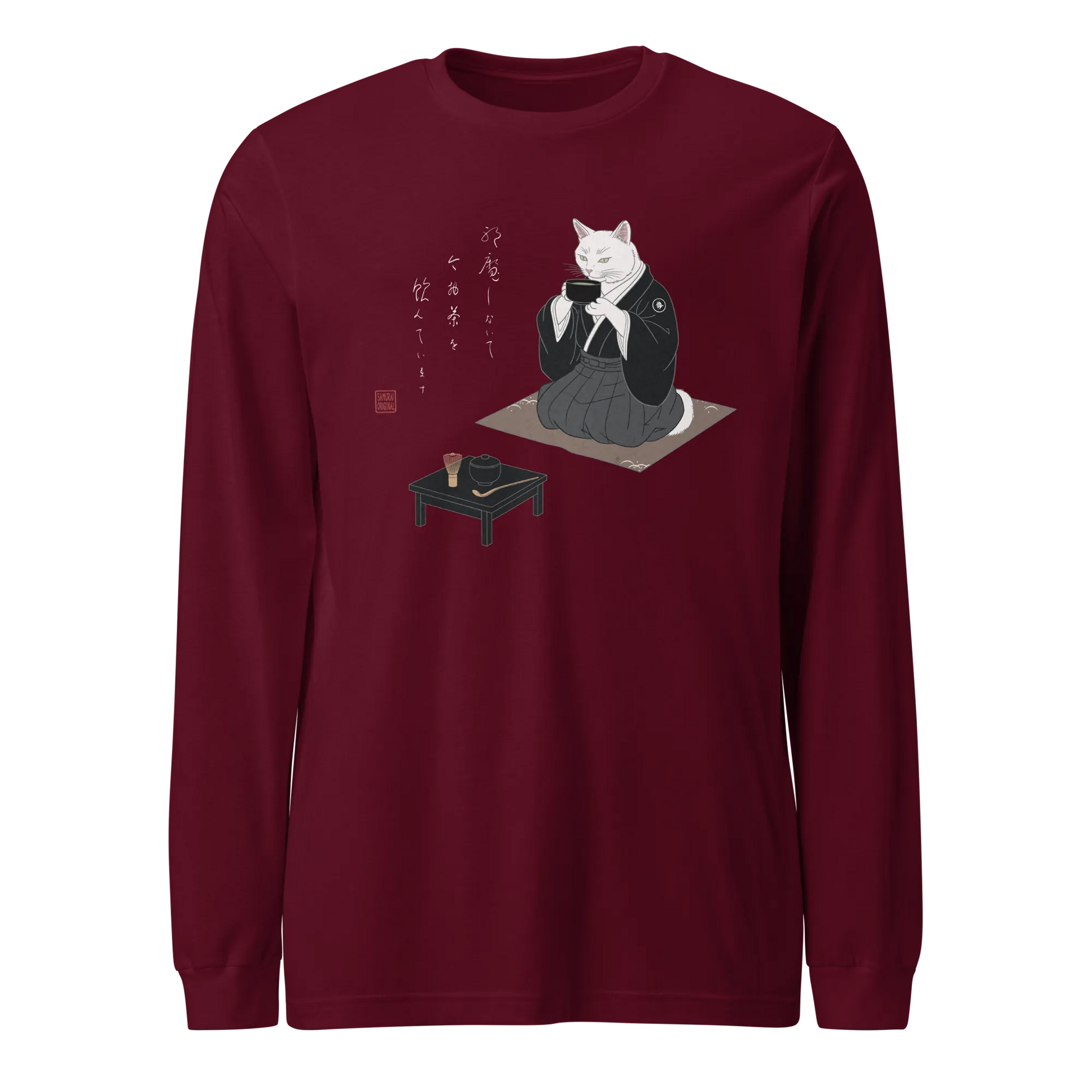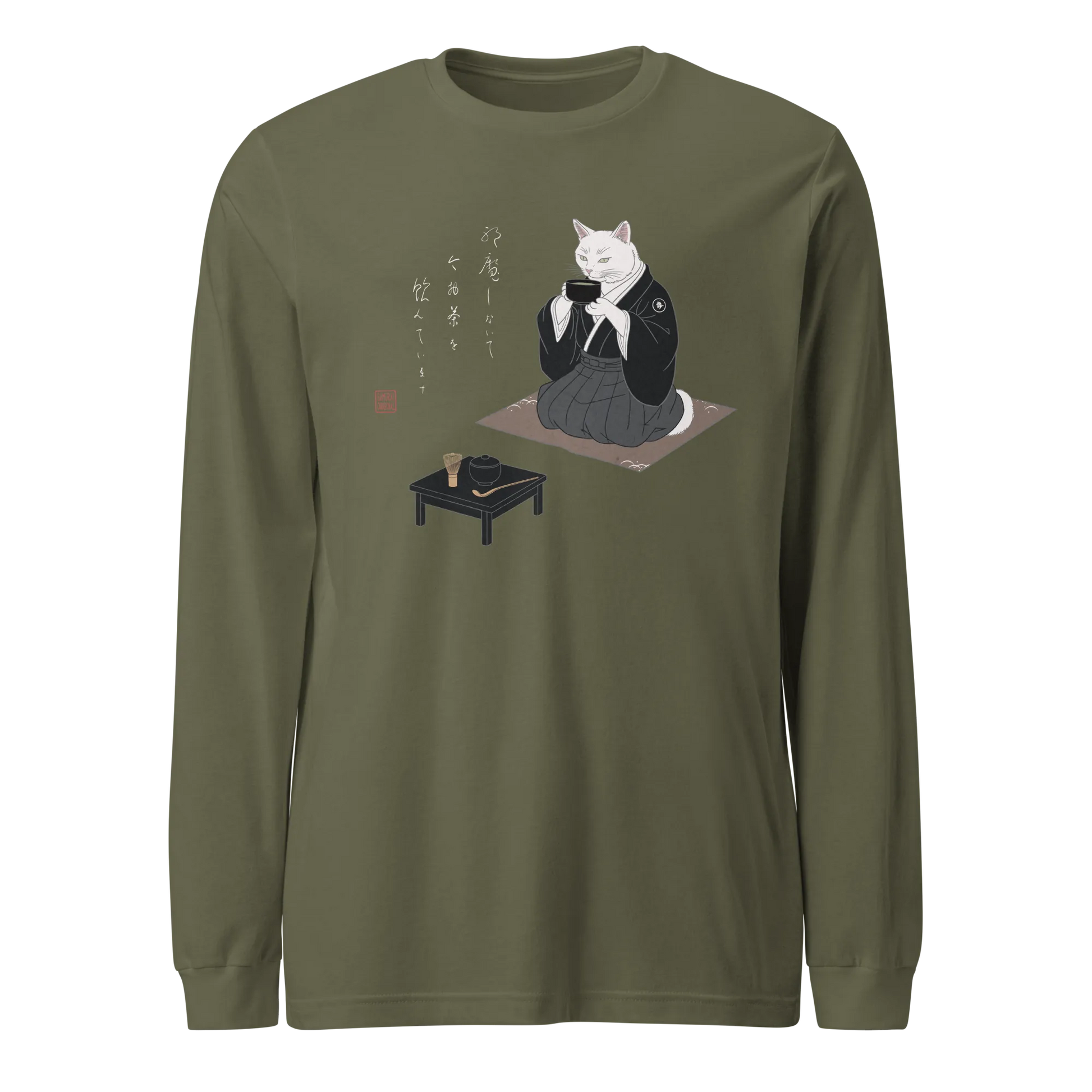 Samurai Cat Tea Time Tee Japanese Ukiyo-e Unisex Long Sleeve Tee