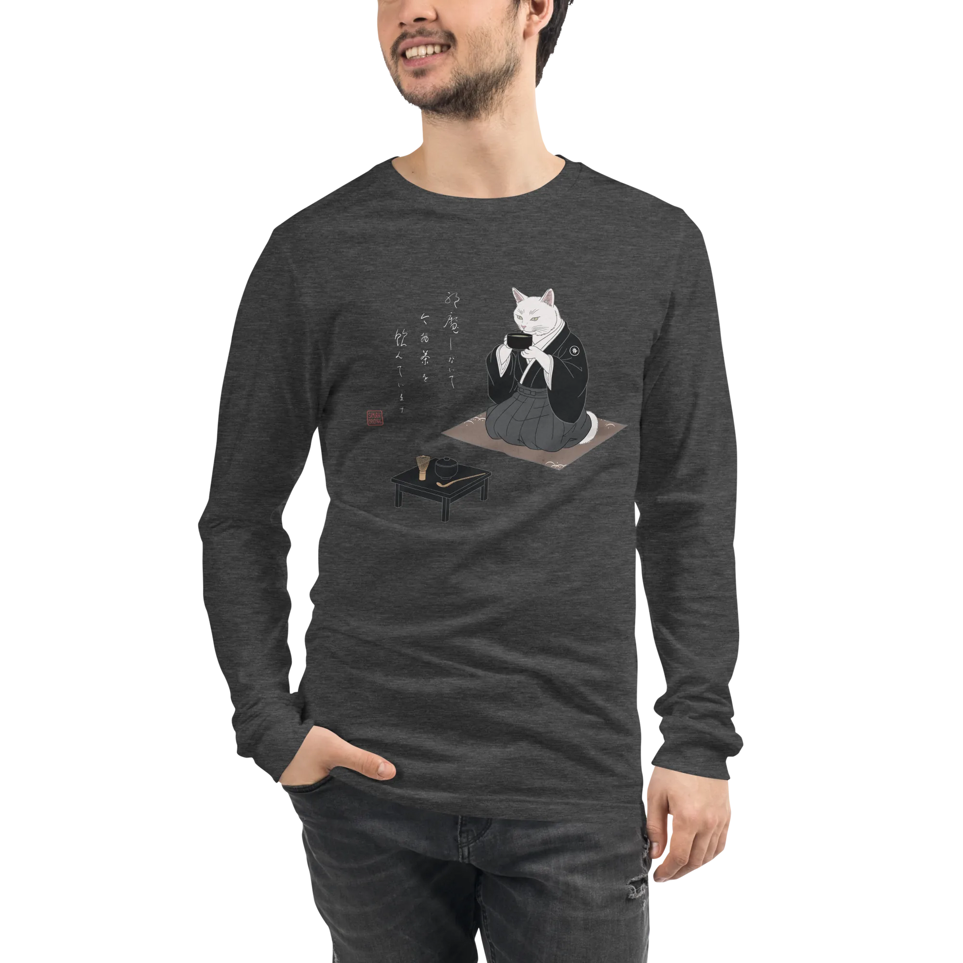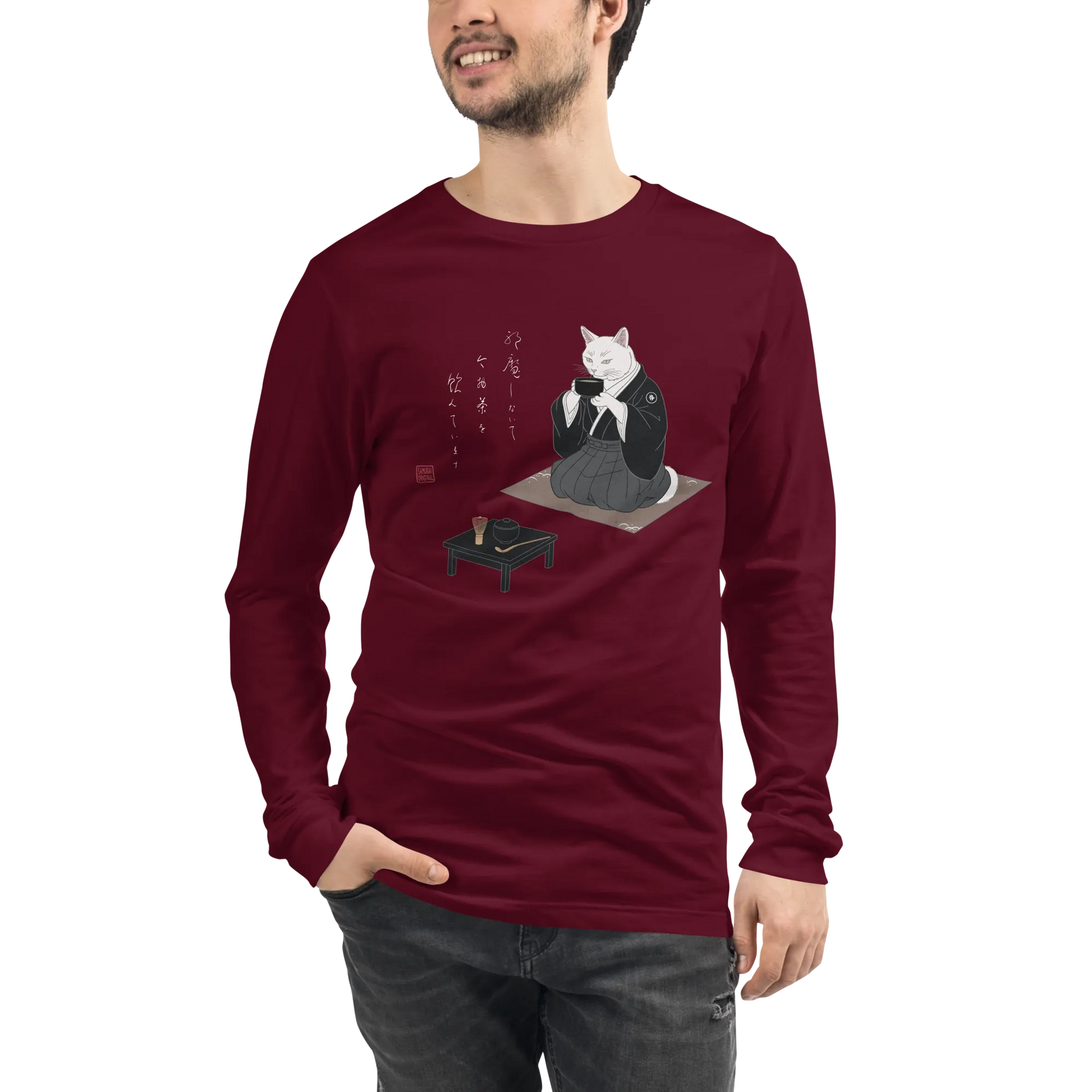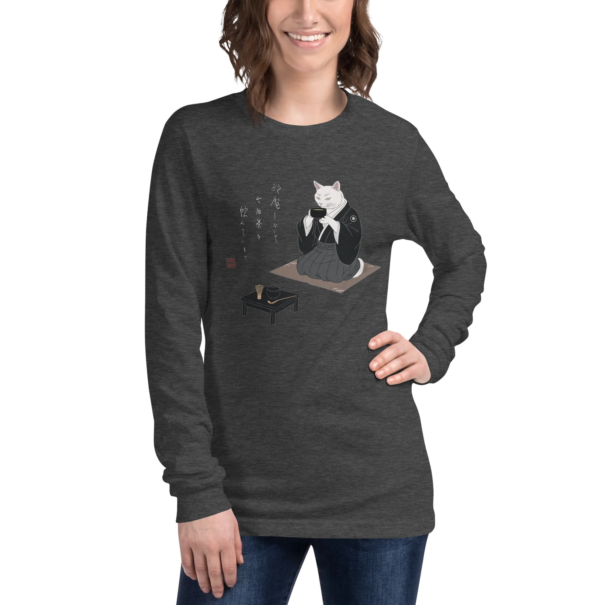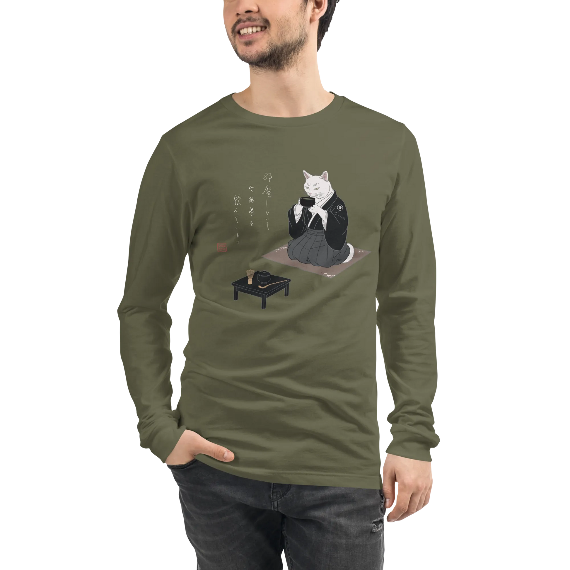Samurai Cat Tea Time Tee Japanese Ukiyo-e Unisex Long Sleeve Tee