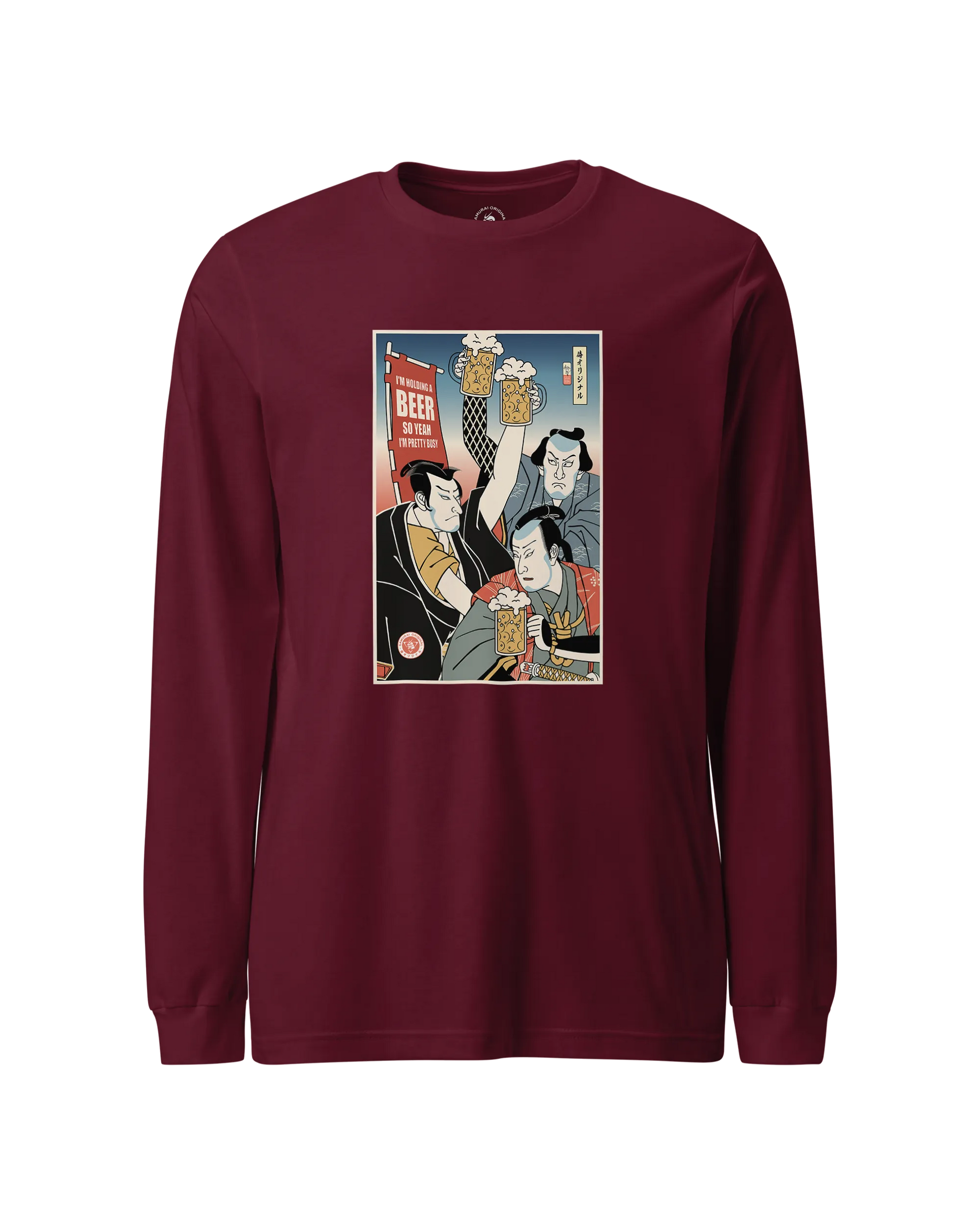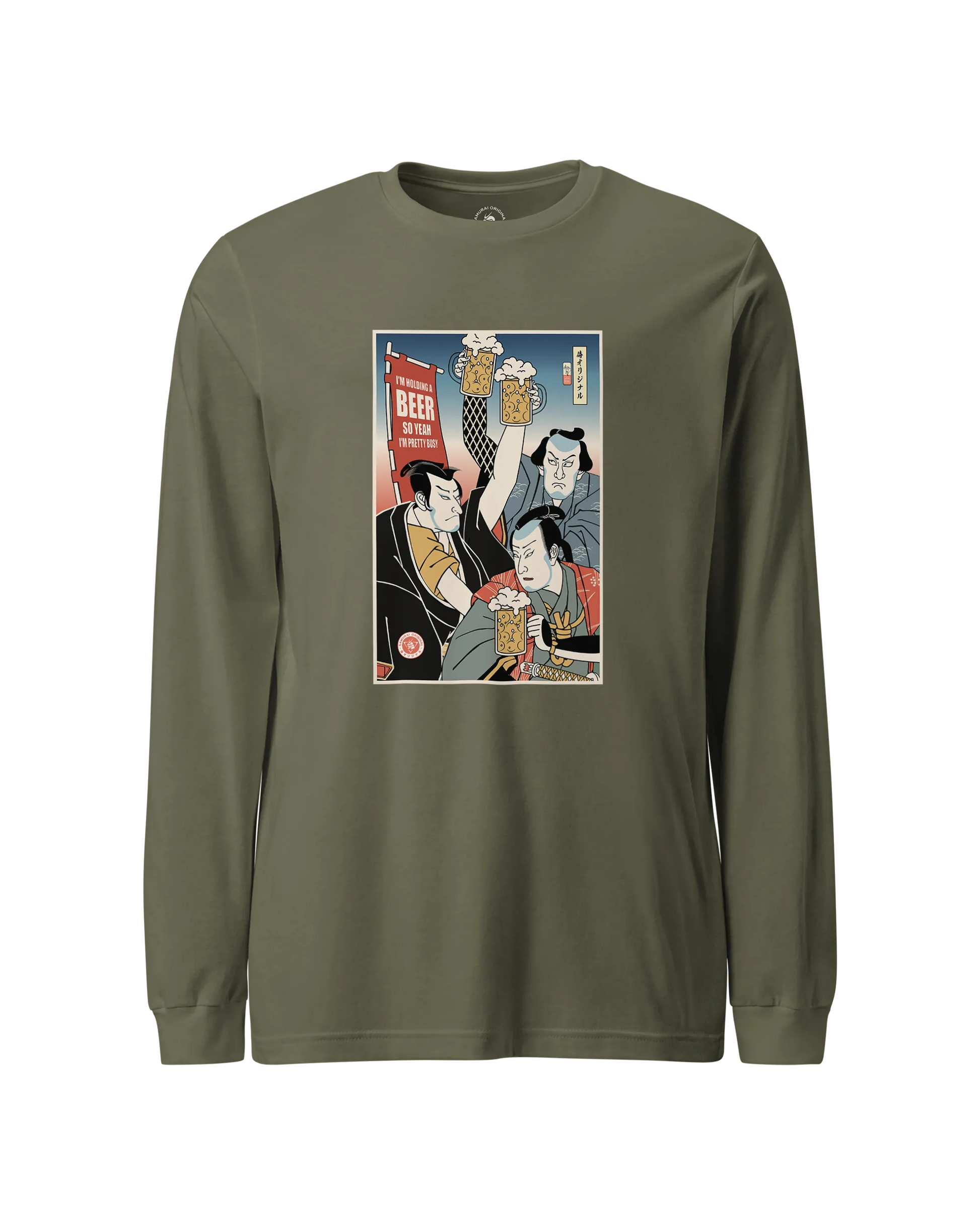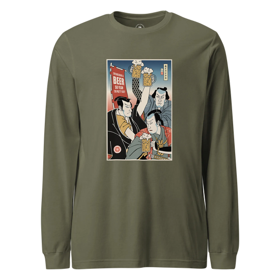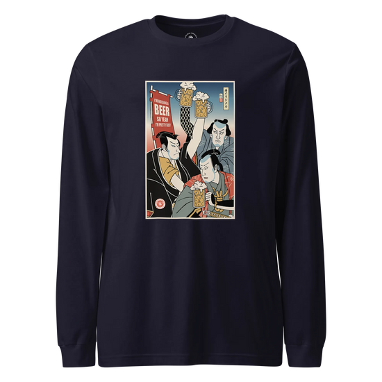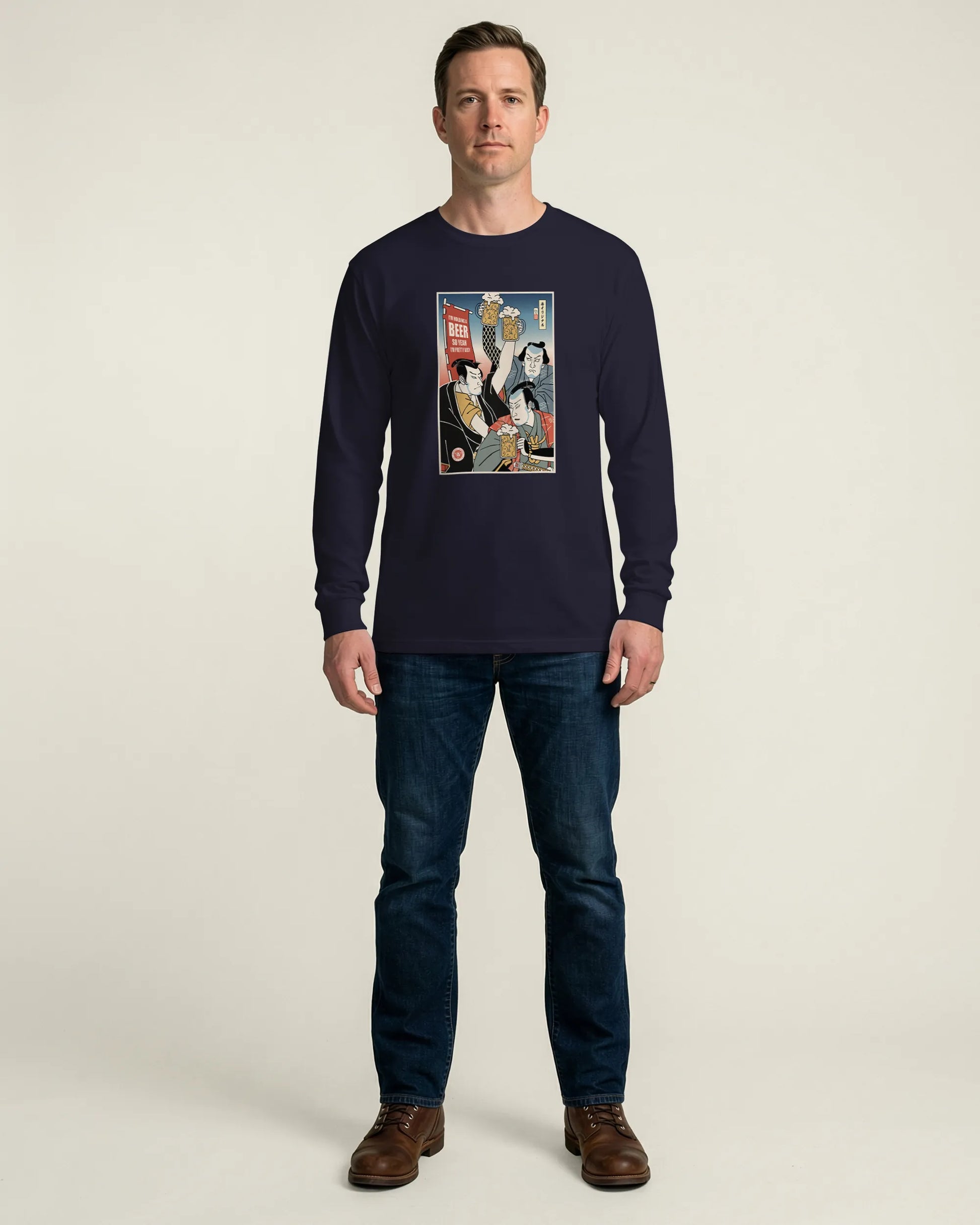 Samurai Drink Beer Ukiyo-e Funny Unisex Long Sleeve Tee No.5