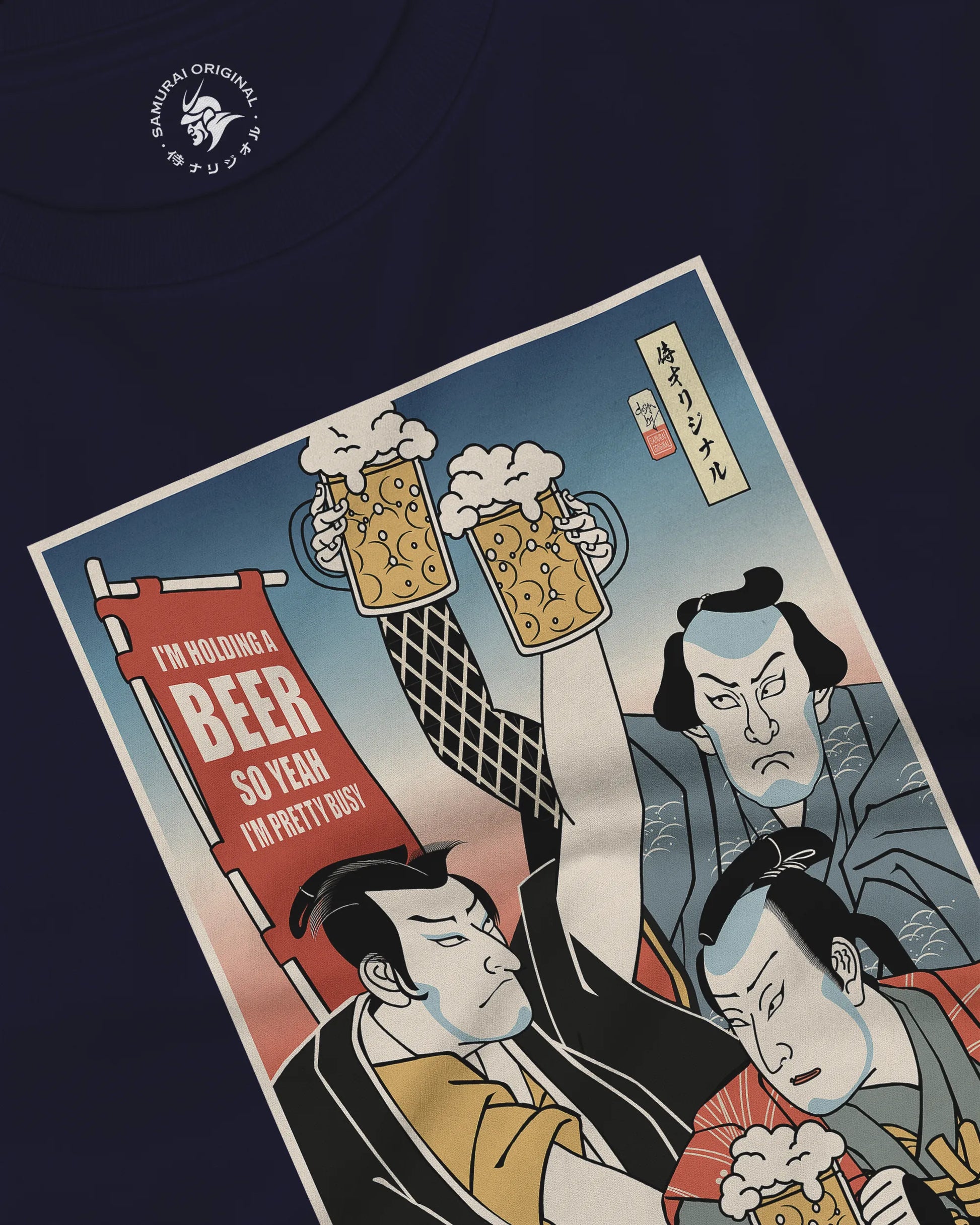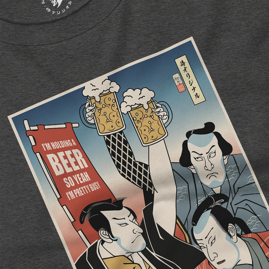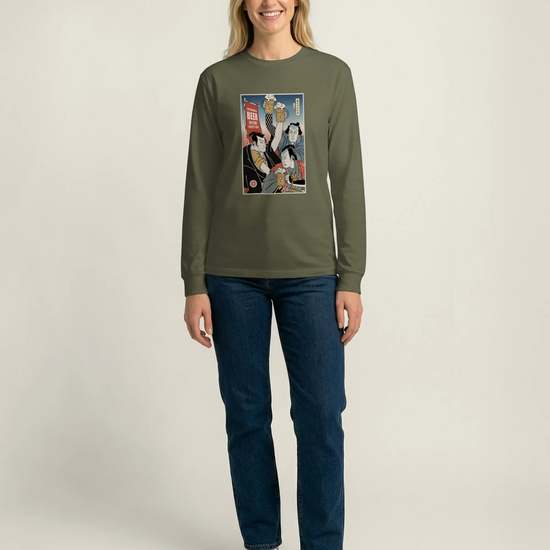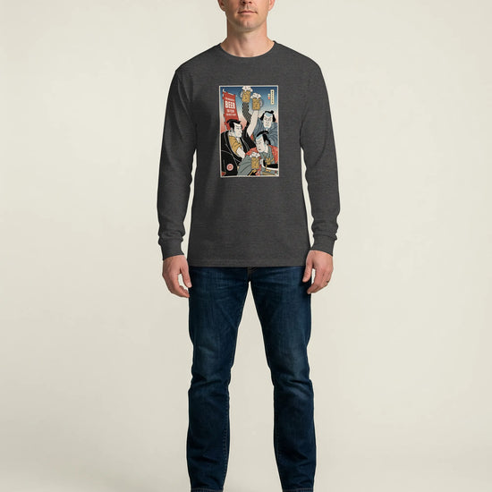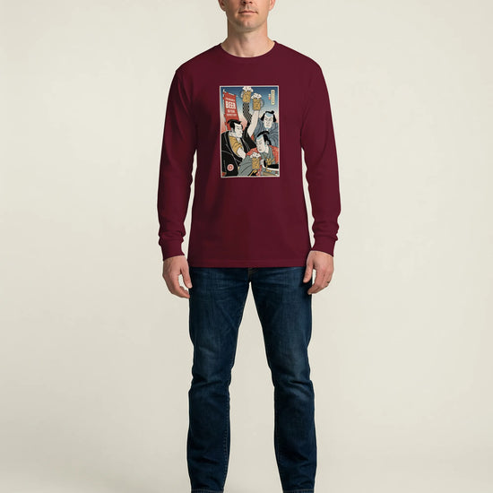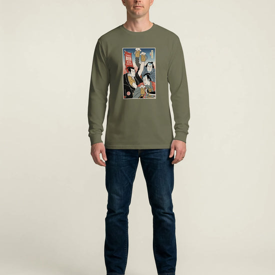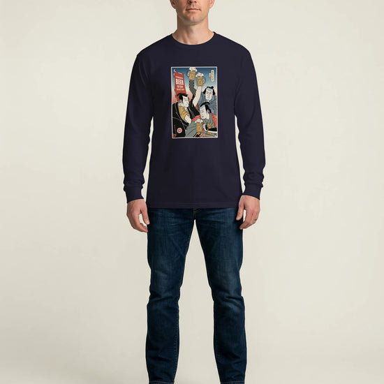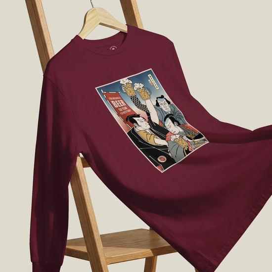 Samurai Drink Beer Ukiyo-e Funny Unisex Long Sleeve Tee No.5