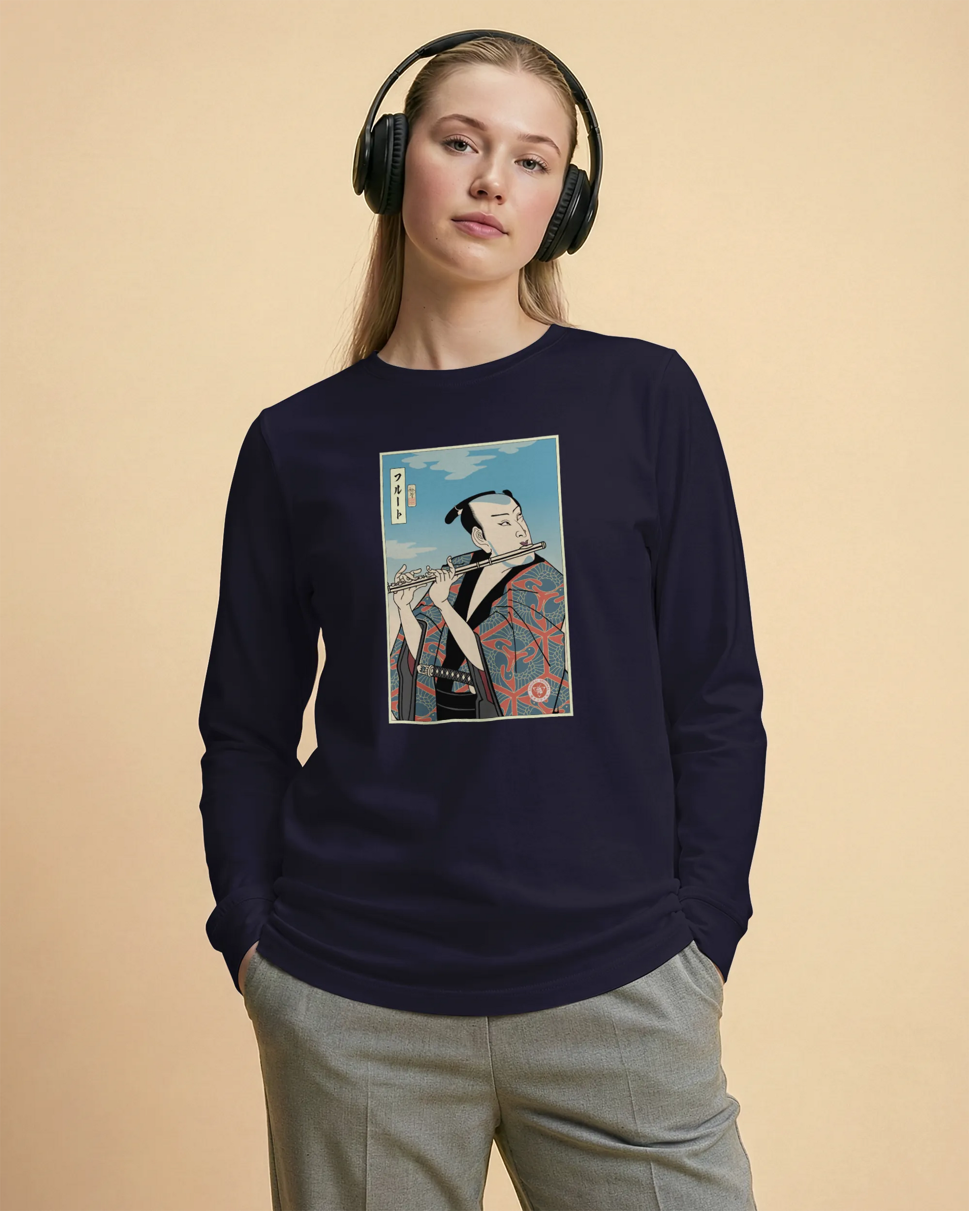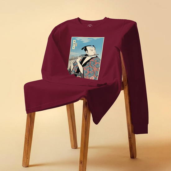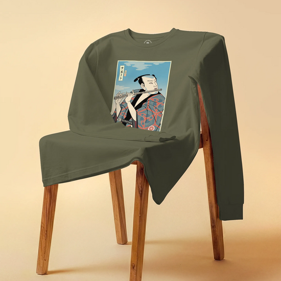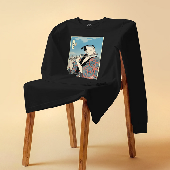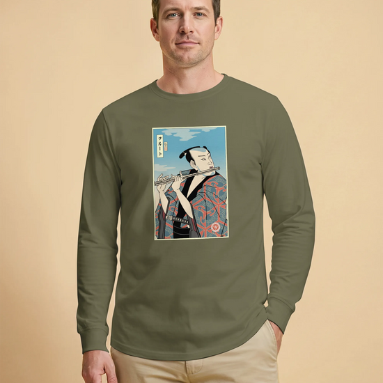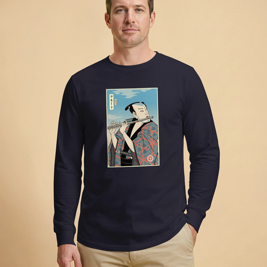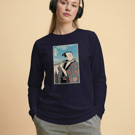 Samurai Flute Player Music Ukiyo-e Unisex Long Sleeve Tee