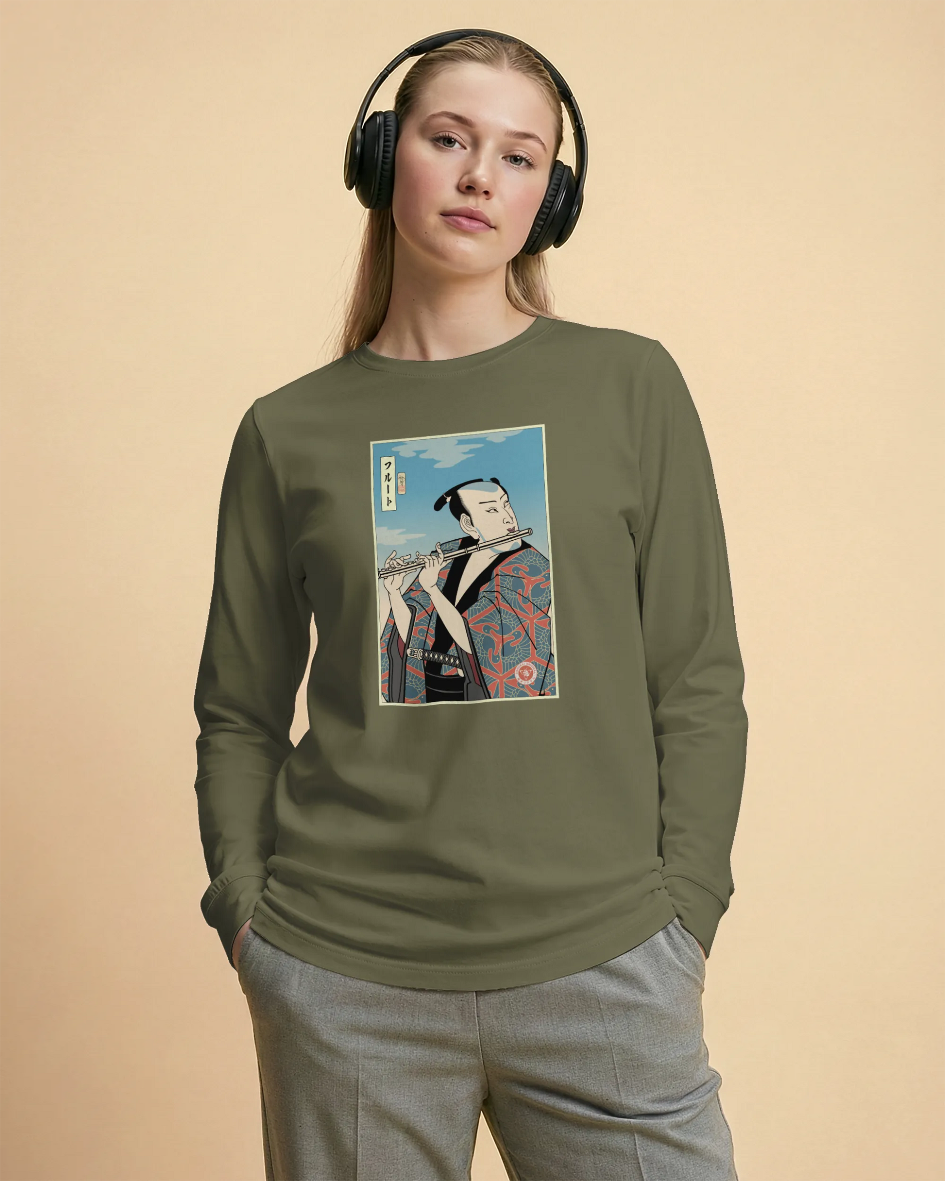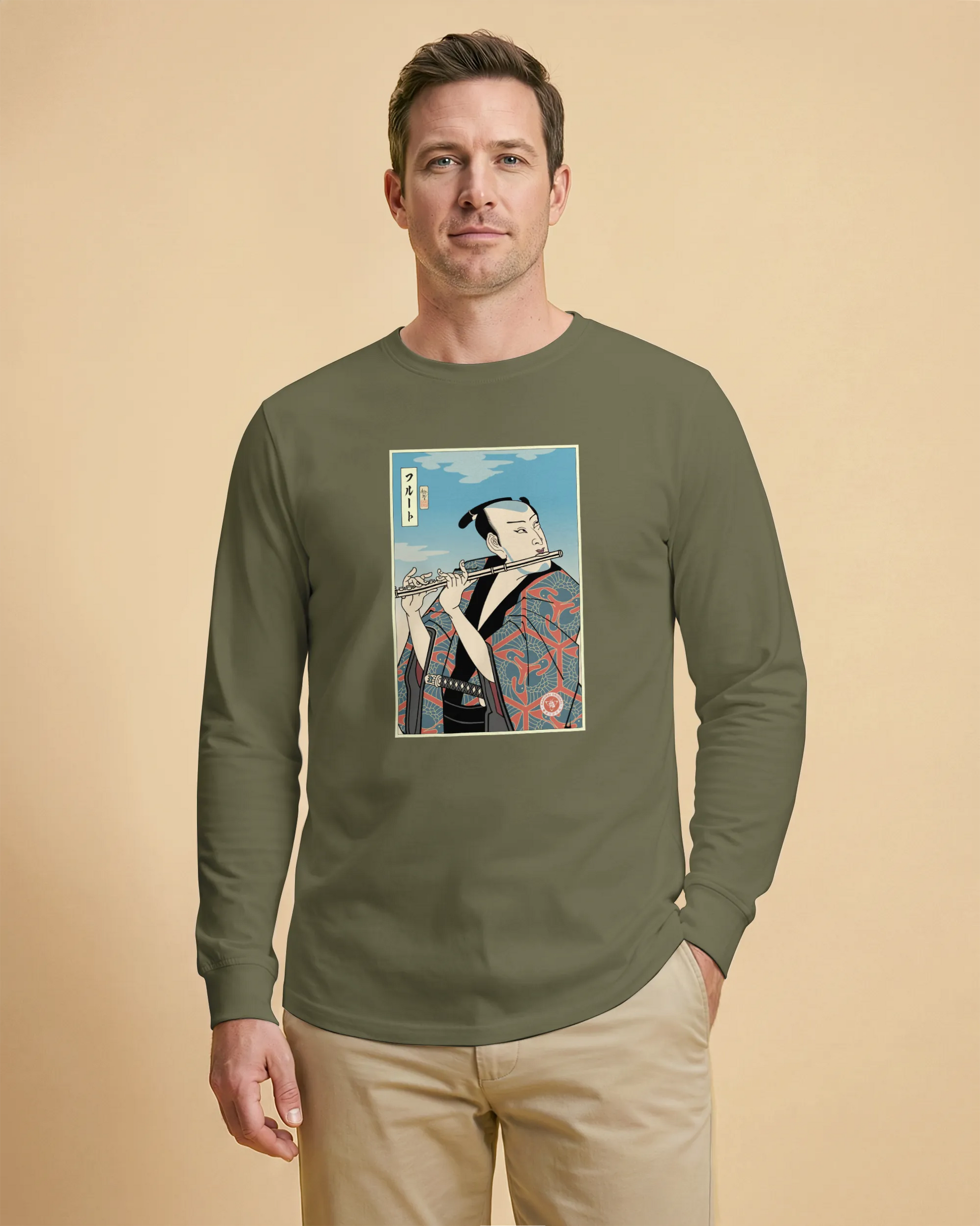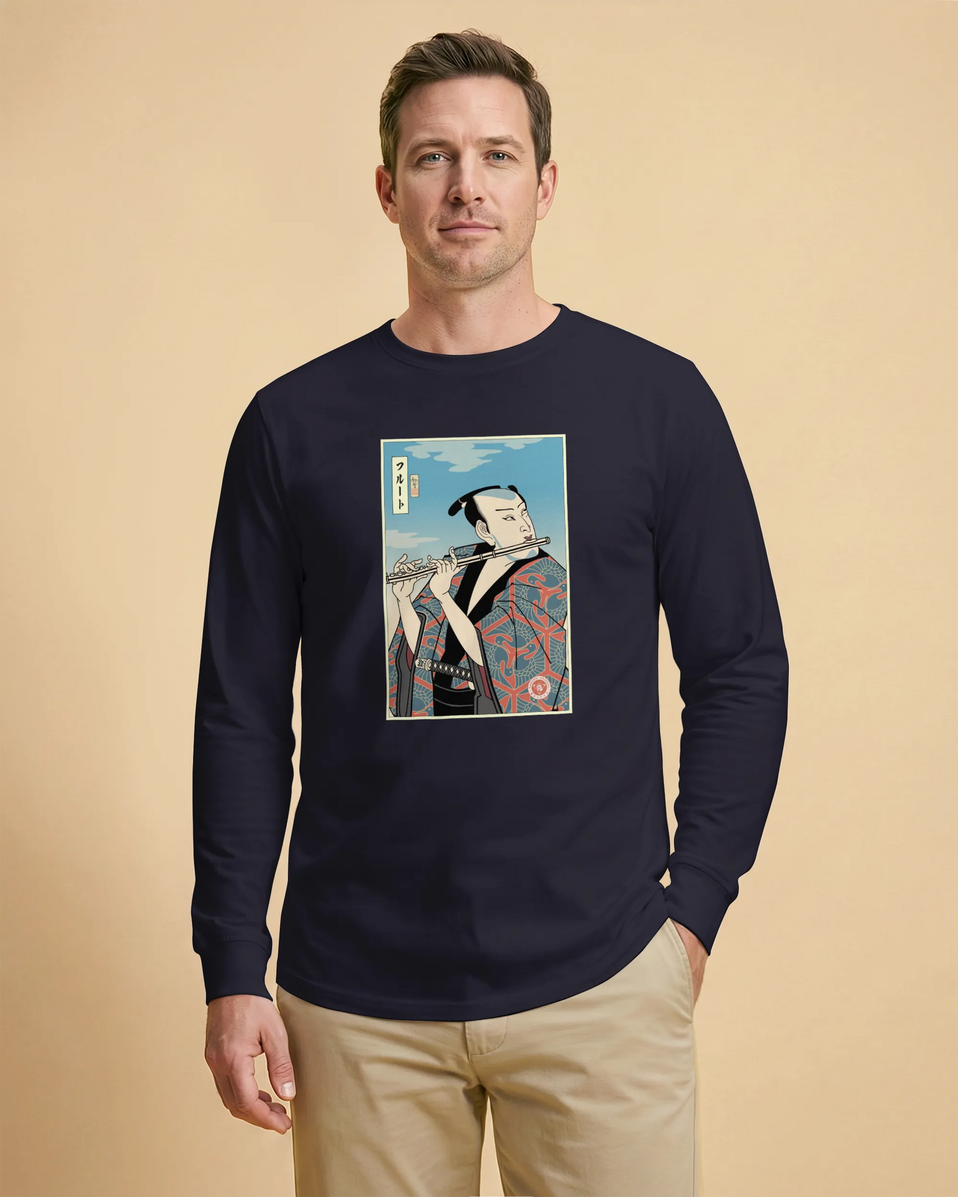 Samurai Flute Player Music Ukiyo-e Unisex Long Sleeve Tee