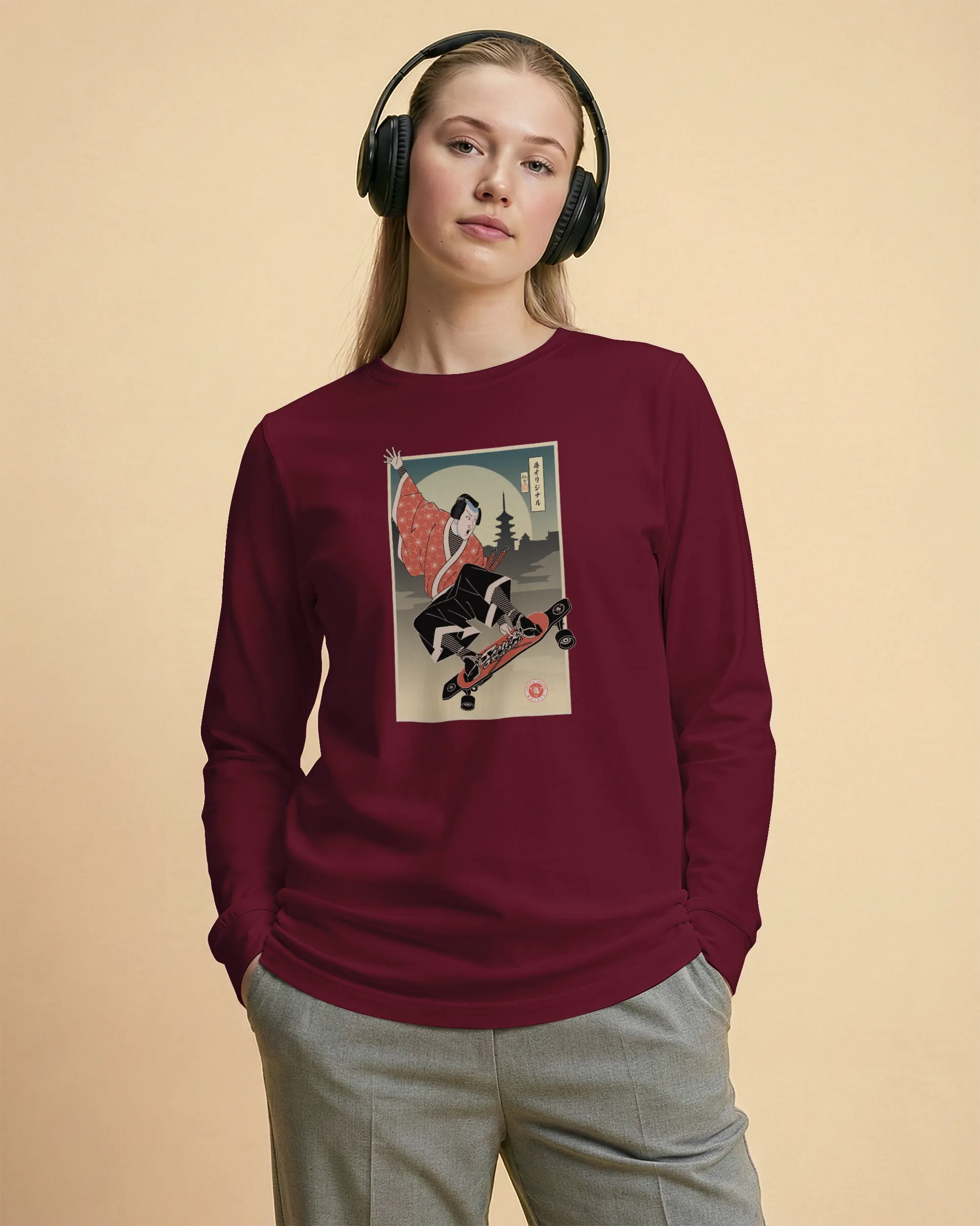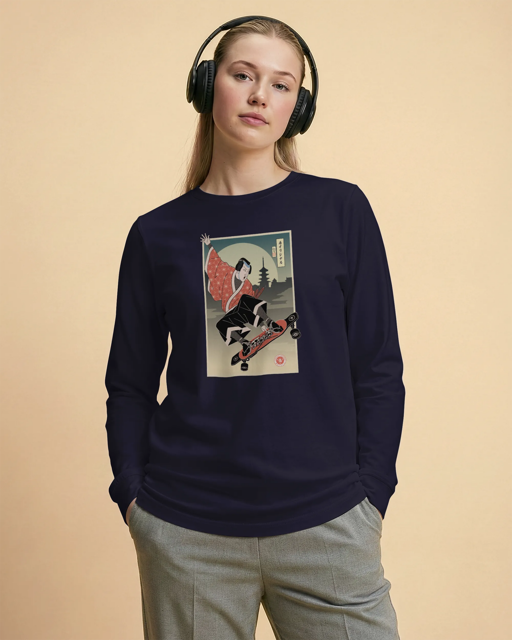 Samurai Longboard Ukiyo-e Unisex Long Sleeve Tee
