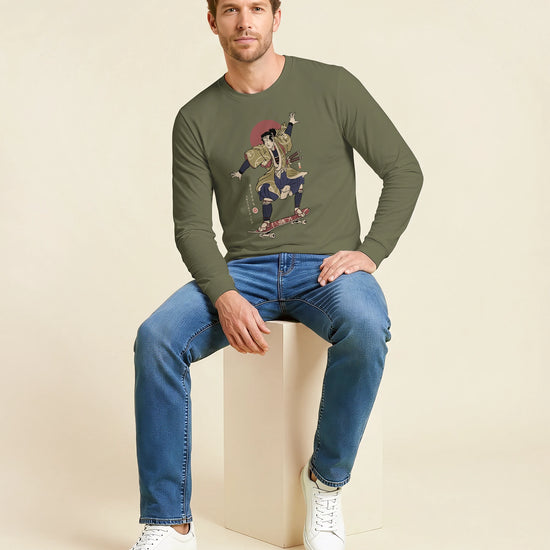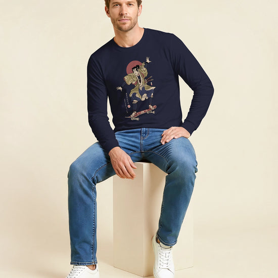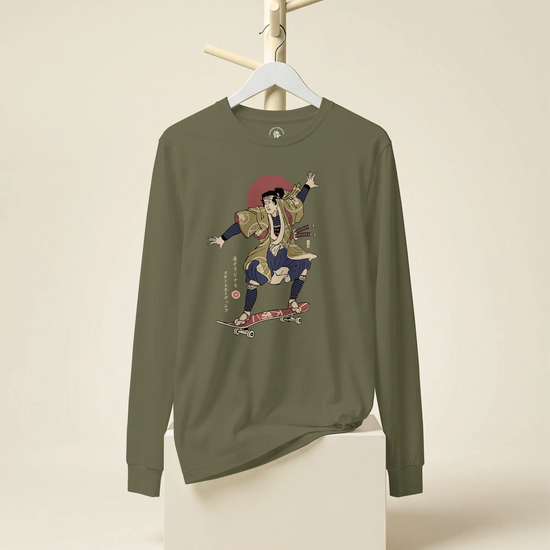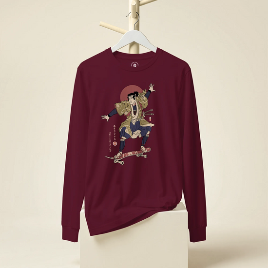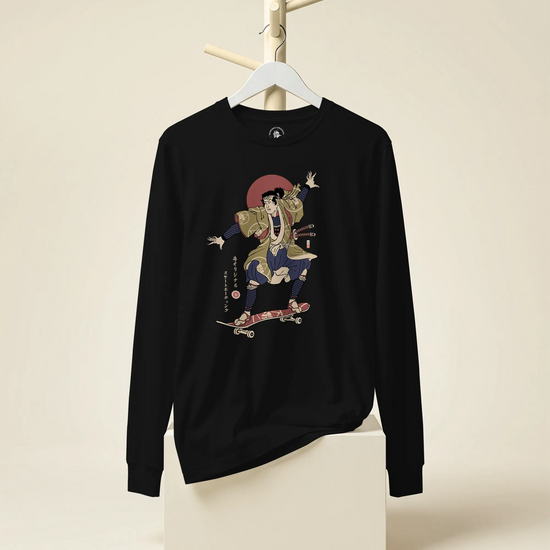 Samurai Skateboard Ukiyo-e Unisex Long Sleeve Tee