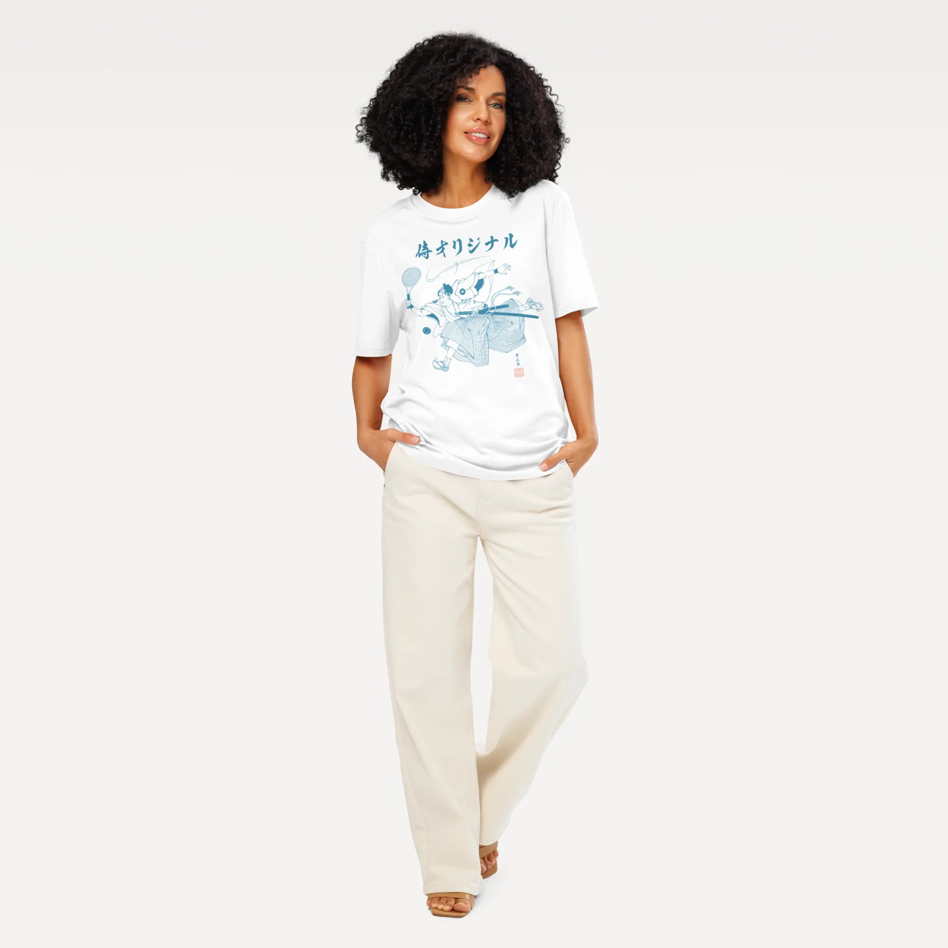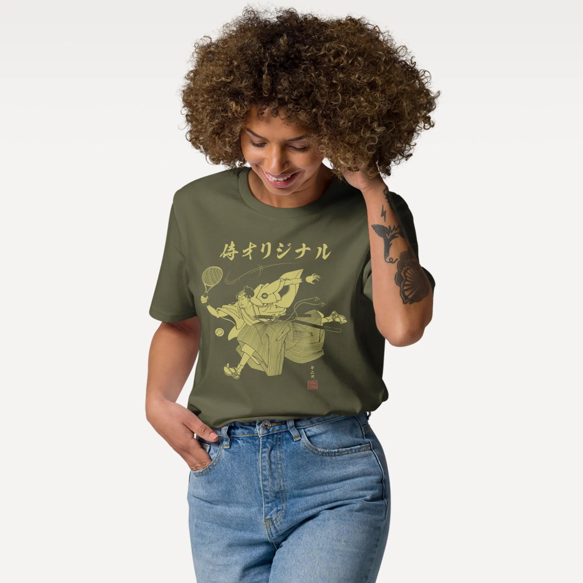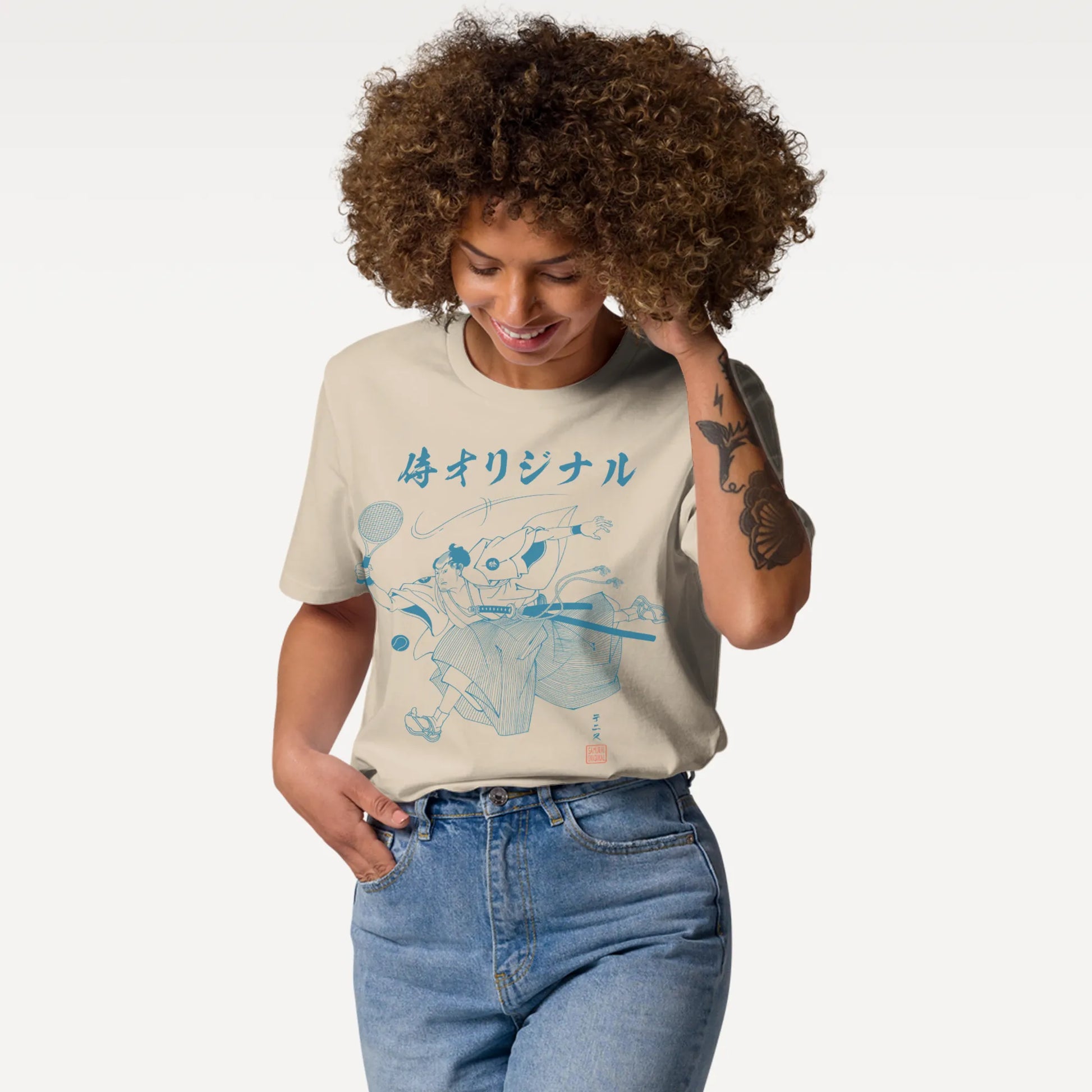 Samurai Tennis Japanese Ukiyo-e Unisex Organic T-shirt No.3