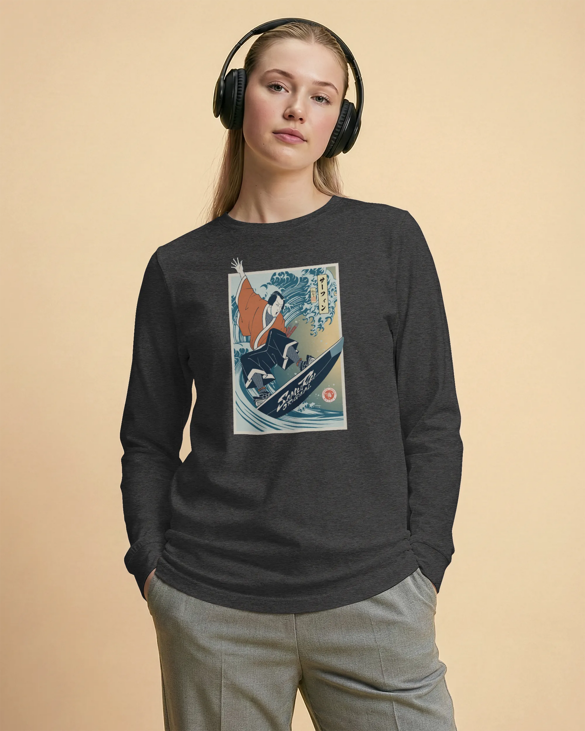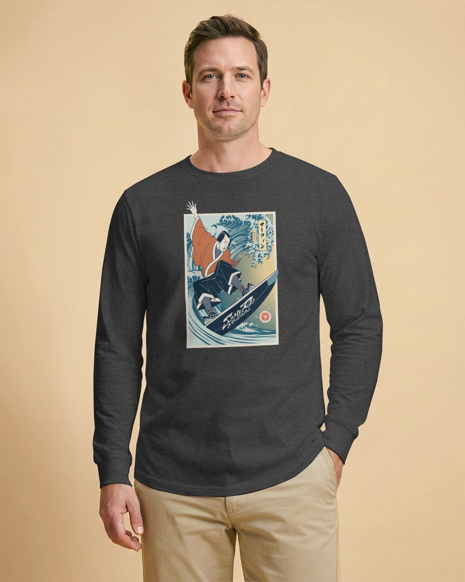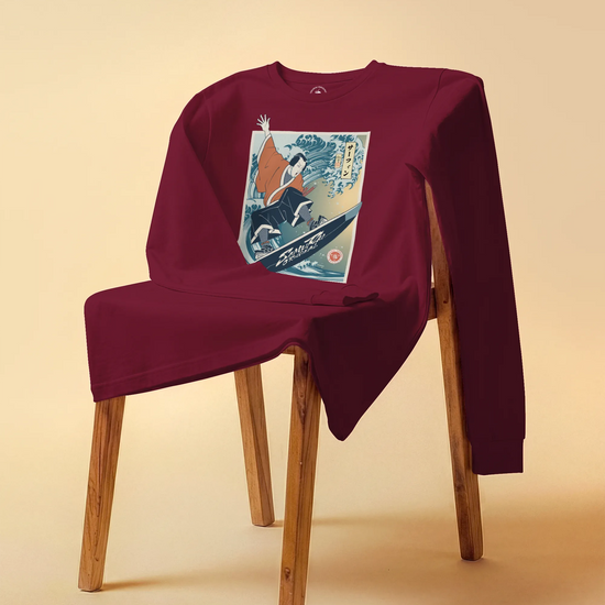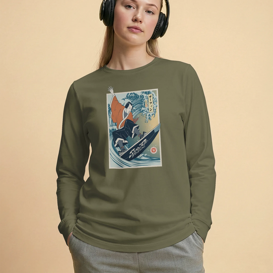 Samurai Surfing Water Sport Ukiyo-e Unisex Long Sleeve Tee