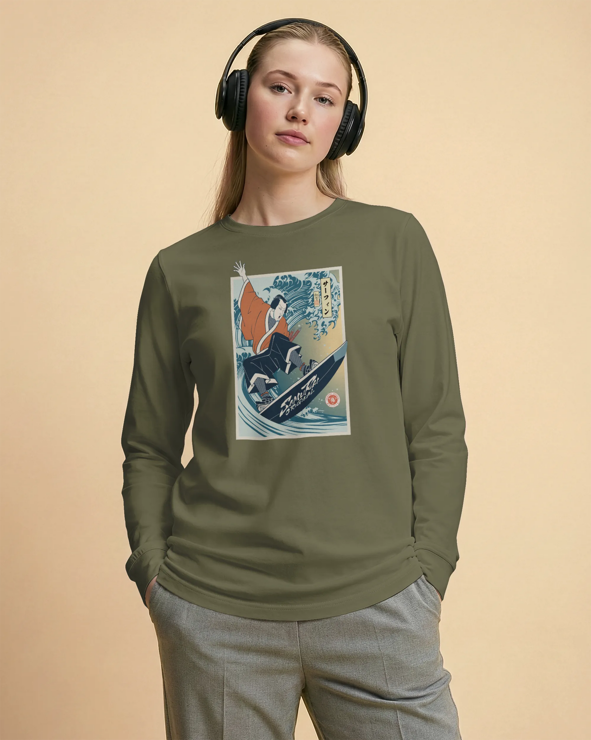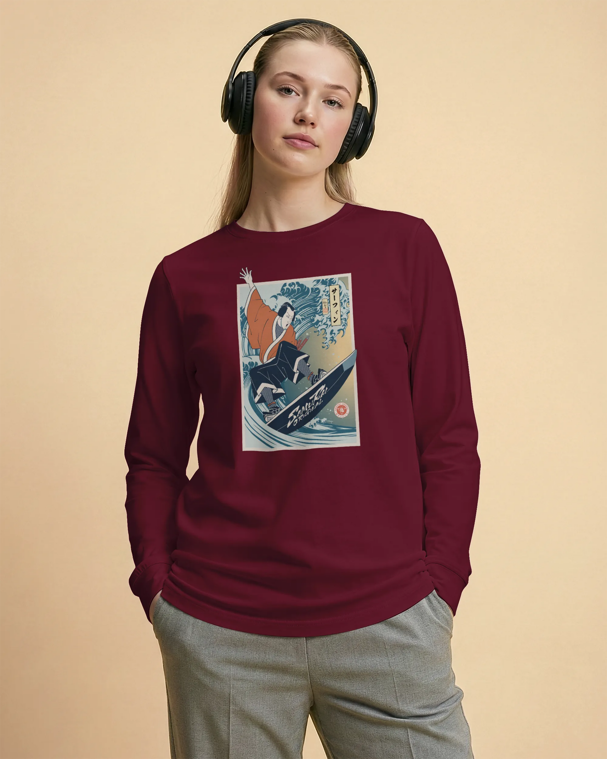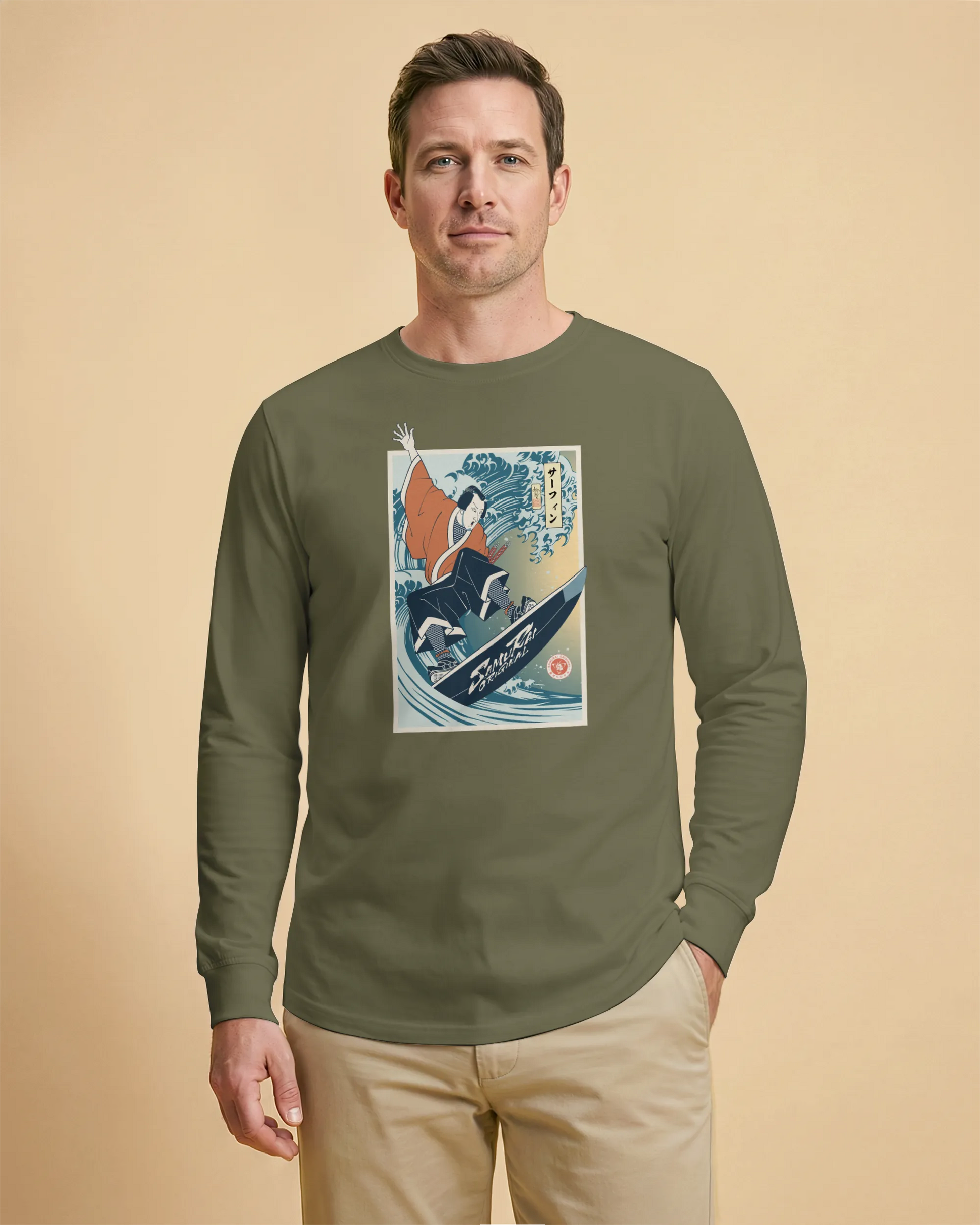 Samurai Surfing Water Sport Ukiyo-e Unisex Long Sleeve Tee