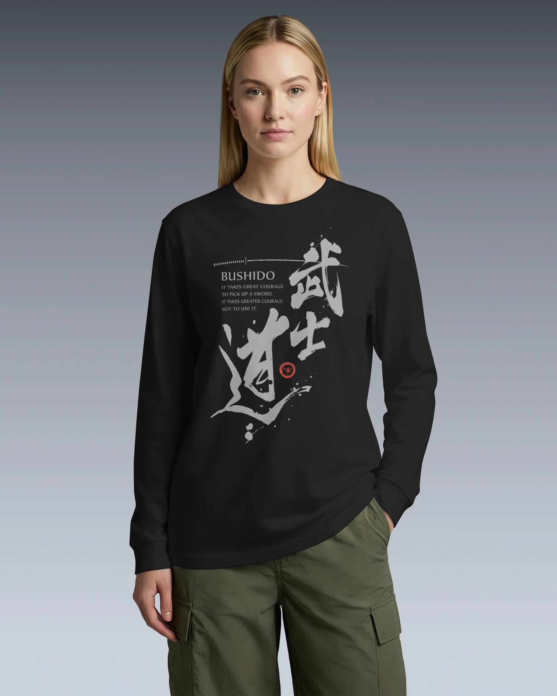 Bushido Quote Kanji Calligraphy Unisex Long Sleeve Tee