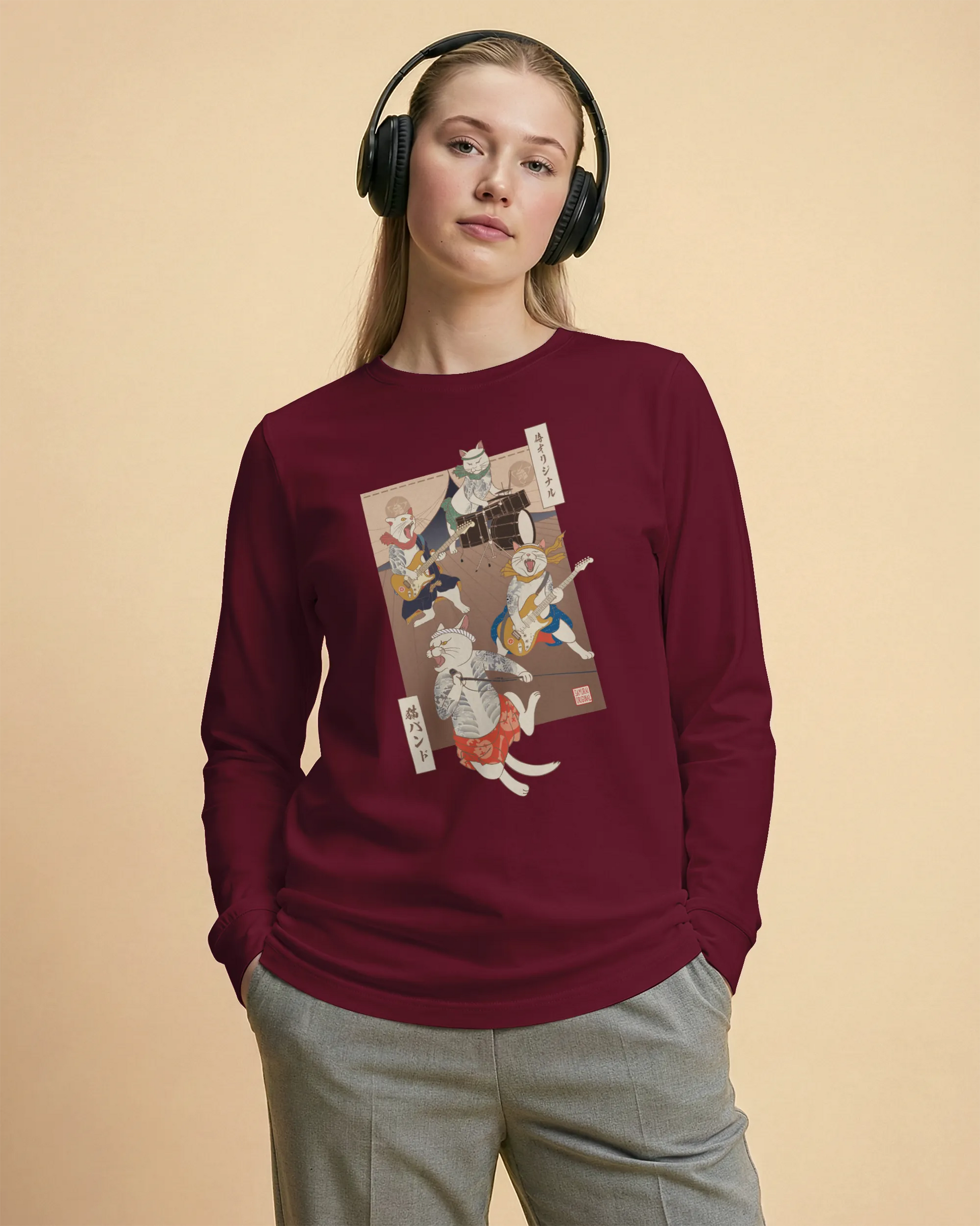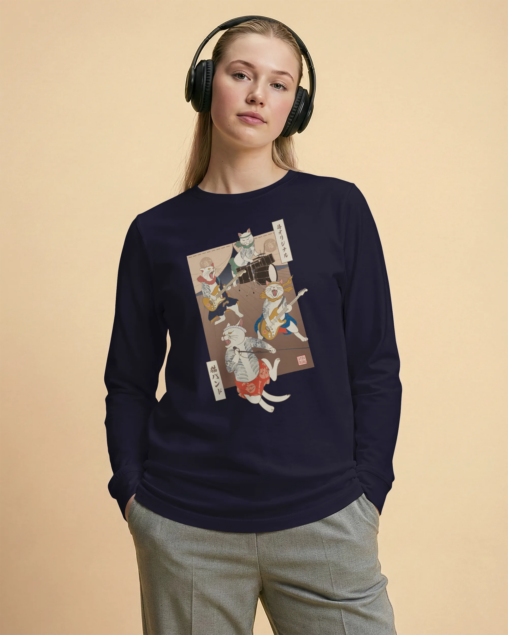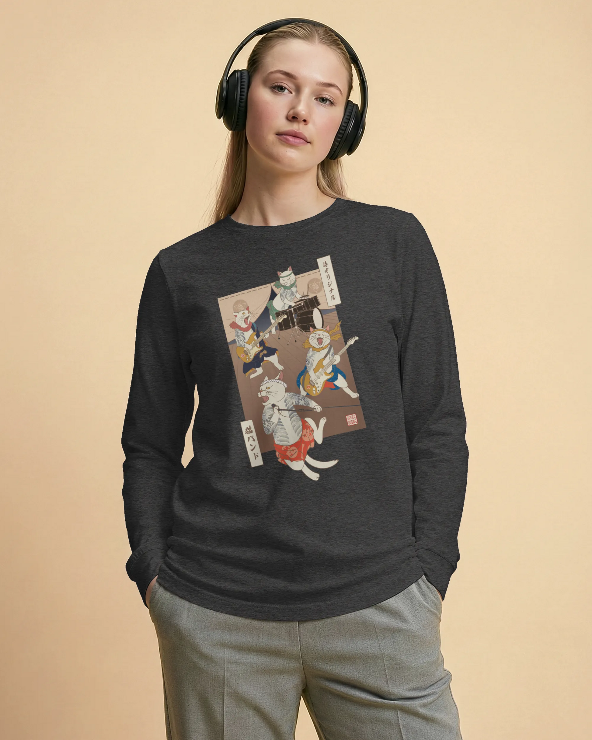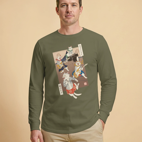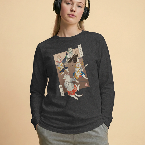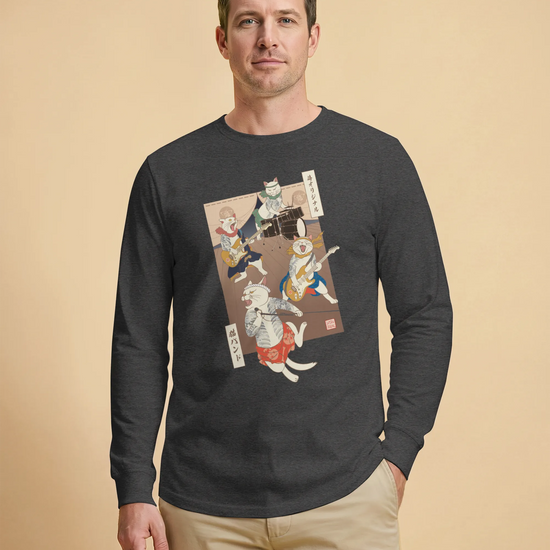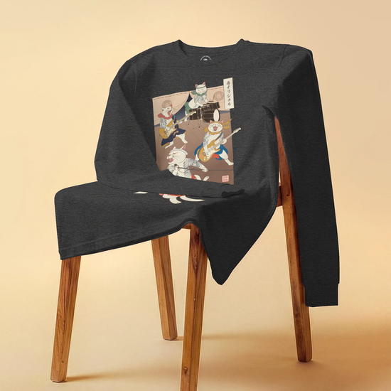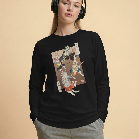 Ukiyo-e cat band long sleeve shirt are a unique and eye-catching fashion statement. They are a fusion of music, art, and Japanese culture. These t-shirts are perfect for people who love music, art, and Japanese culture.