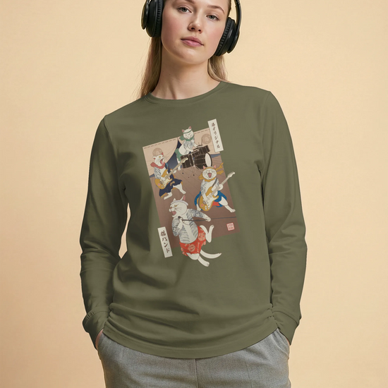 Cat Brand Music Japan Ukiyo-e Unisex Long Sleeve Tee