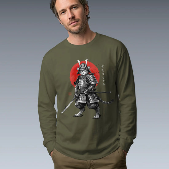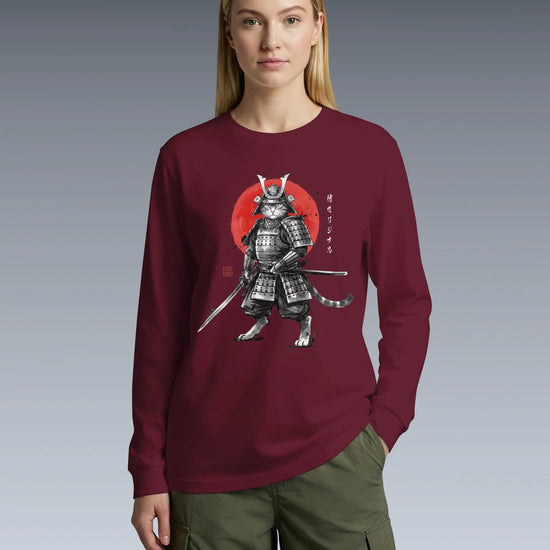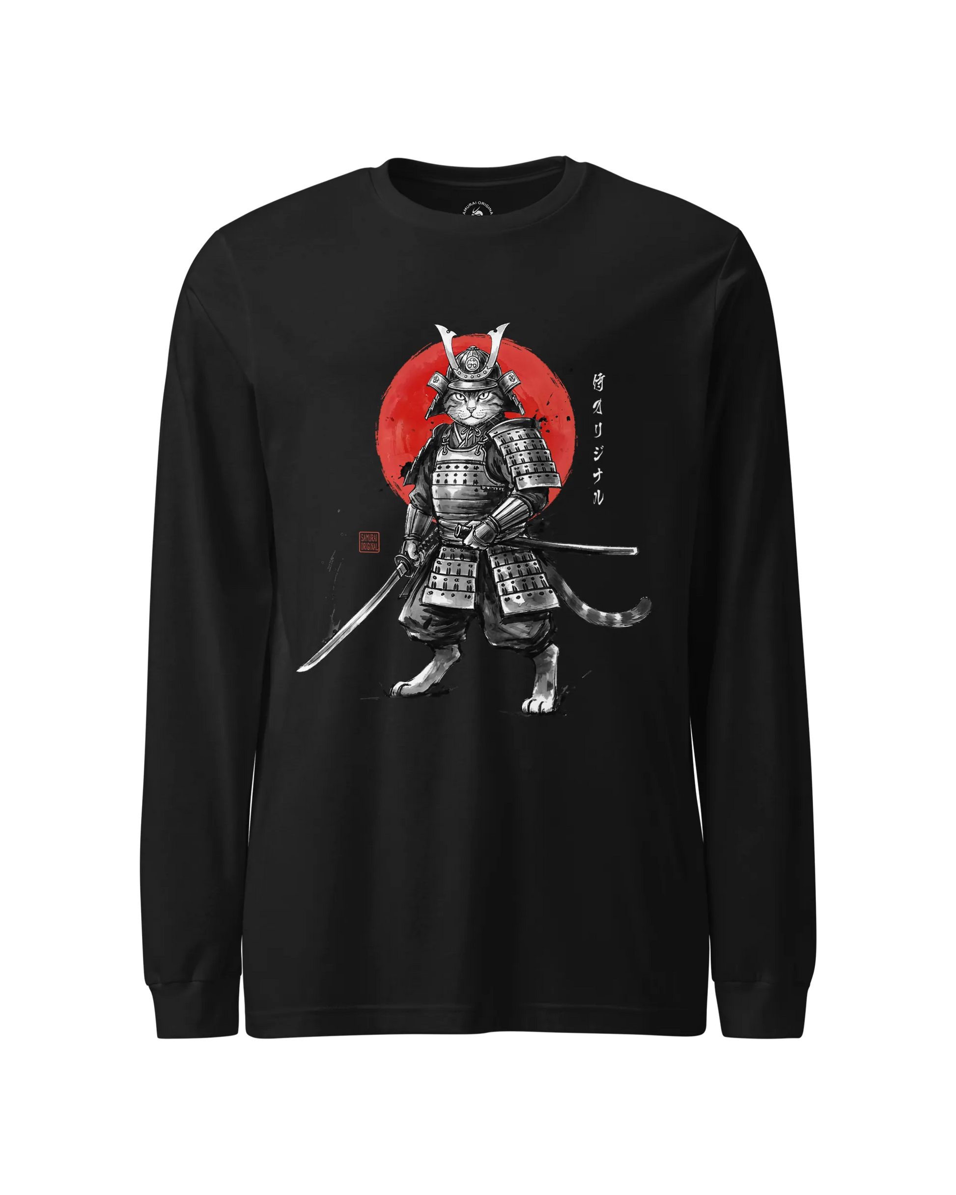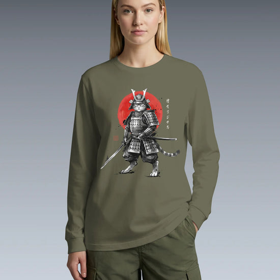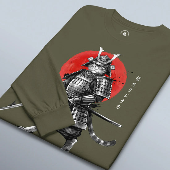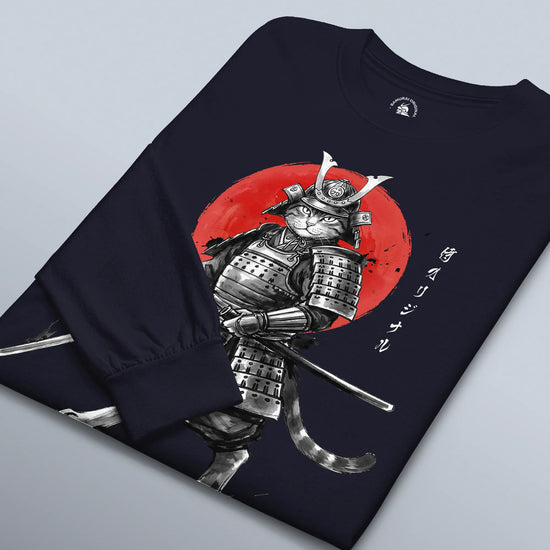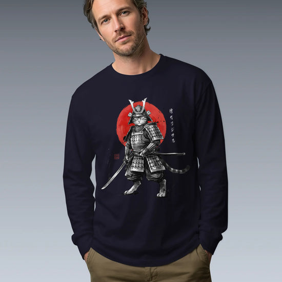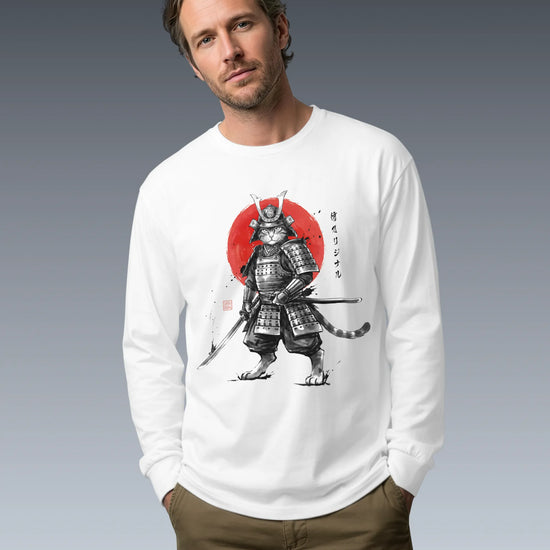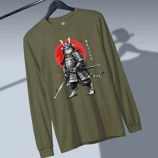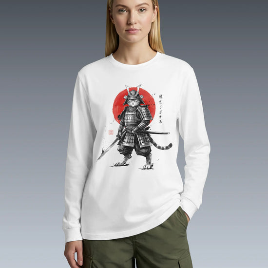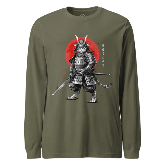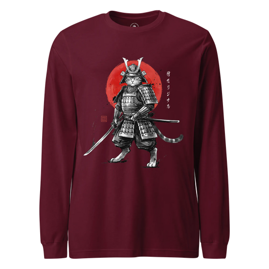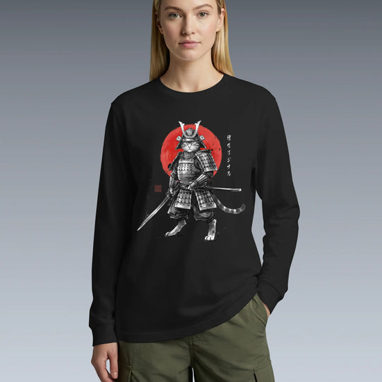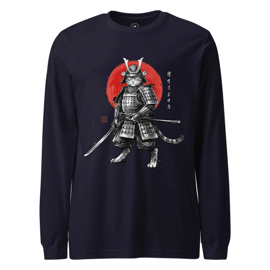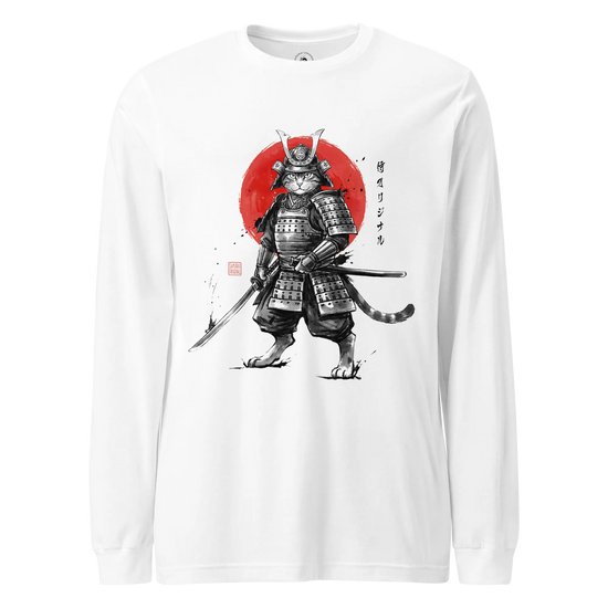 Cat Samurai Sumi-e Japanese Unisex Long Sleeve Tee