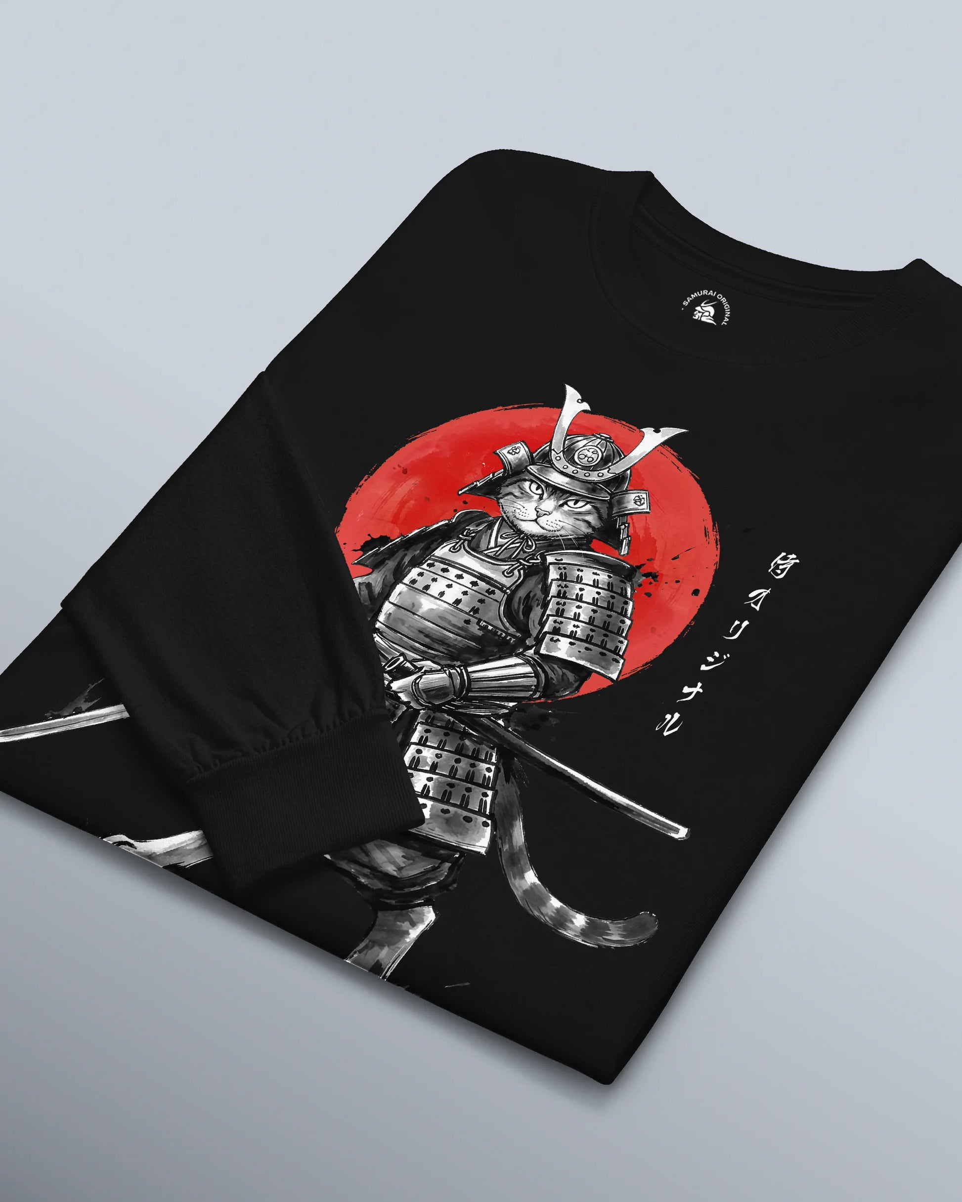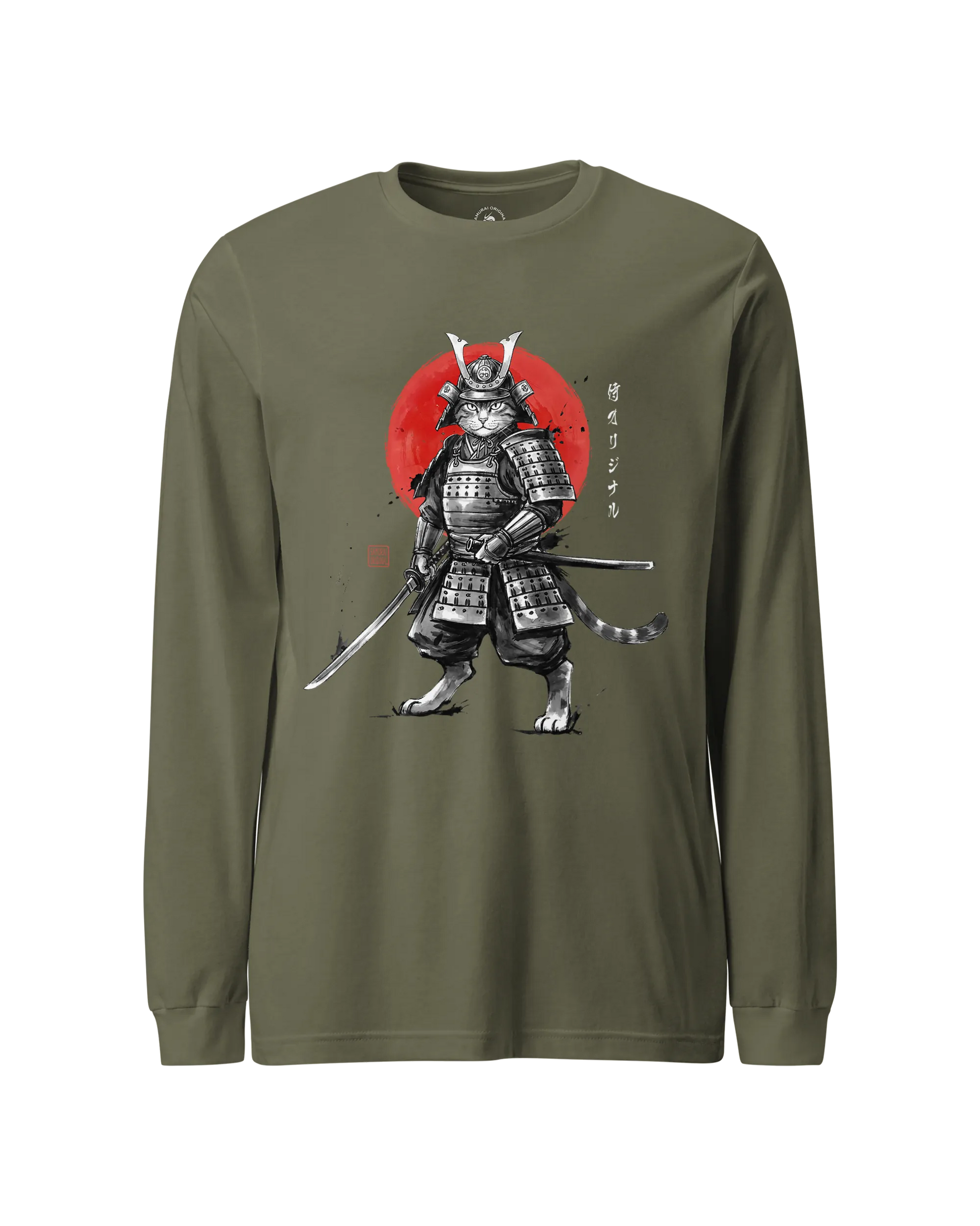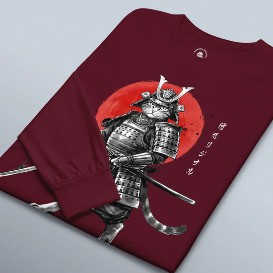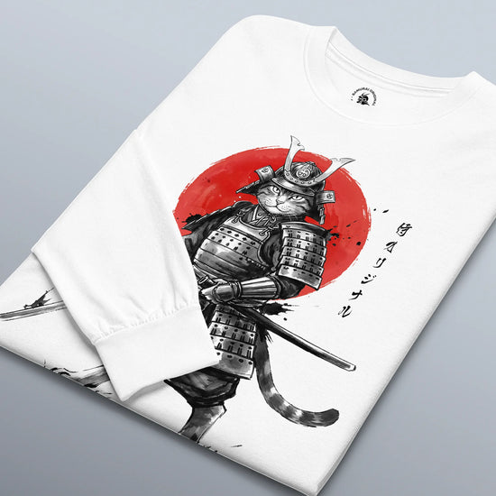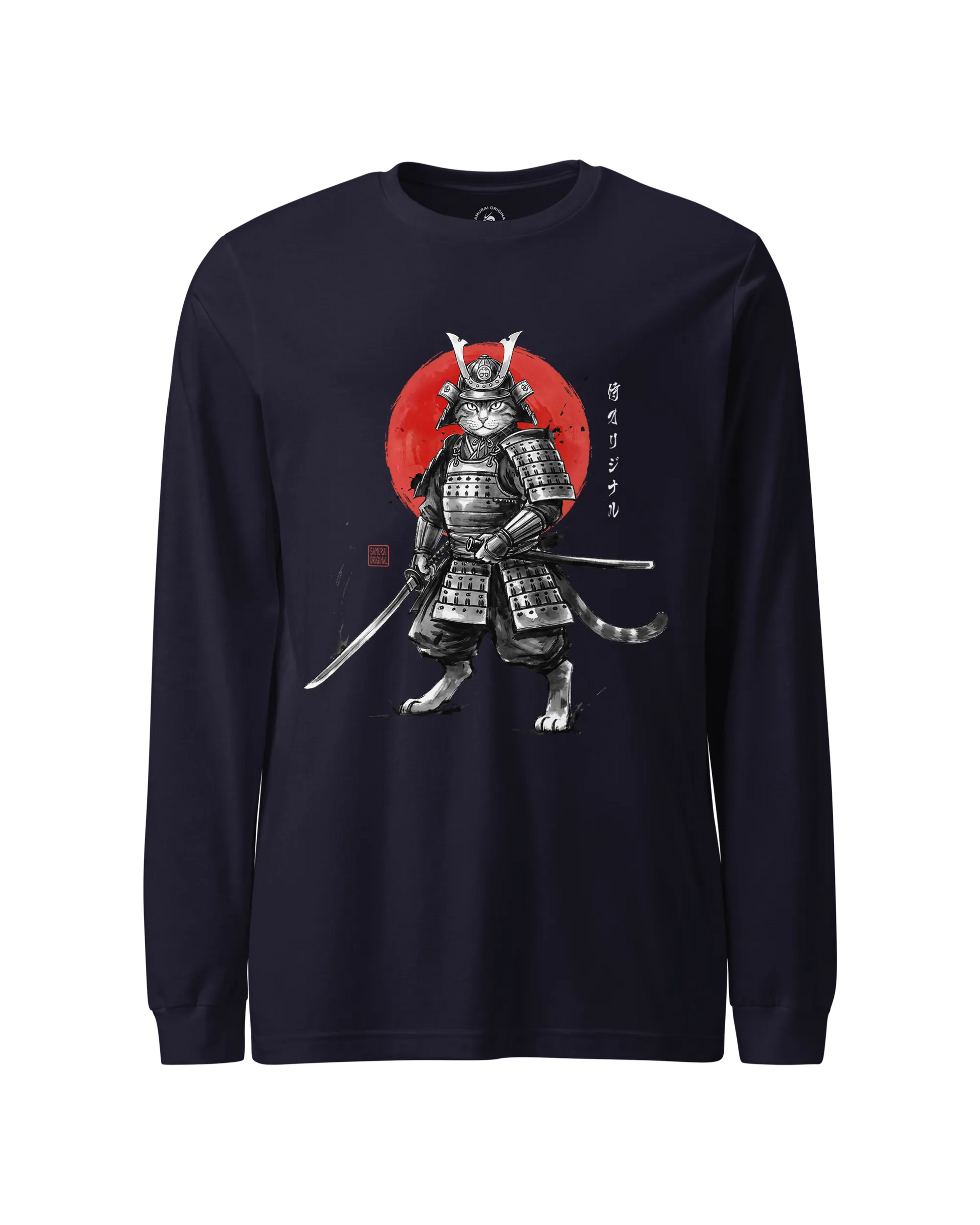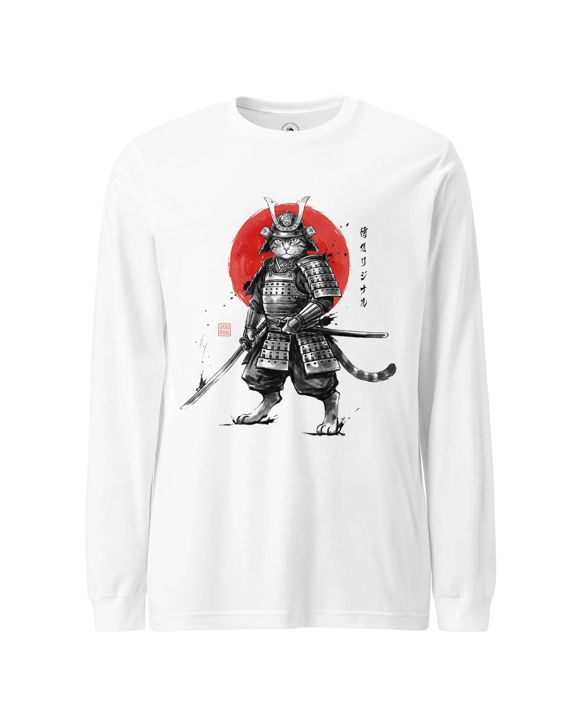 Cat Samurai Sumi-e Japanese Unisex Long Sleeve Tee