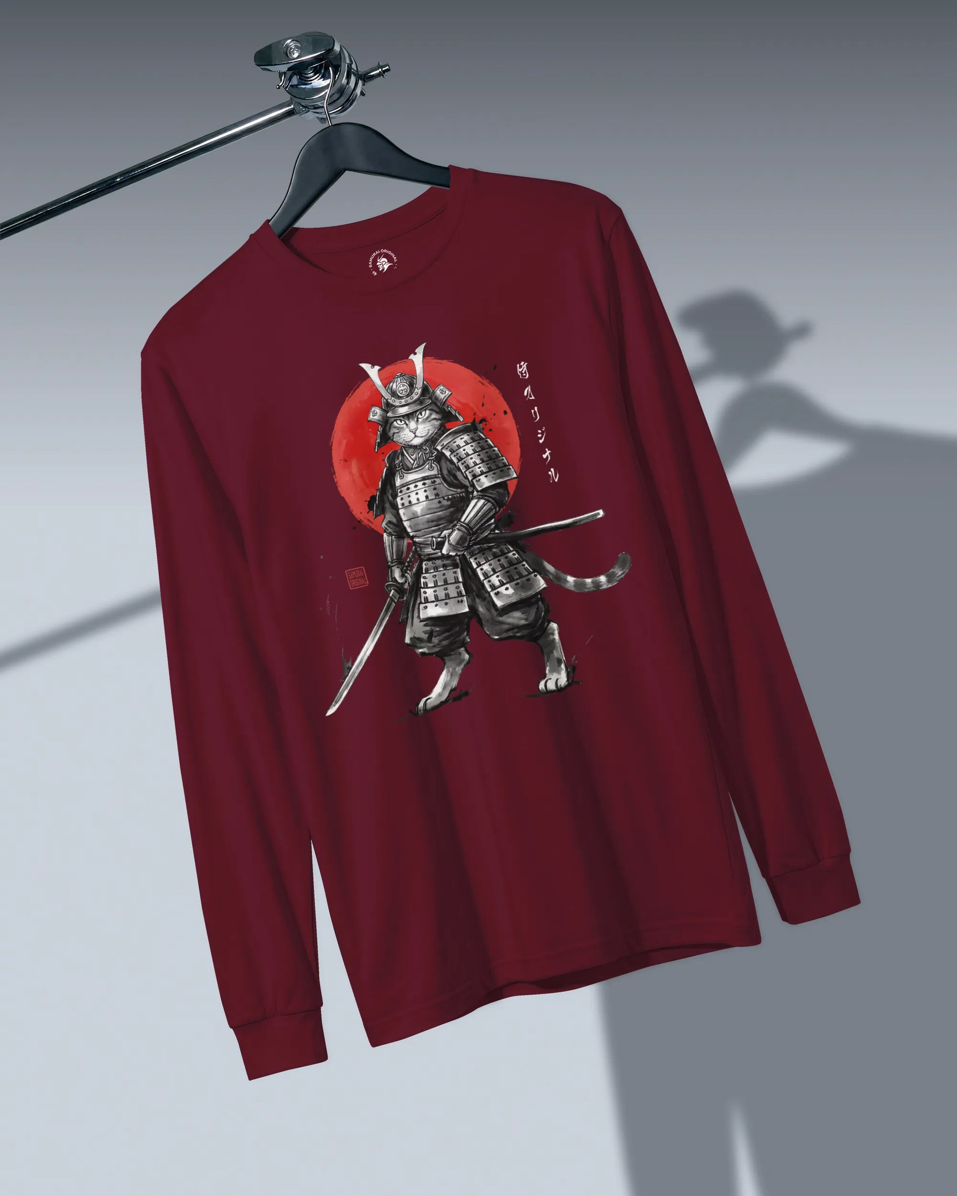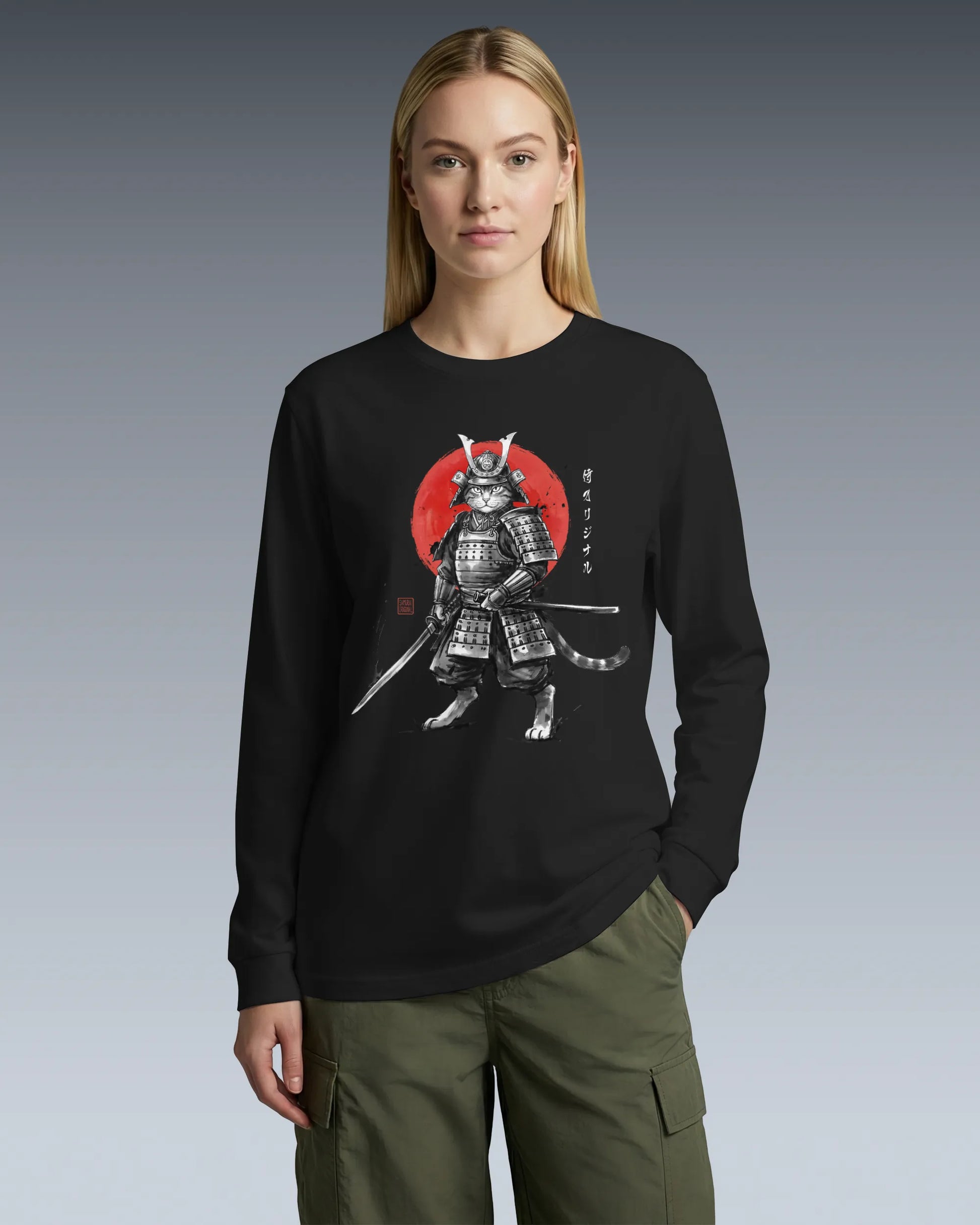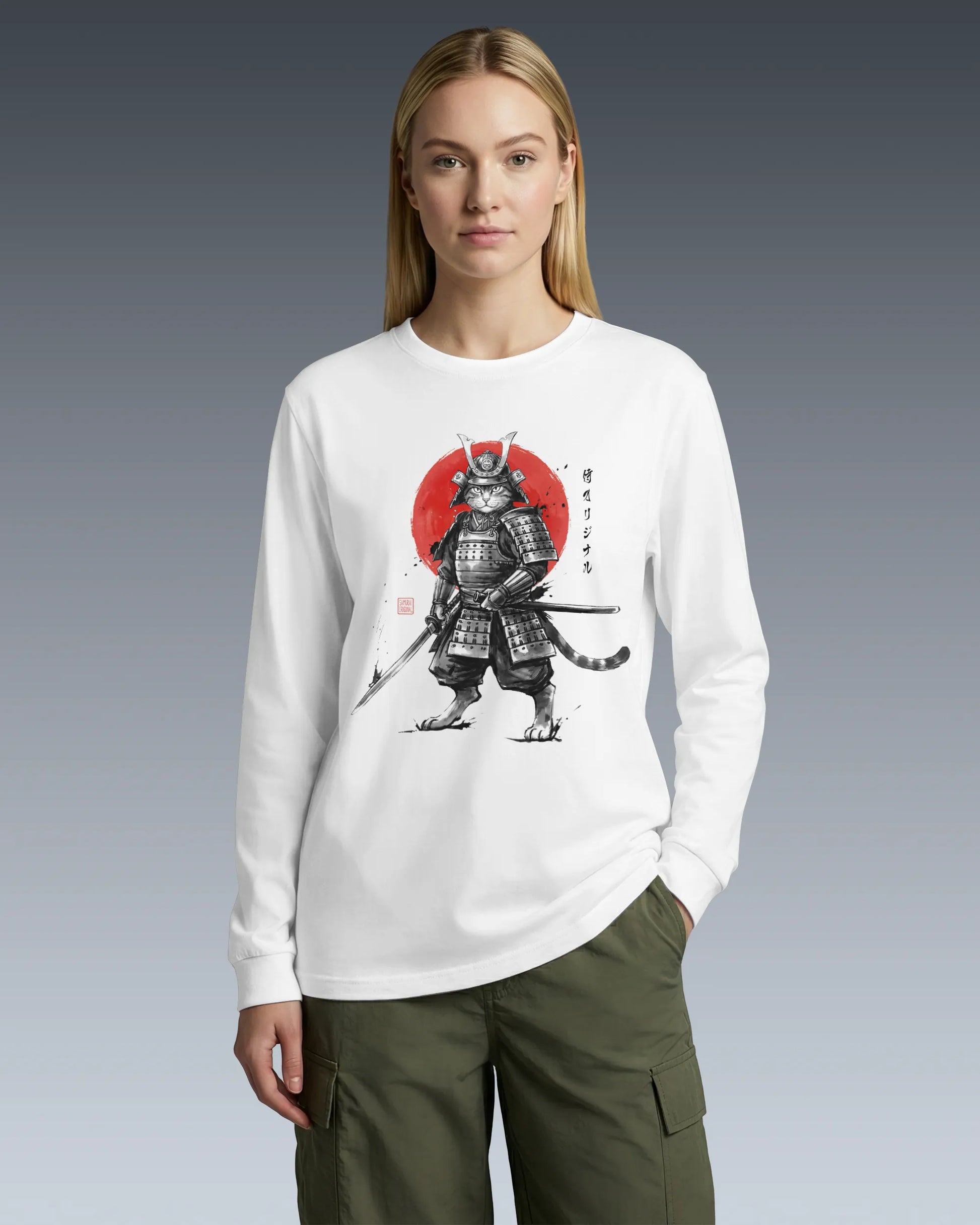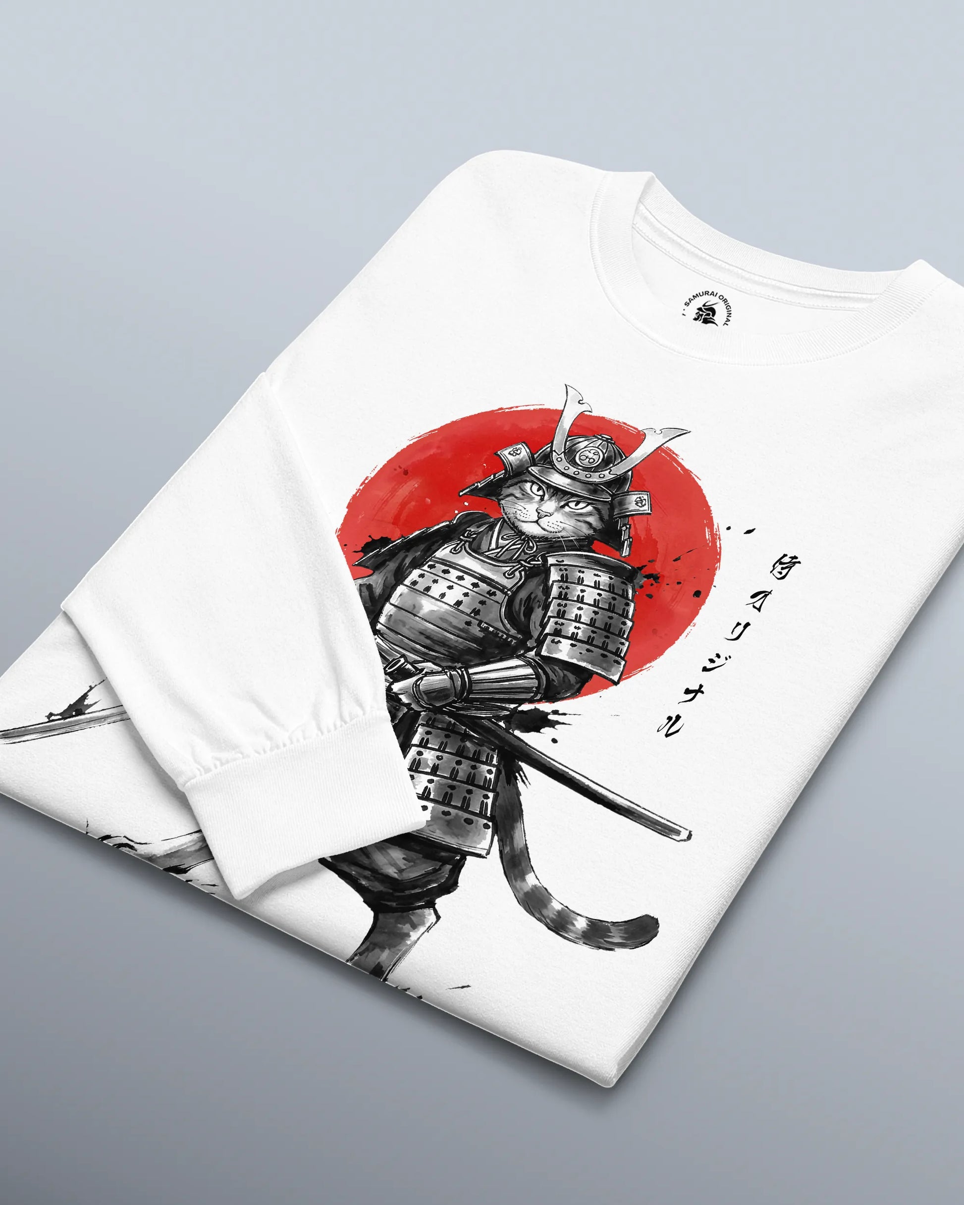 Cat Samurai Sumi-e Japanese Unisex Long Sleeve Tee