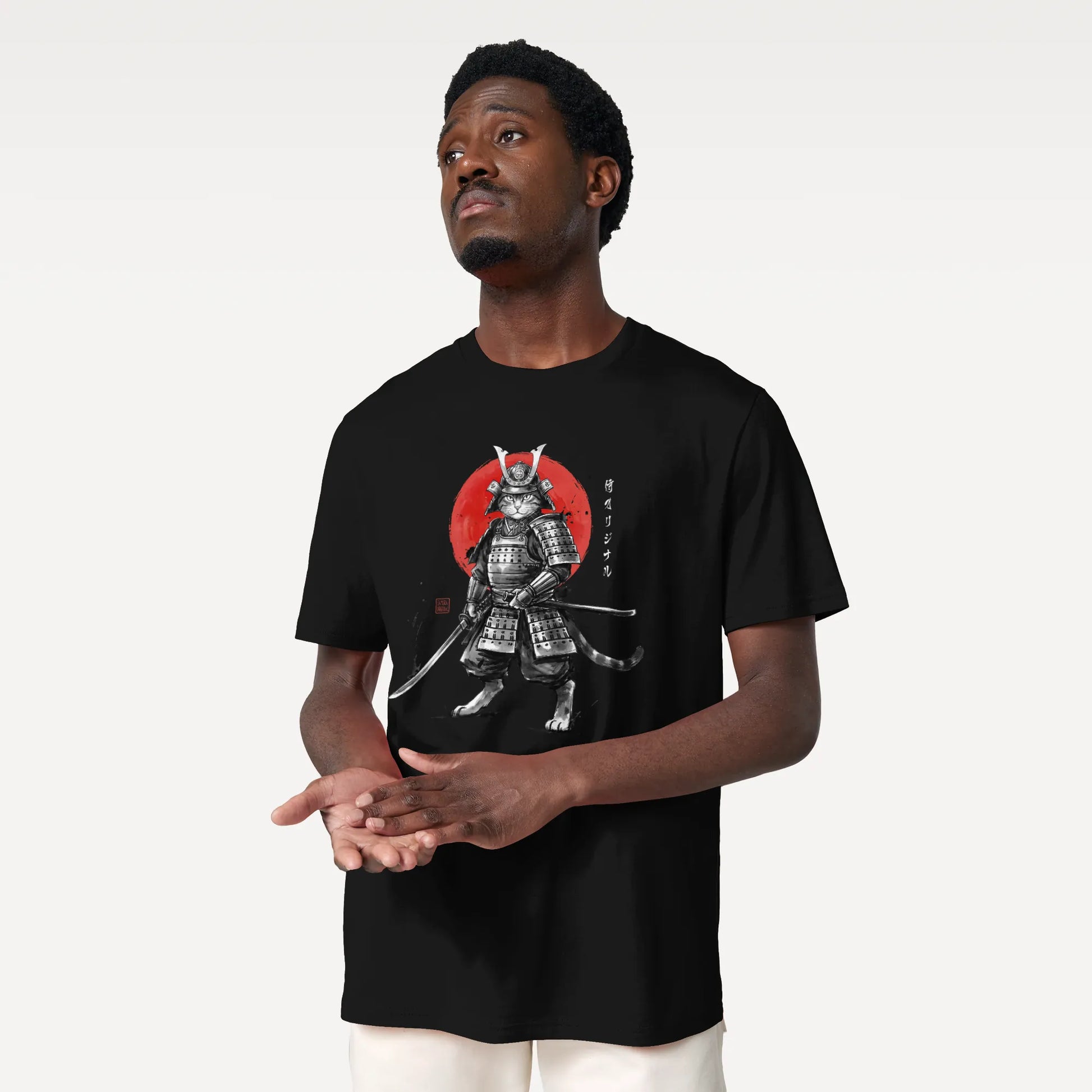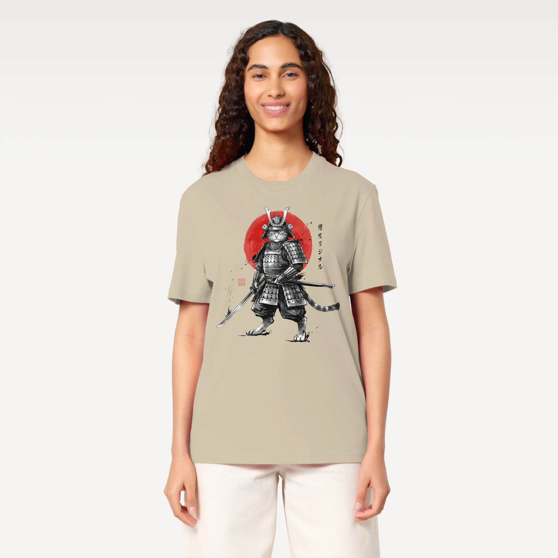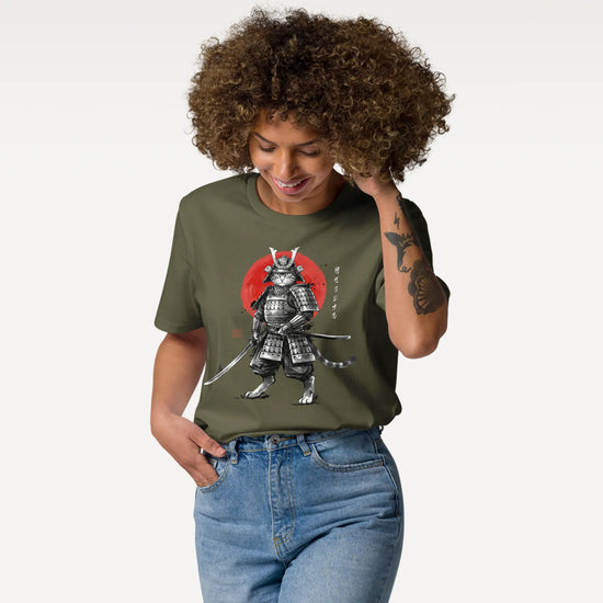 Cat Samurai Sumi-e Japanese Unisex organic t-shirt