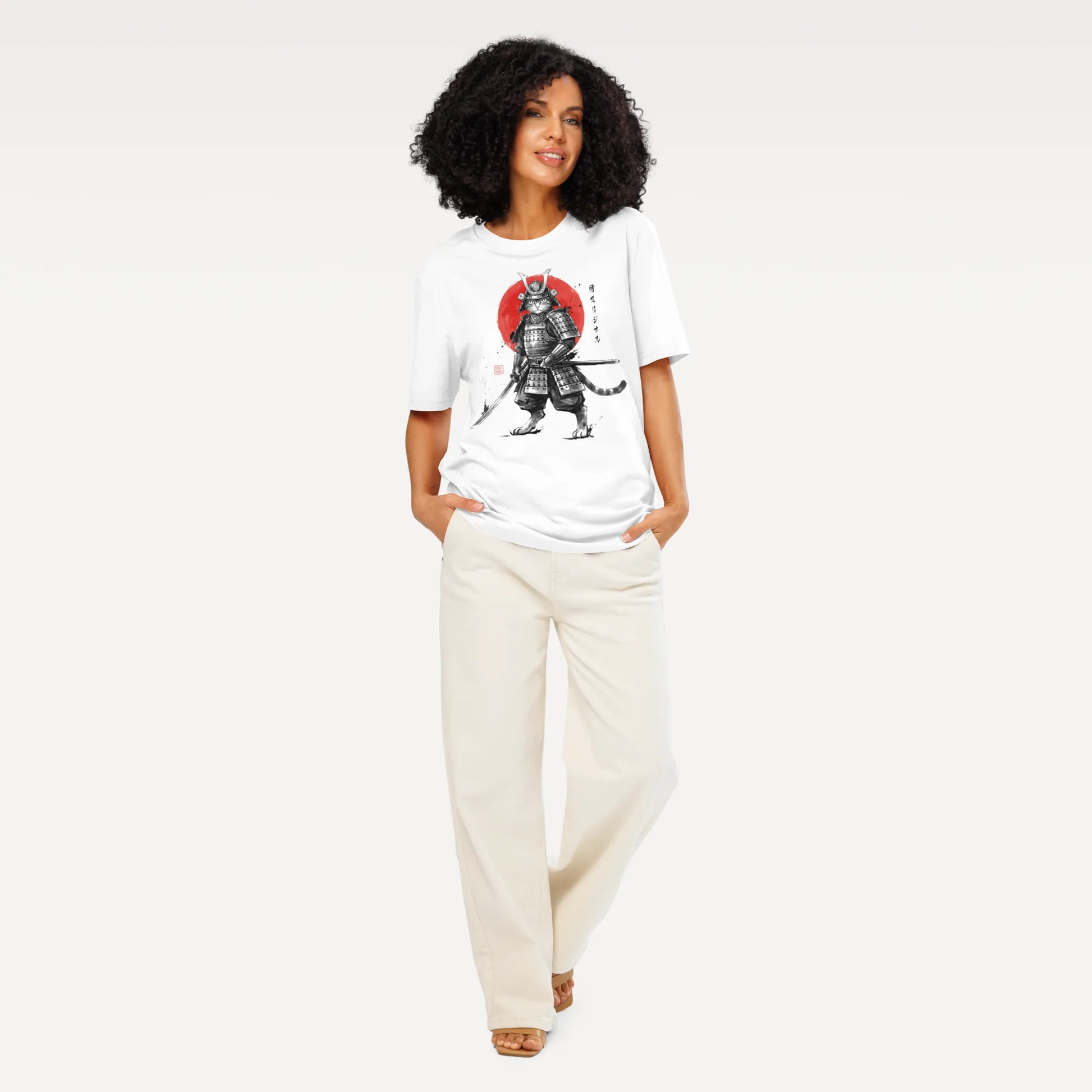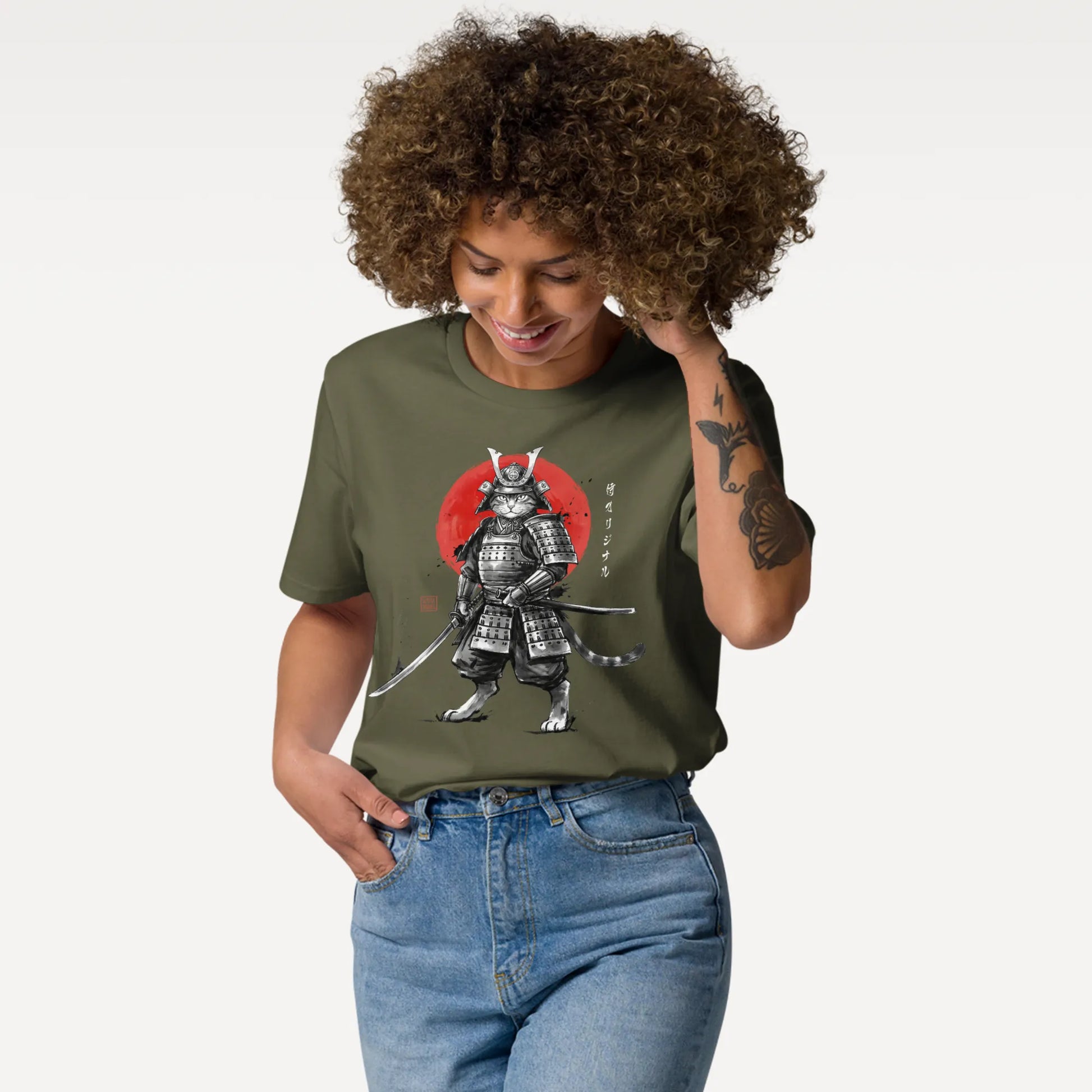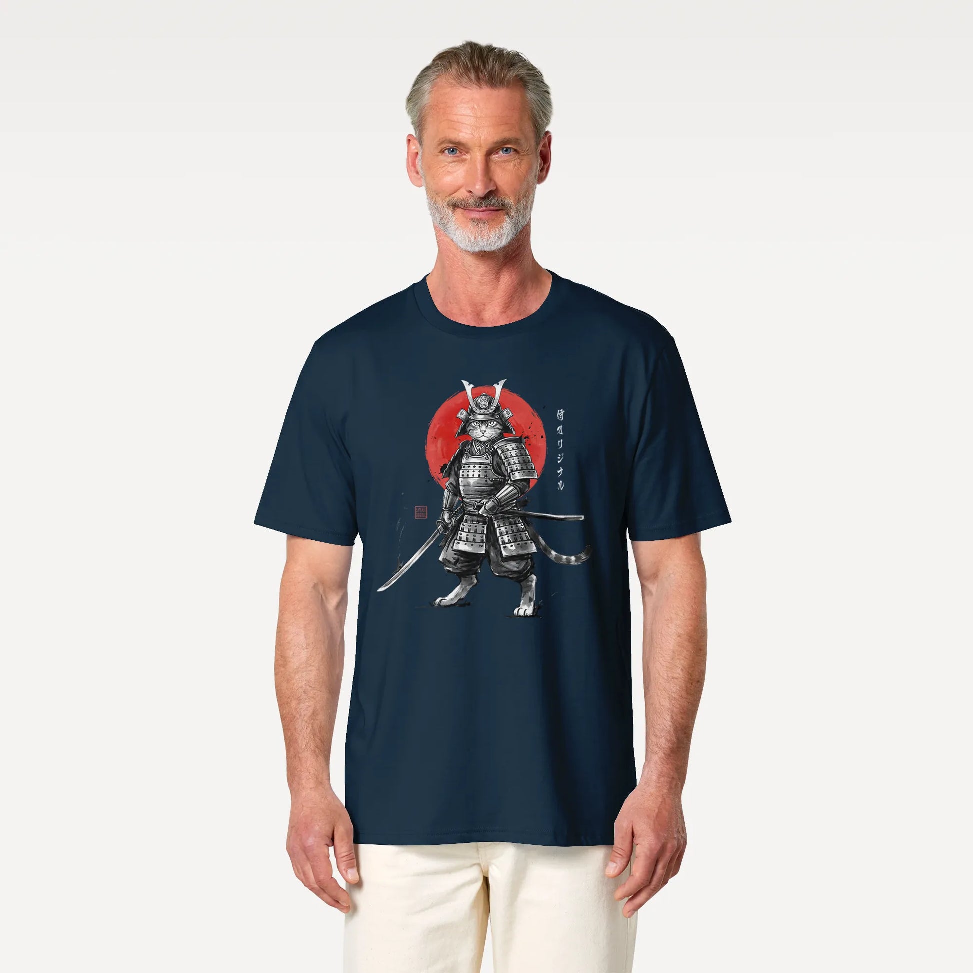 Cat Samurai Sumi-e Japanese Unisex organic t-shirt