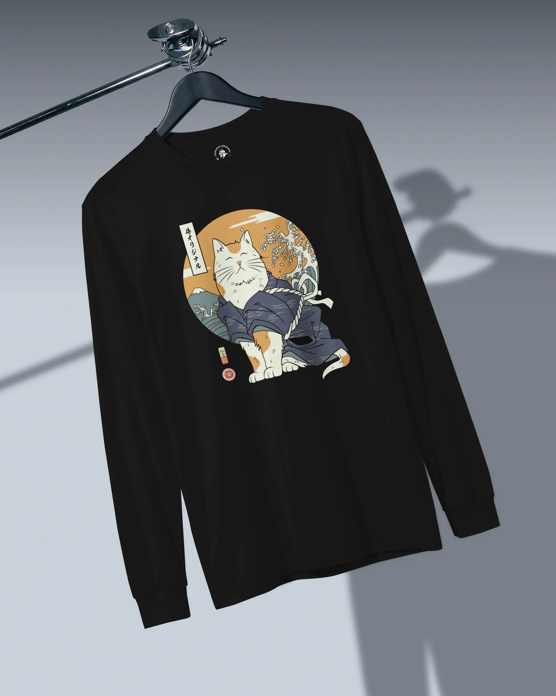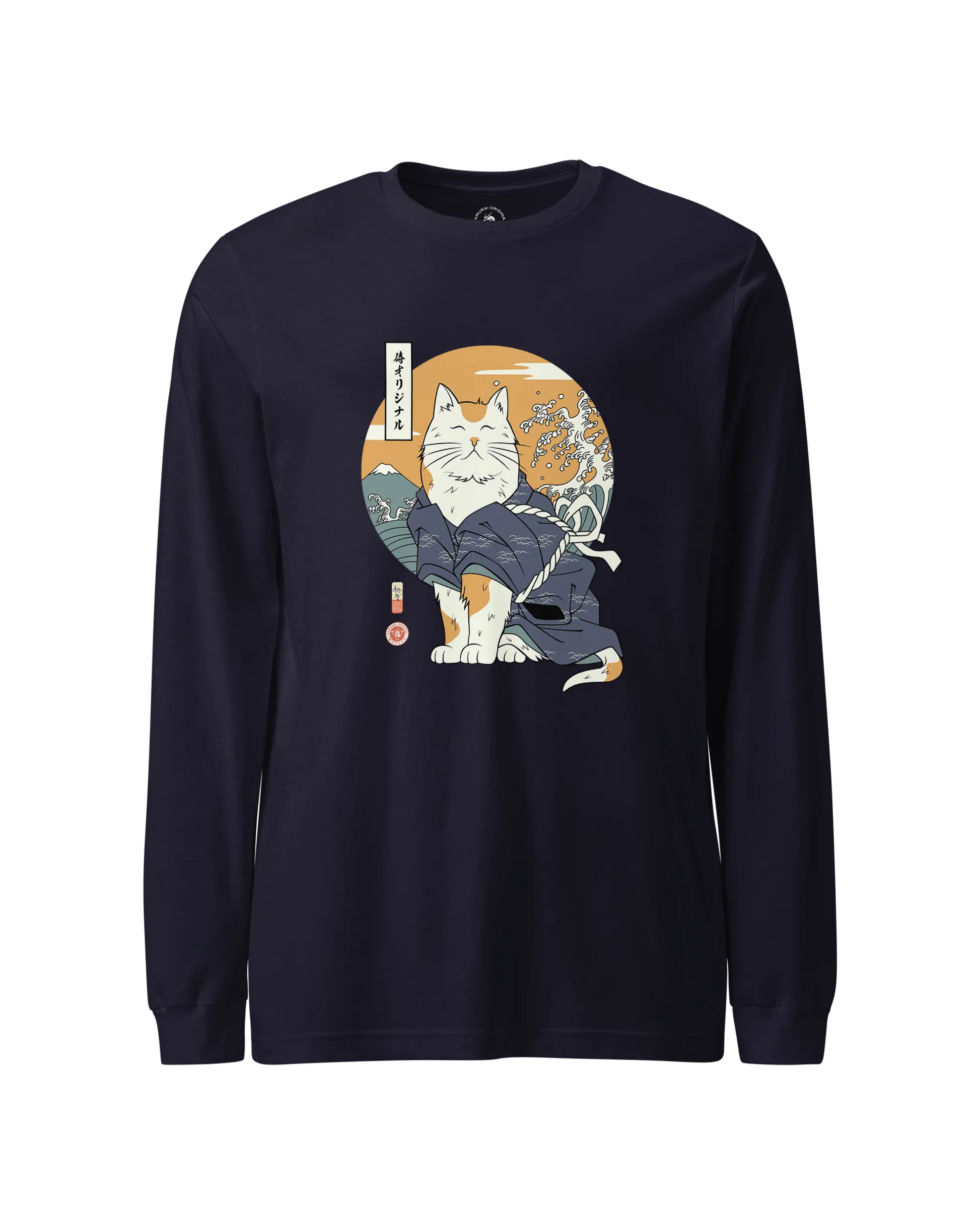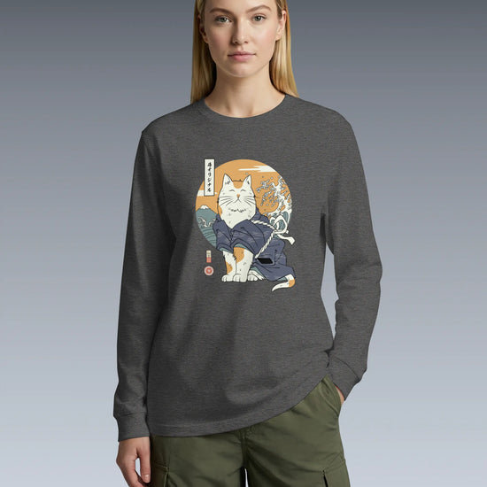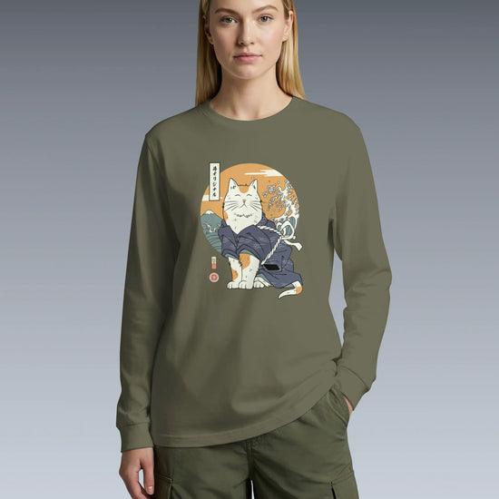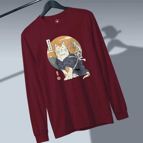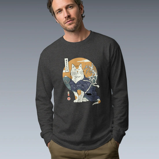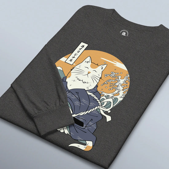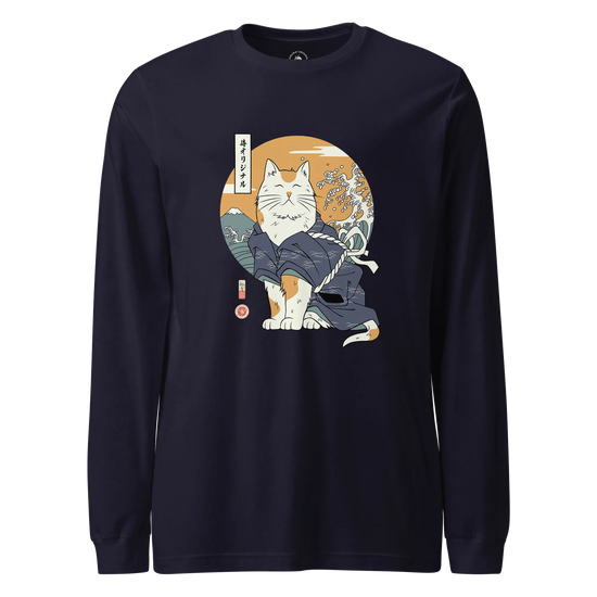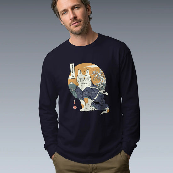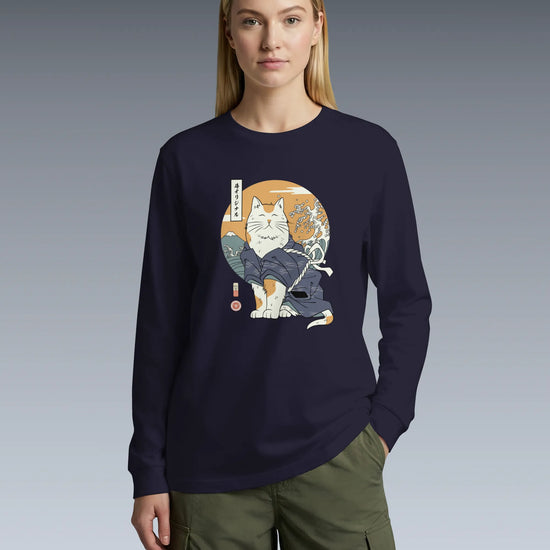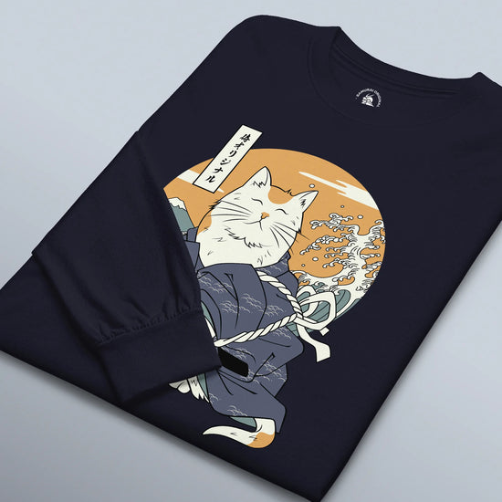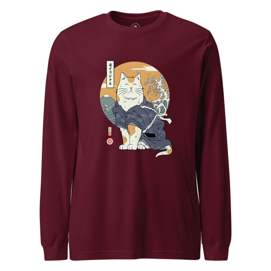 Cat Samurai Funny Ukiyo-e Japanese Unisex Long Sleeve Tee