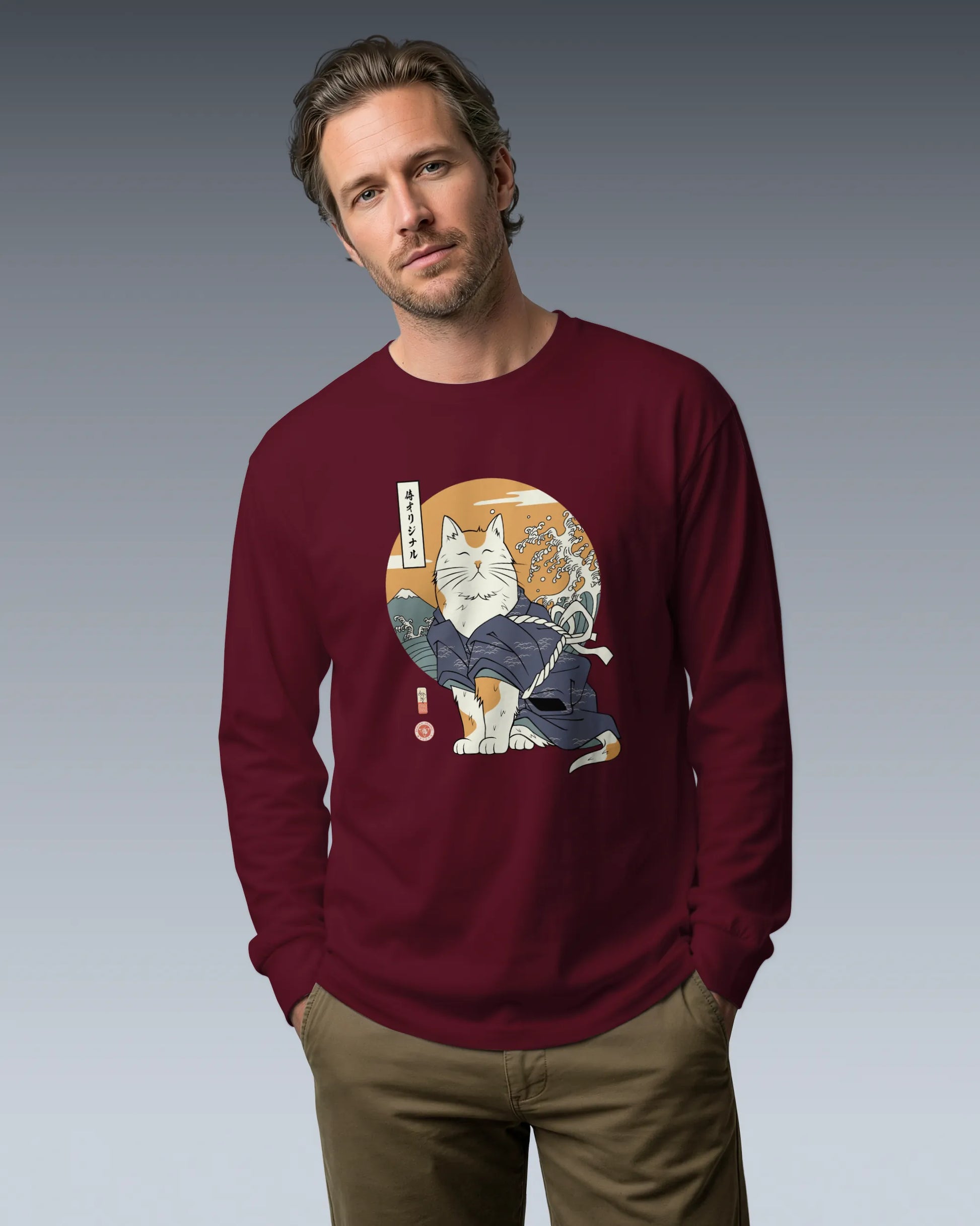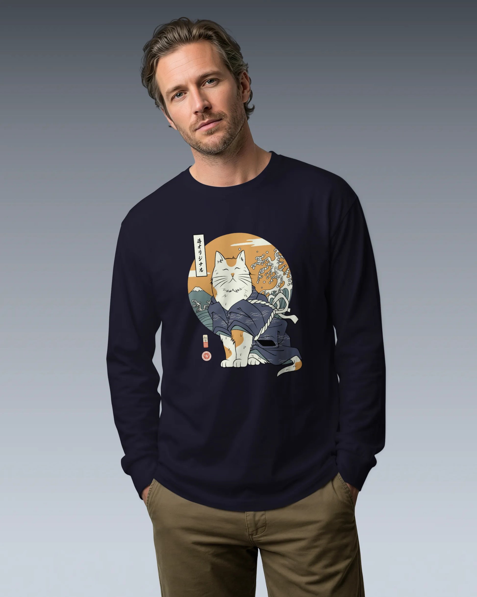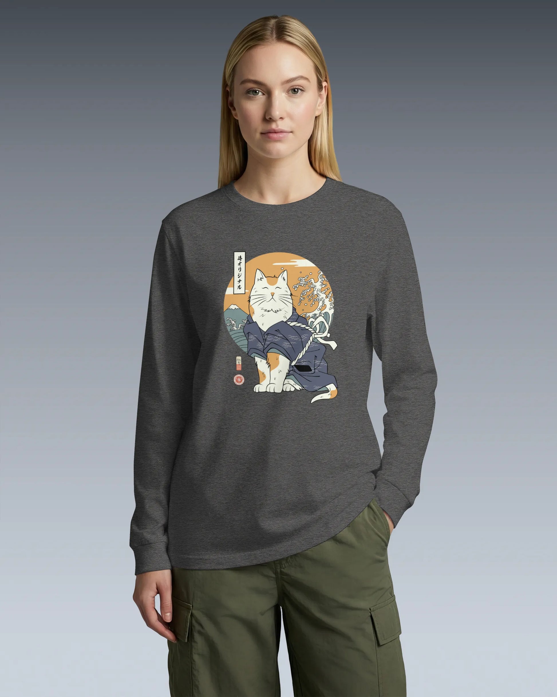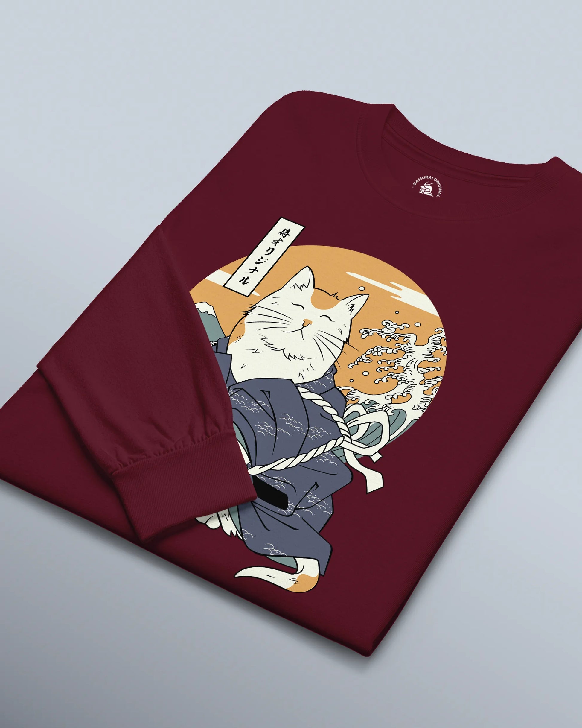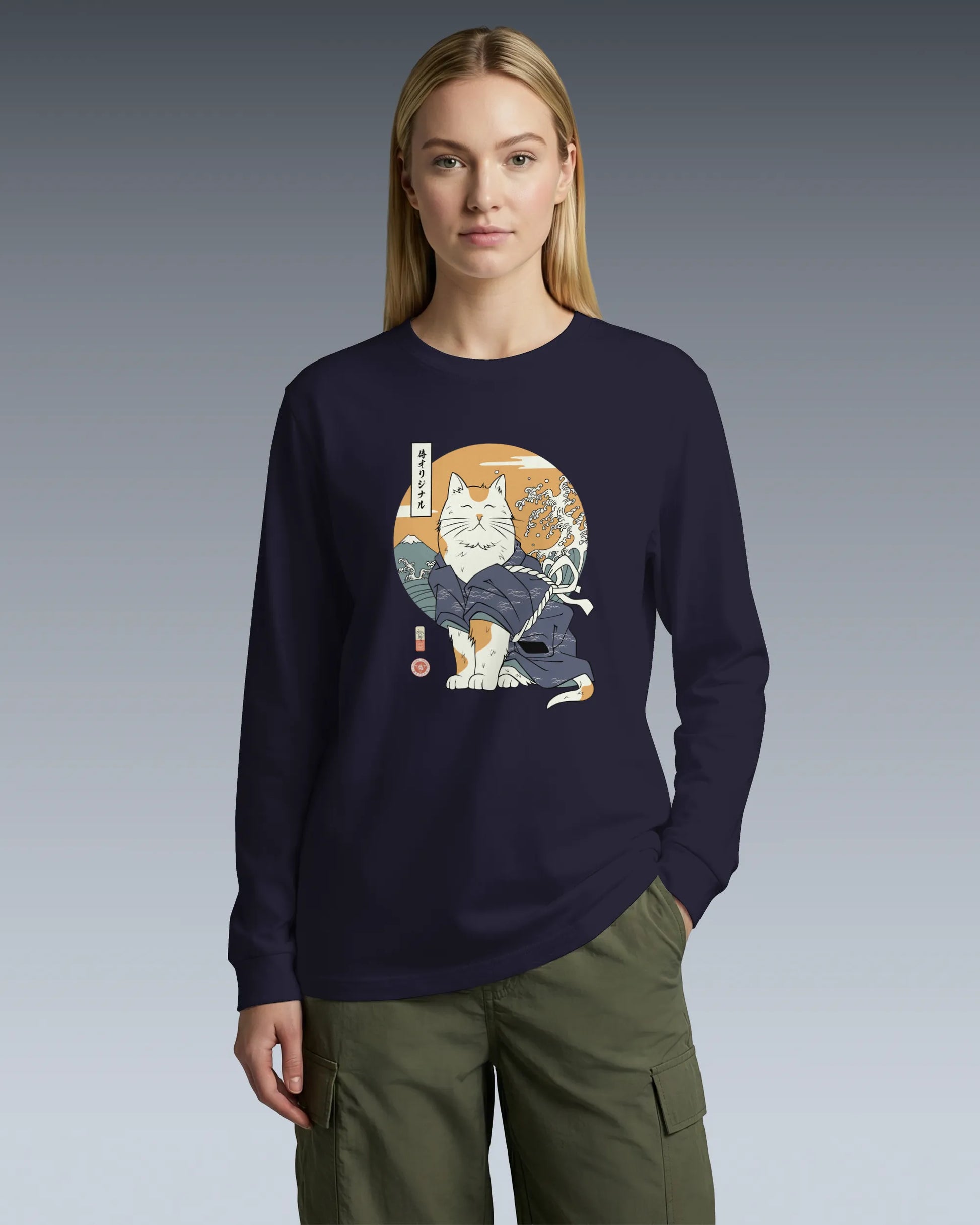 Cat Samurai Funny Ukiyo-e Japanese Unisex Long Sleeve Tee
