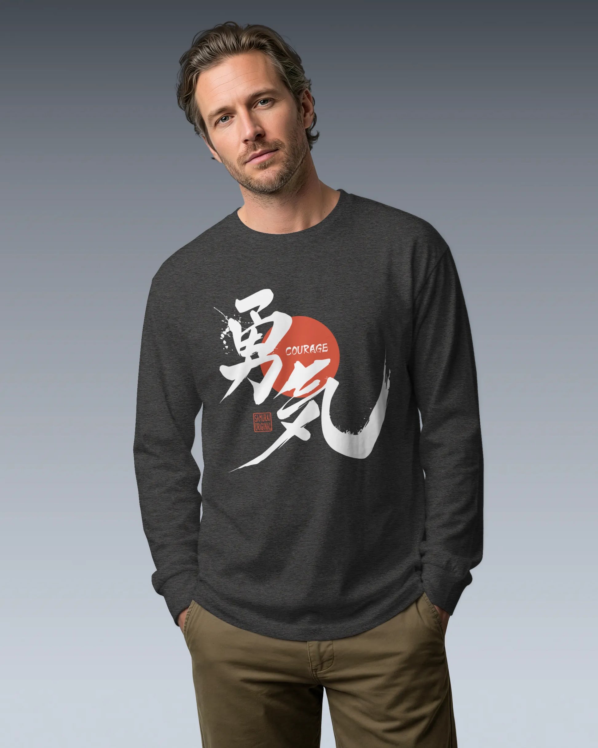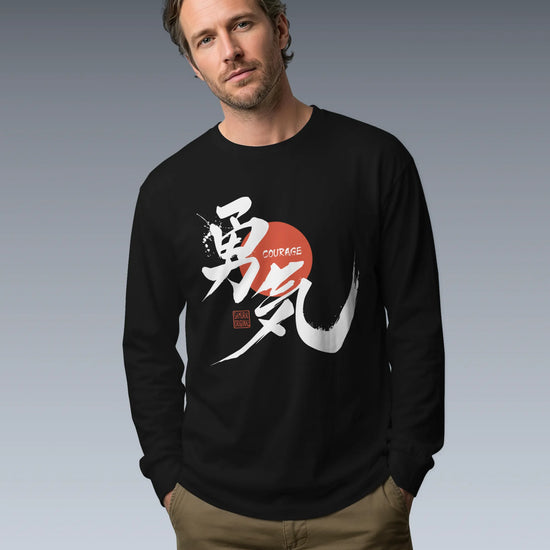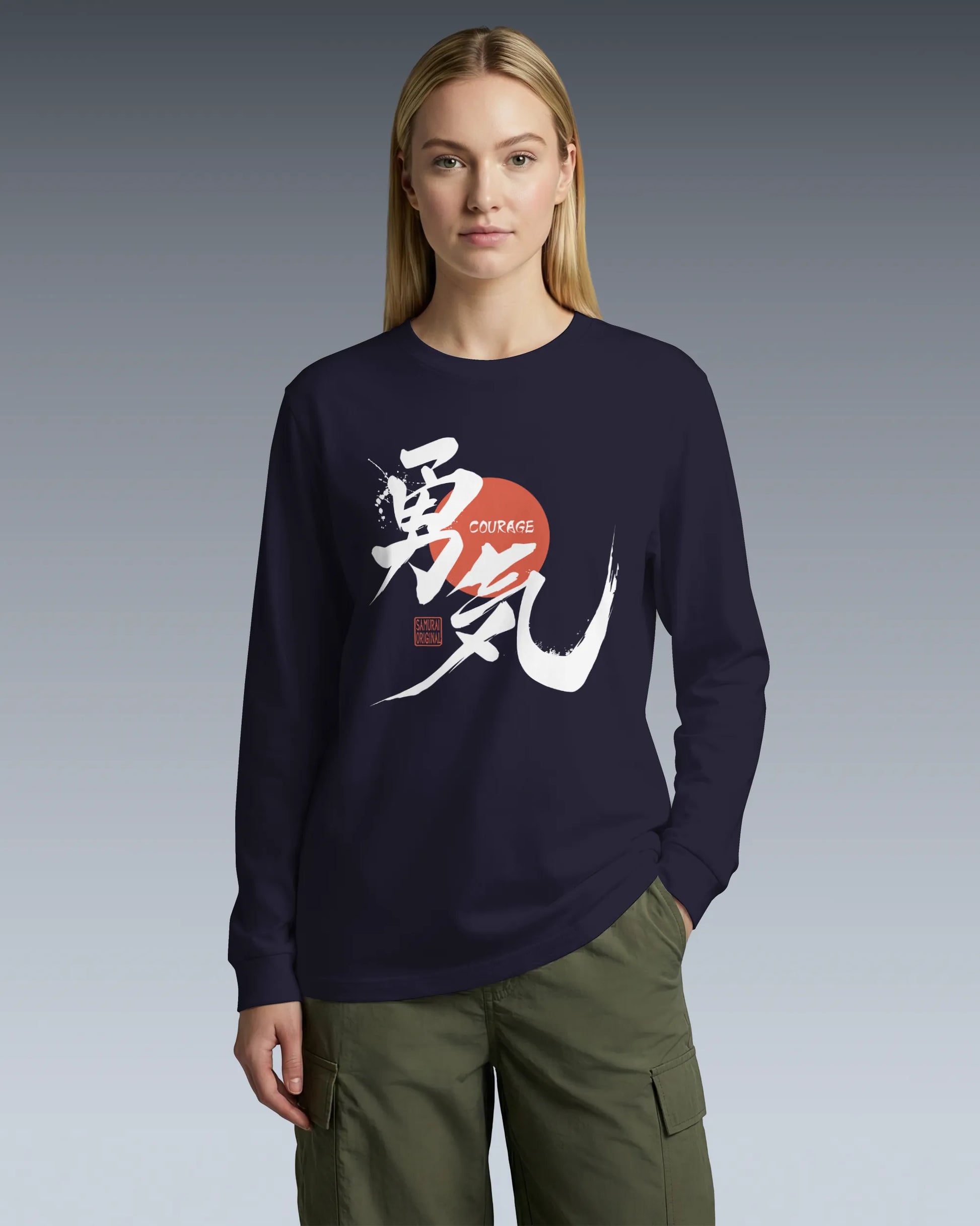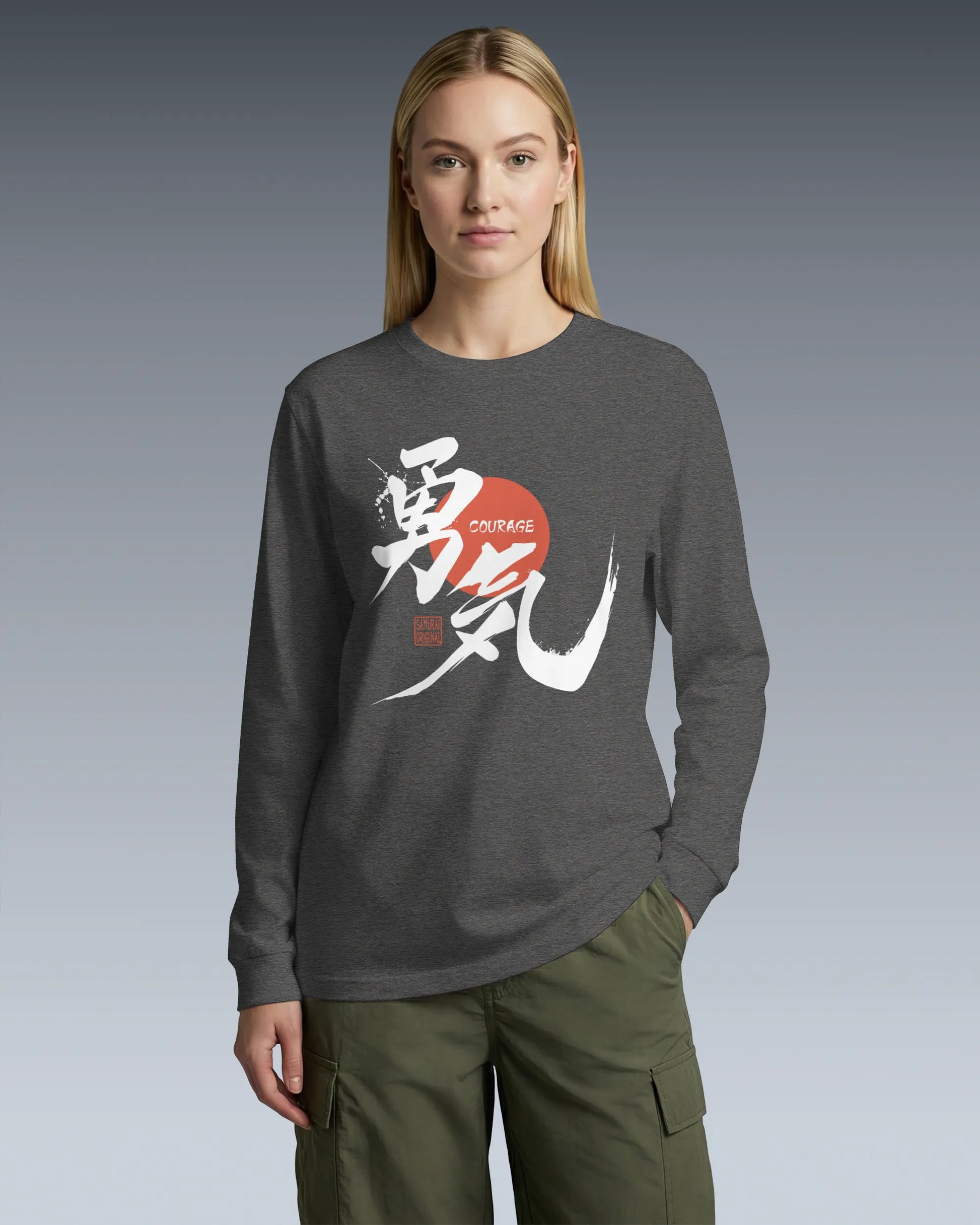 Courage Kanji Calligraphy Unisex Long Sleeve Tee