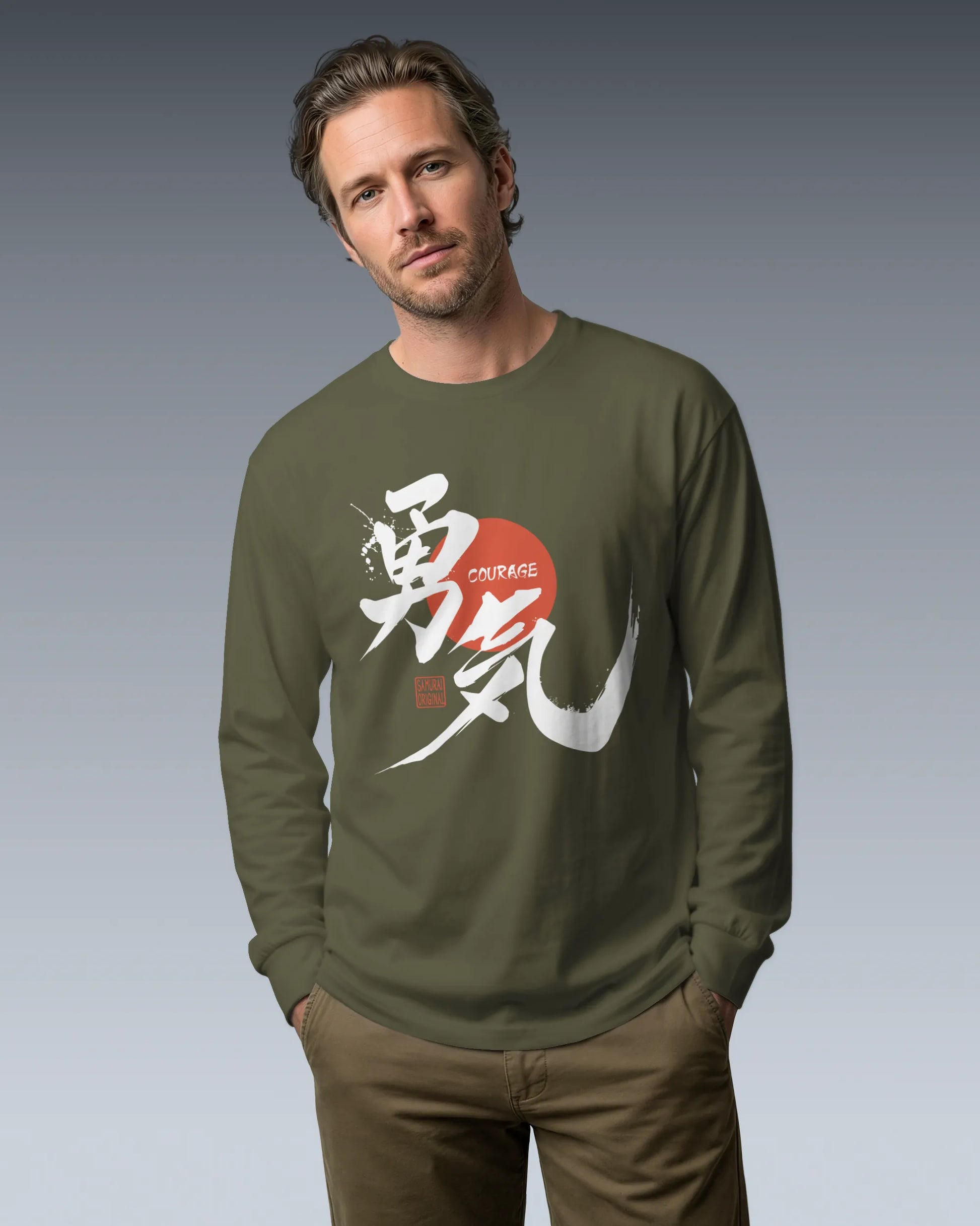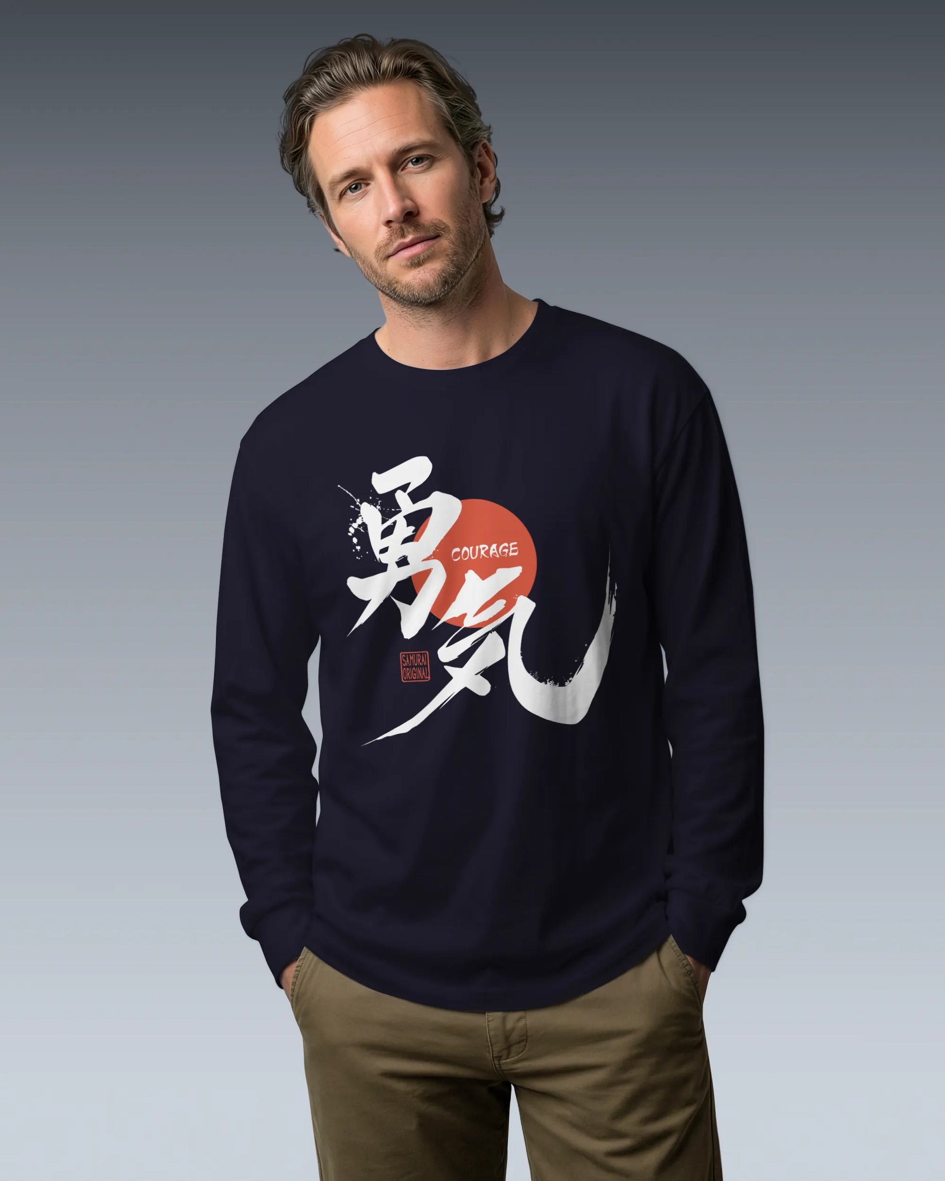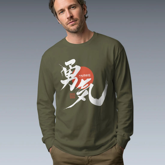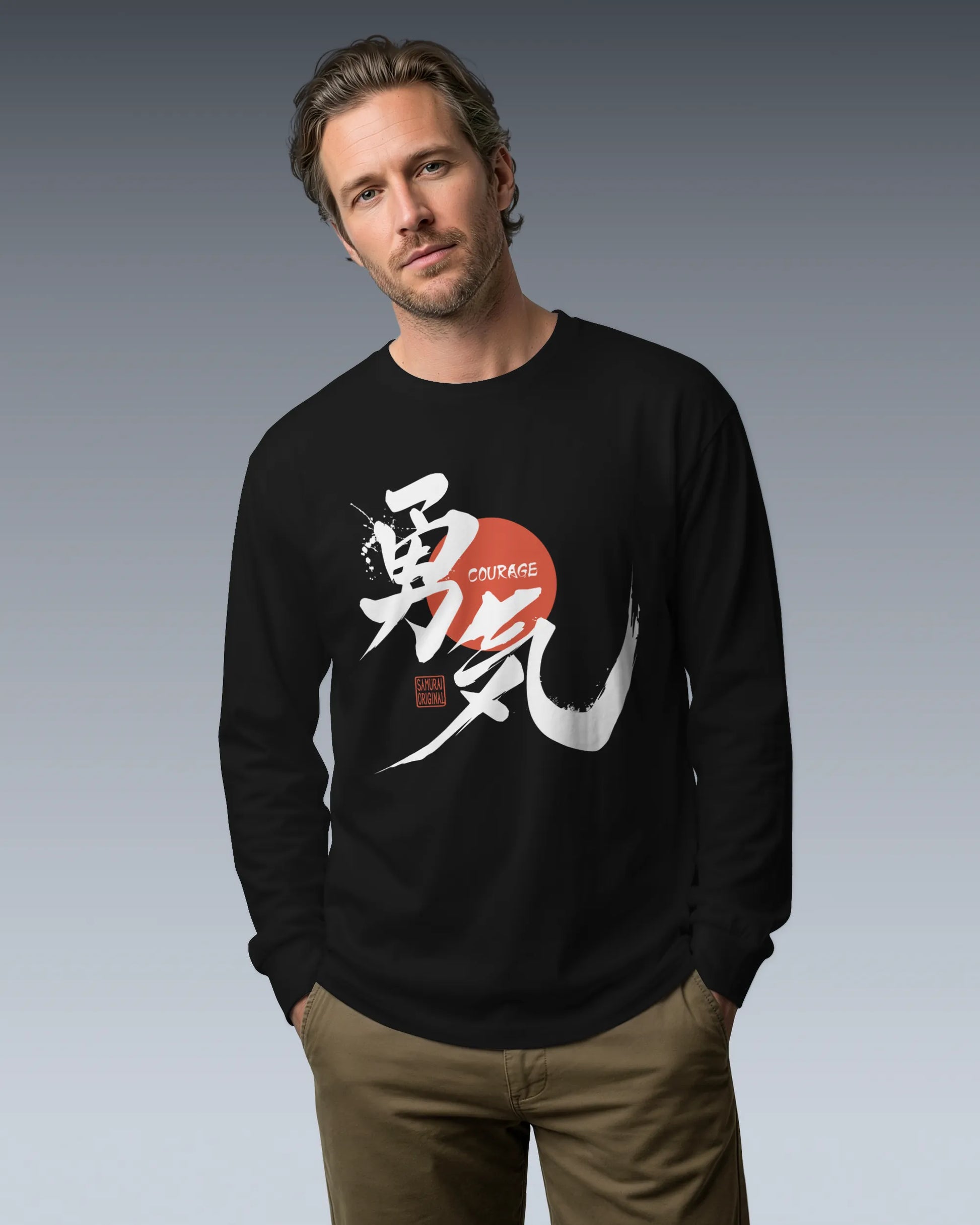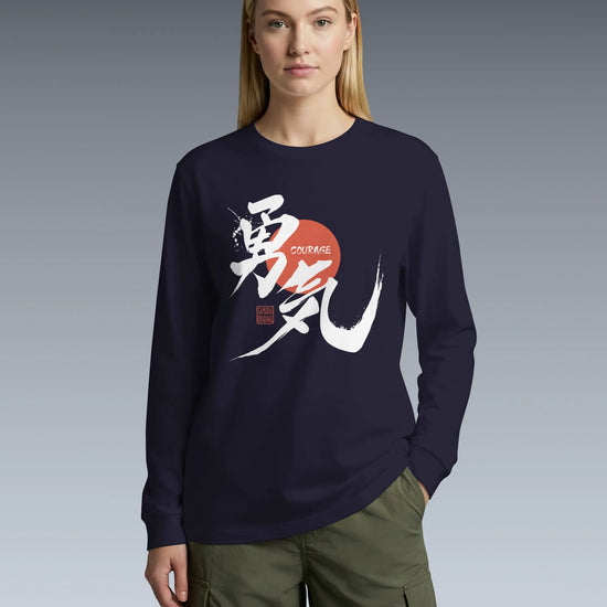 Courage Kanji Calligraphy Unisex Long Sleeve Tee