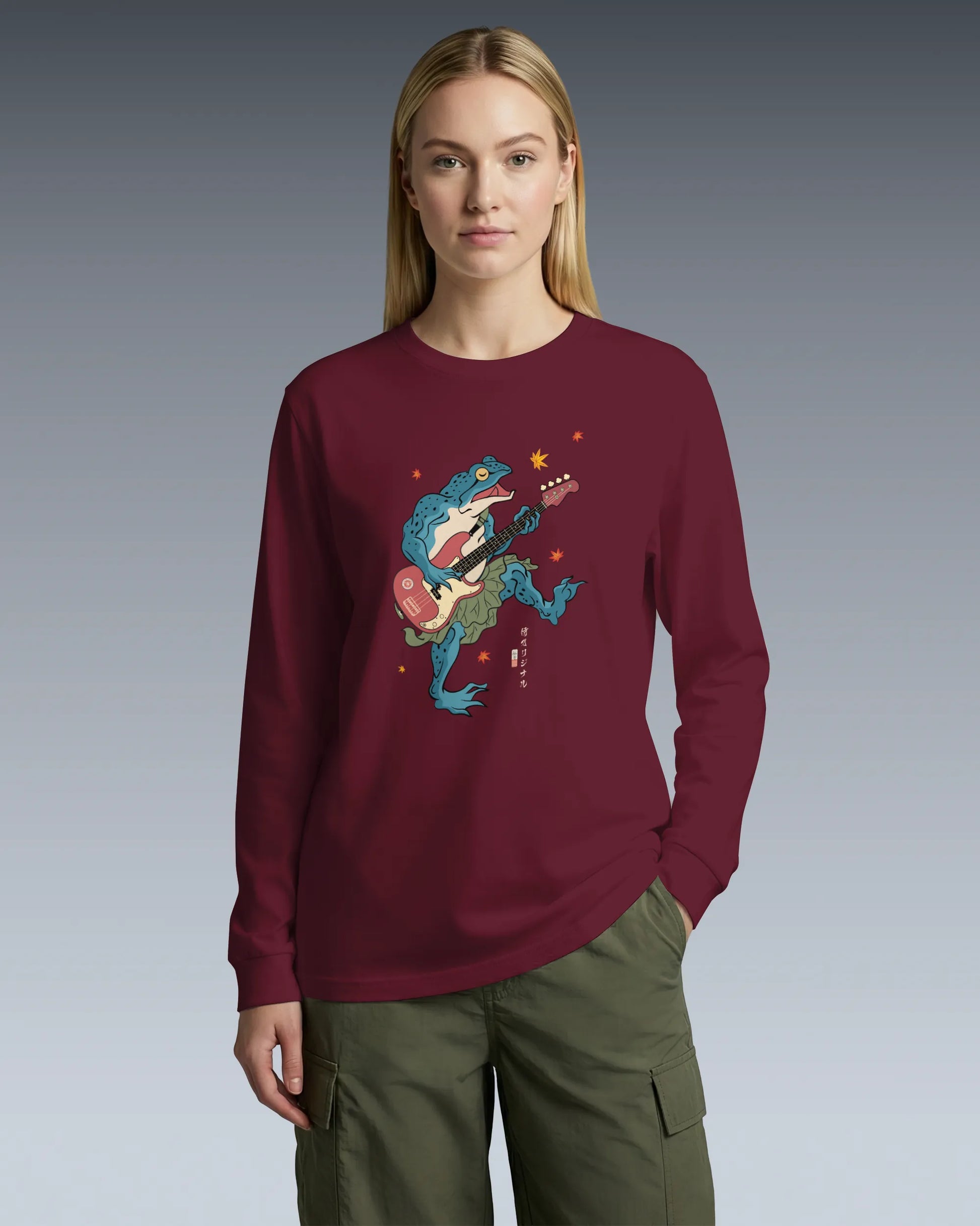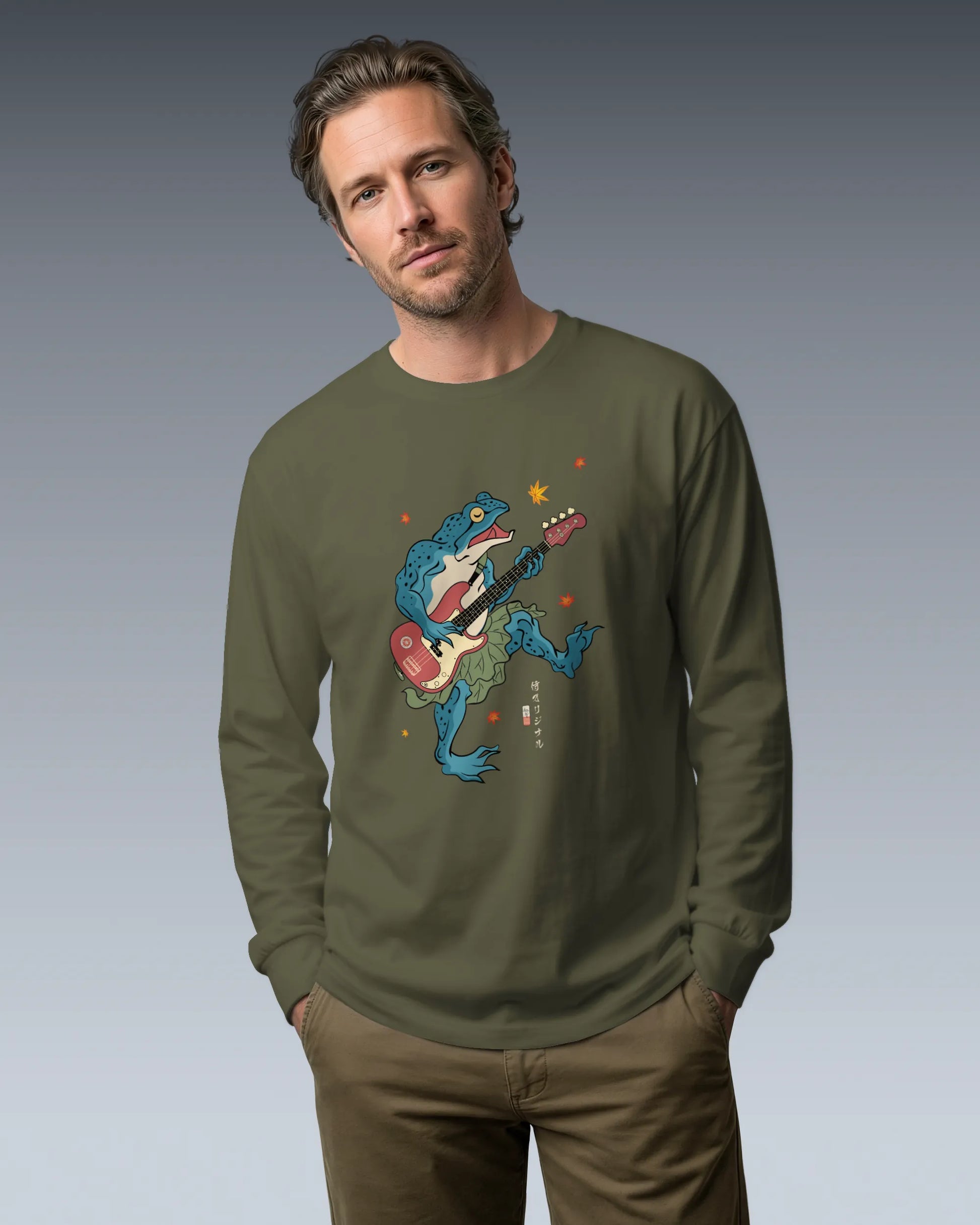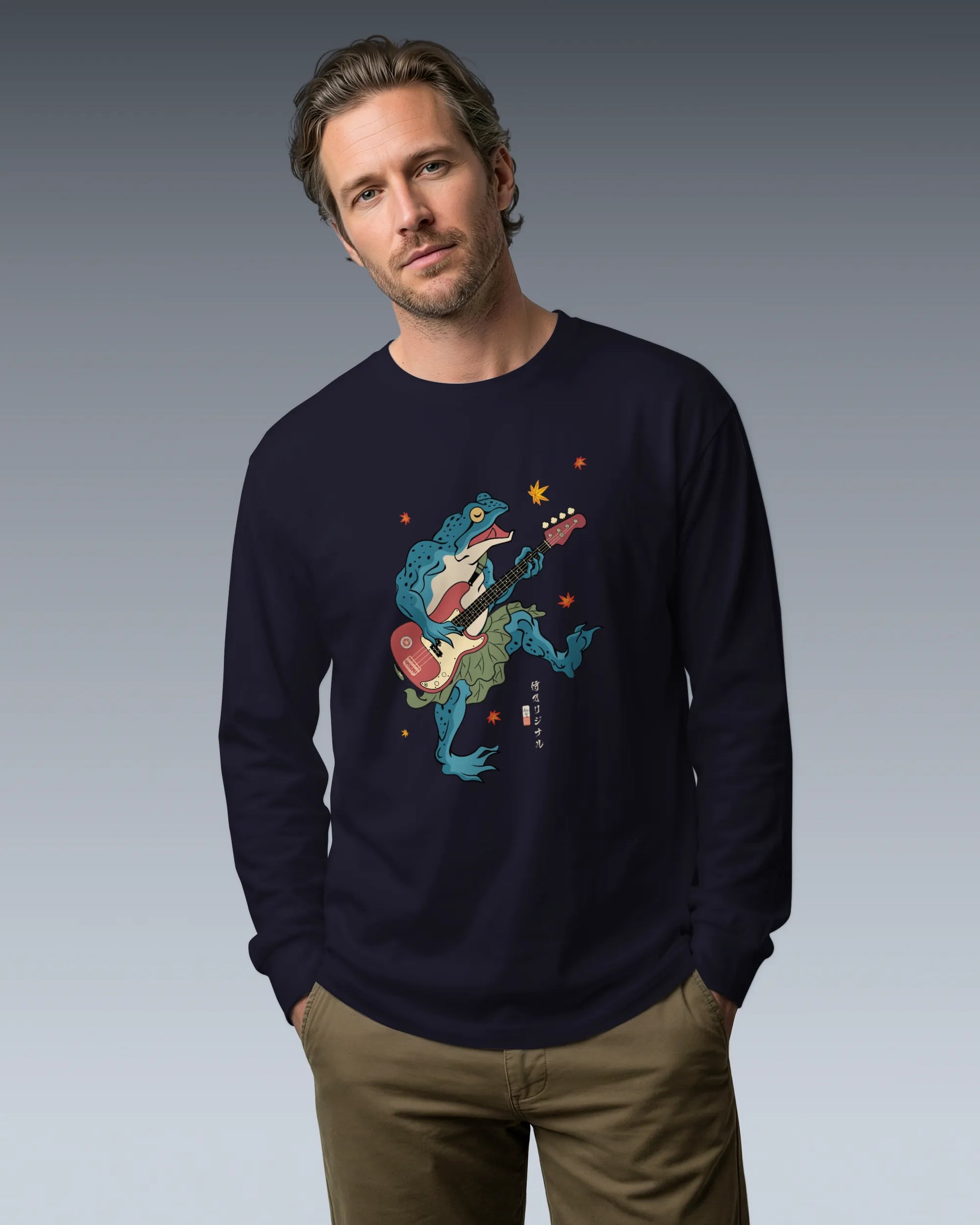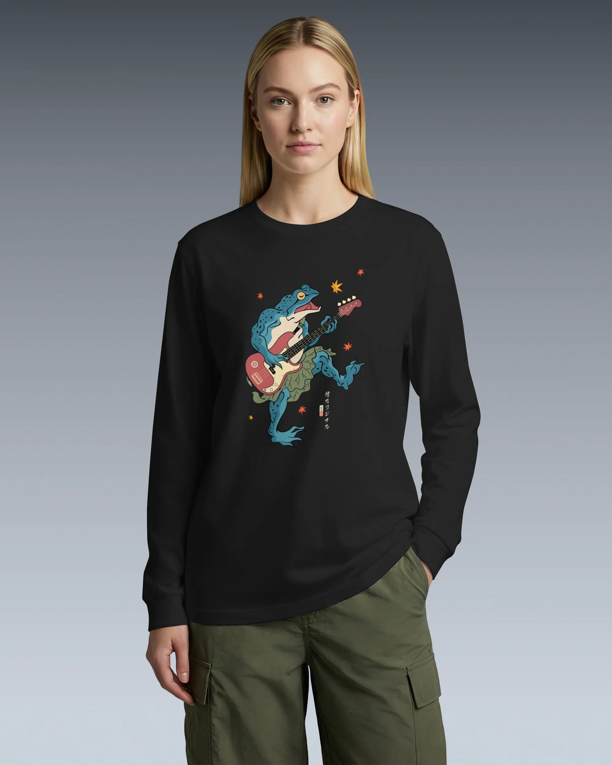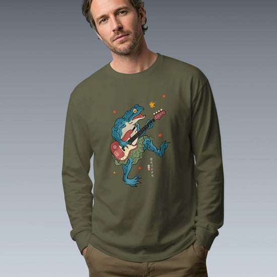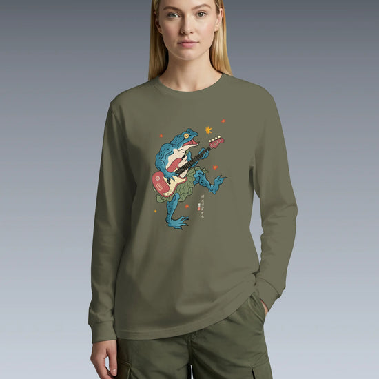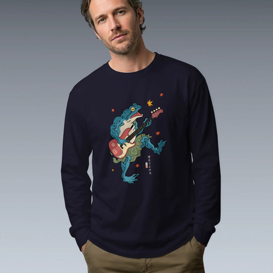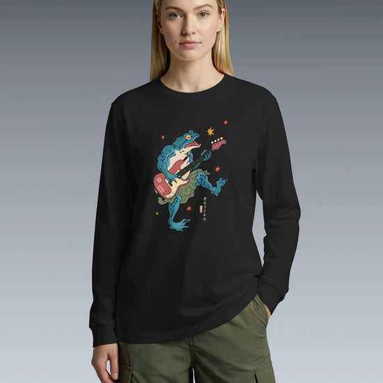 Frog Guitar Bass Funny Japanese Ukiyo-e Unisex Long Sleeve Tee