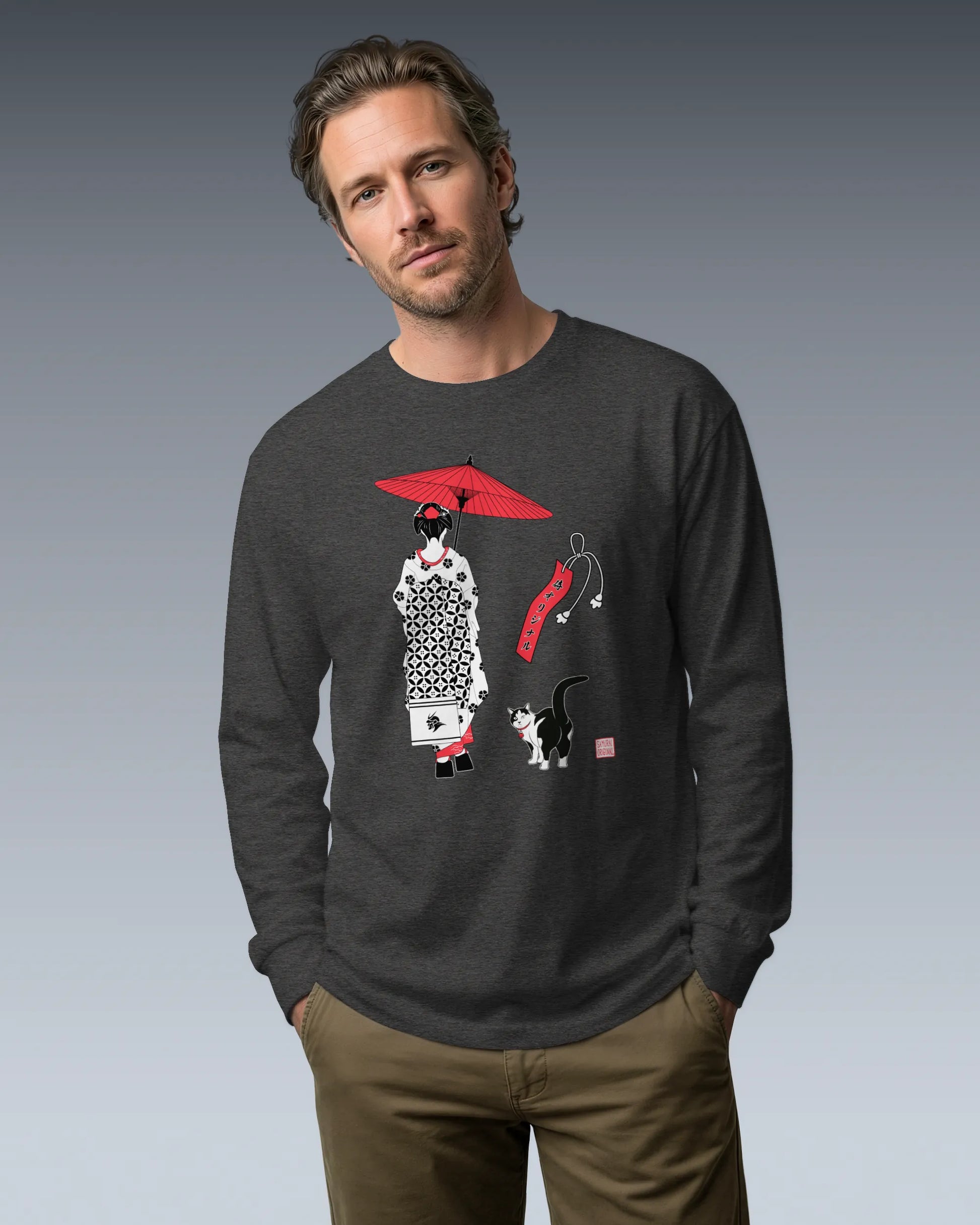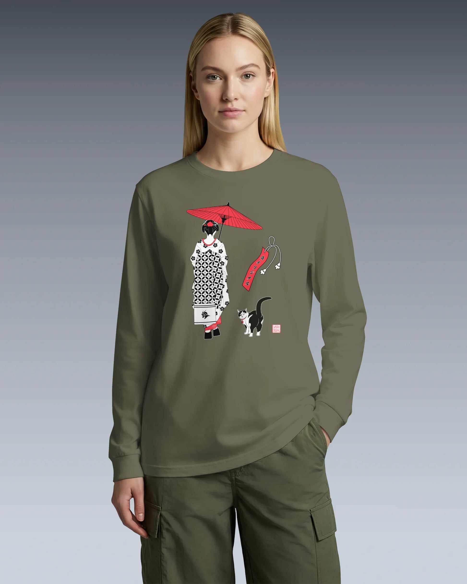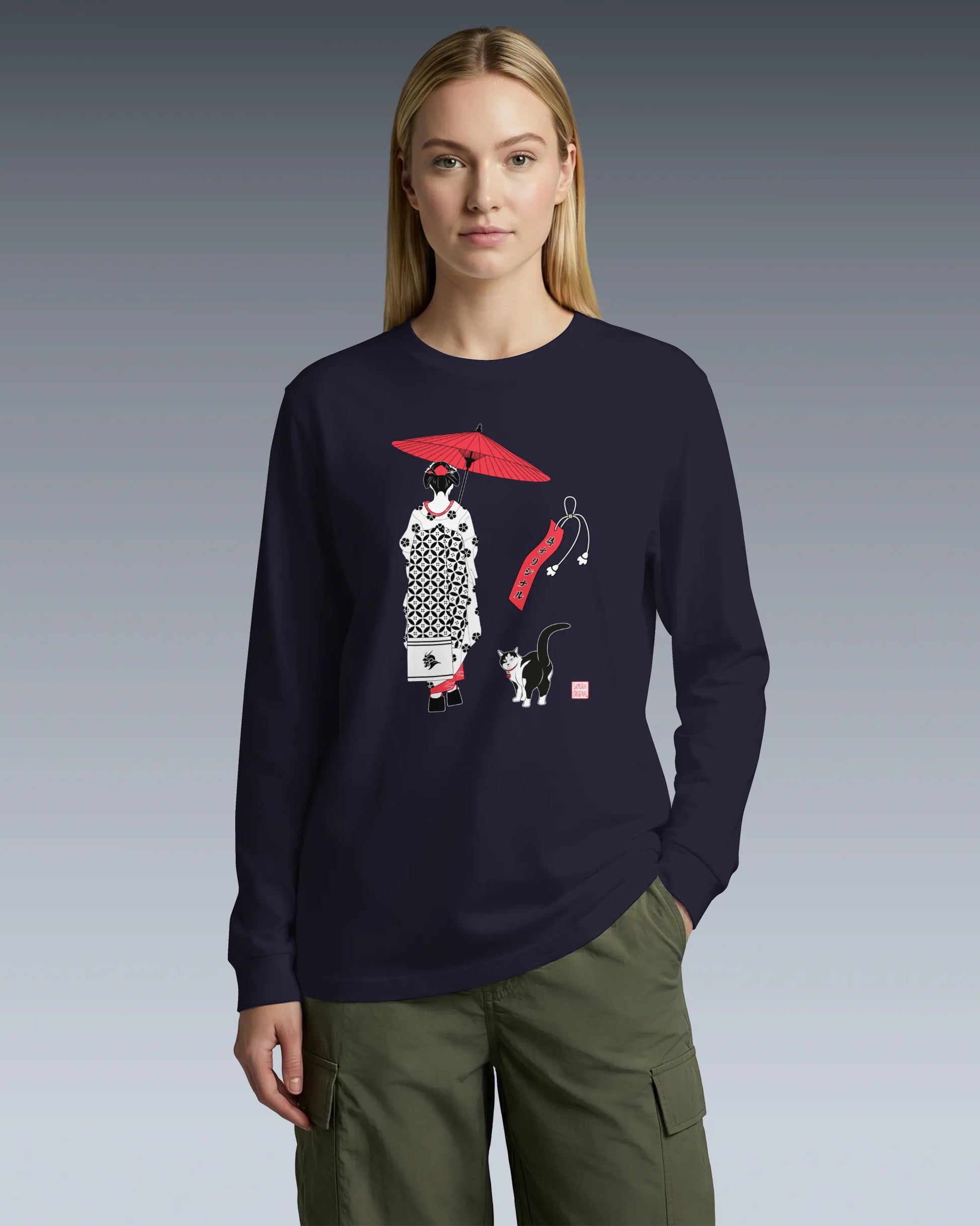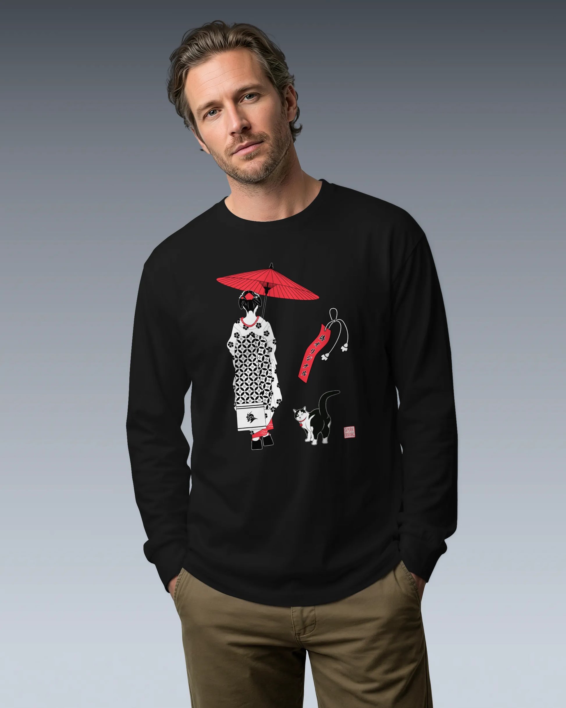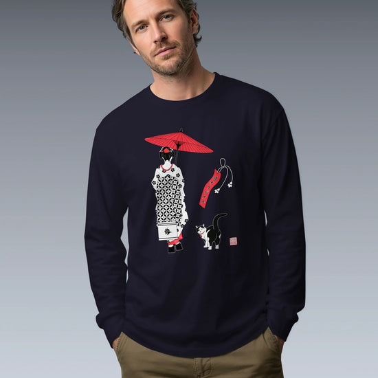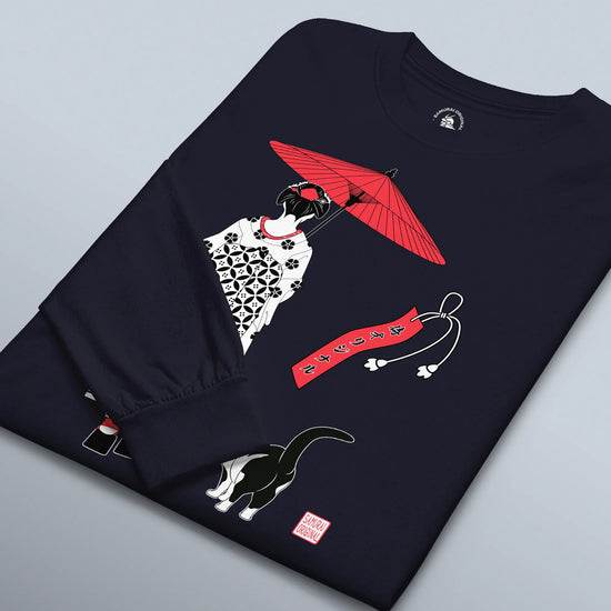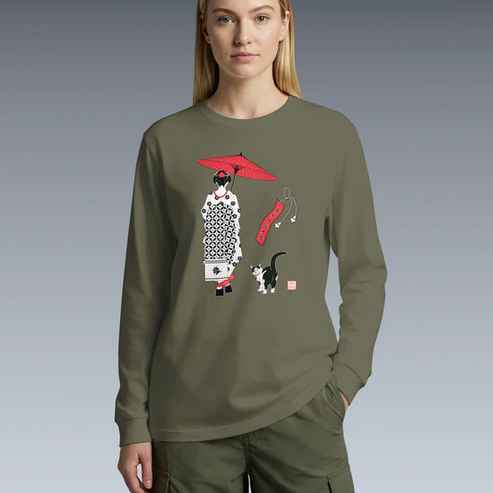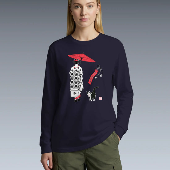 Geisha & Cat Unisex Long Sleeve Tee No.3
